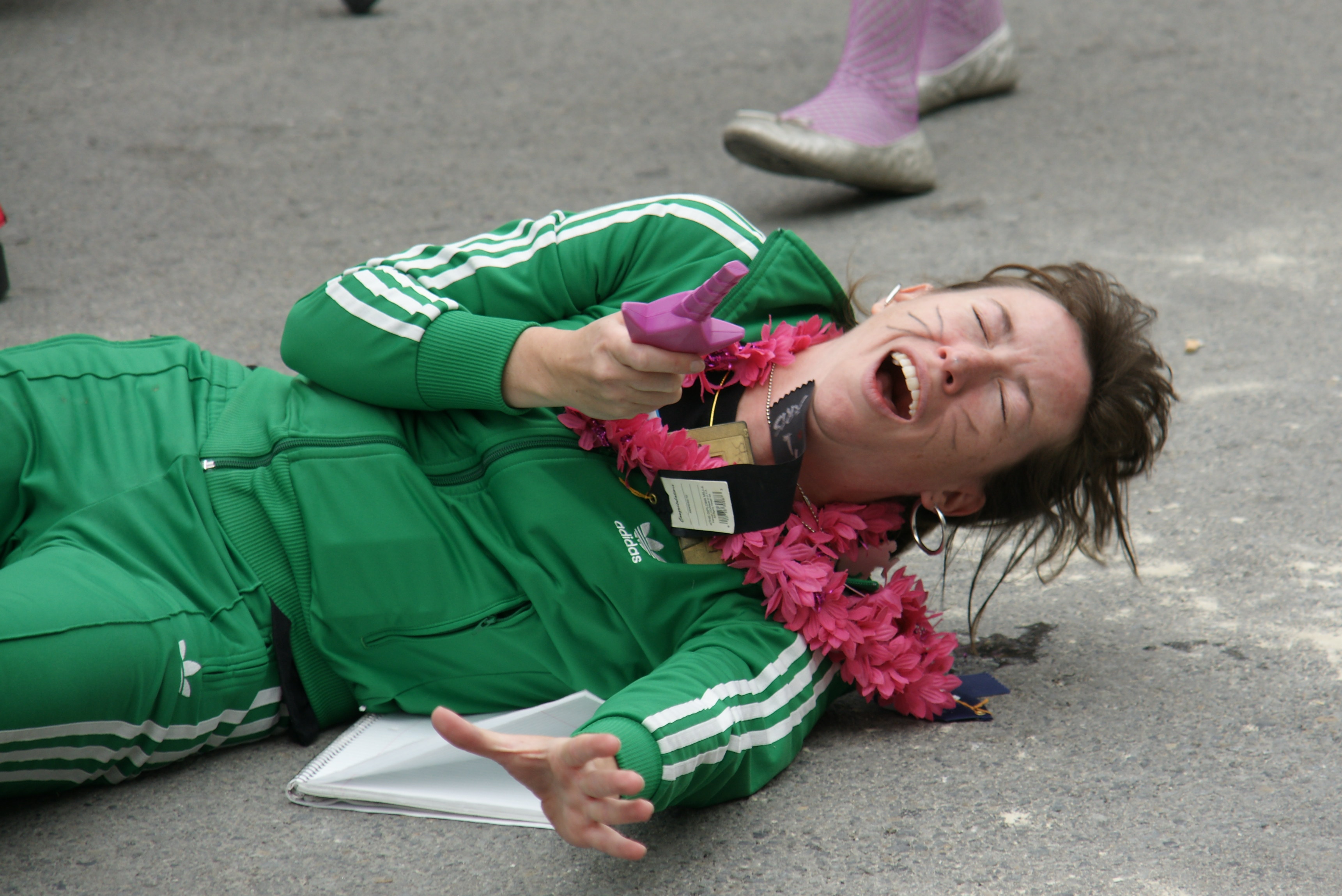 This girl put on her best red jacket and red nose and traveled to the after party to sit in a lotus position.  Because, of course she did.  We think she has a secret crush on someone and is trying to get their attention. “Buy me a drink and I’ll take off my nose.”