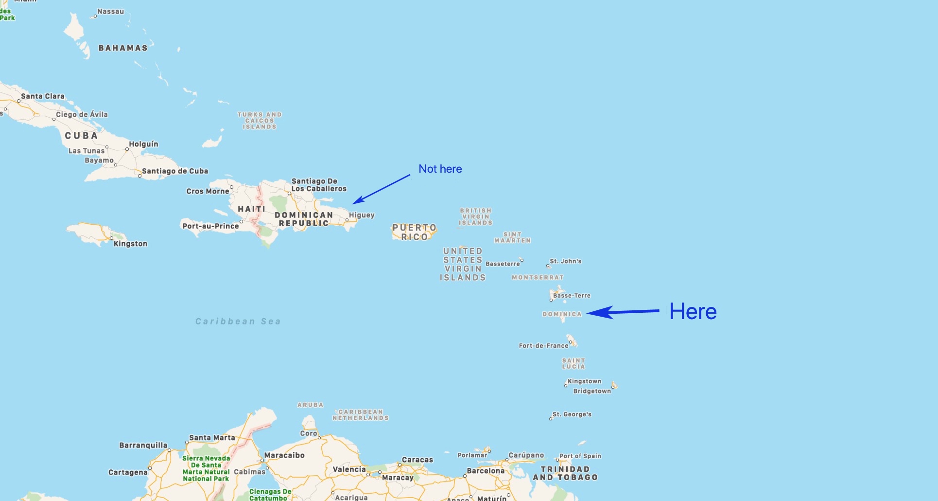 It is not the Dominican Republic, an equally lovely island, but not where we are vacationing.