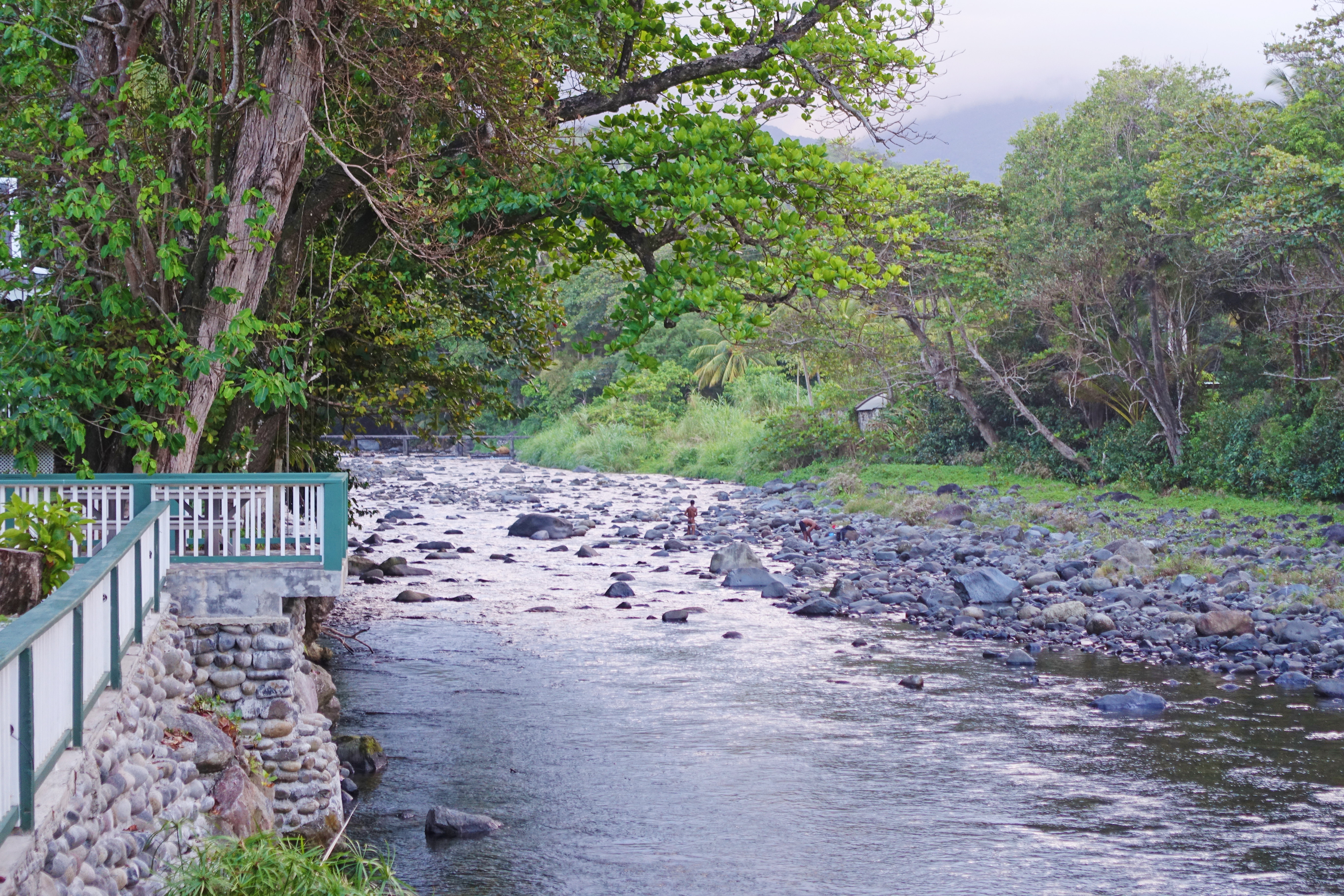 Do you see what looks like a pipe crossing the river? It is a concrete bridge, little more than one-vehicle wide, with no railing, and is the only road connecting the resort with the rest of the island. No drinking and driving on this island!!