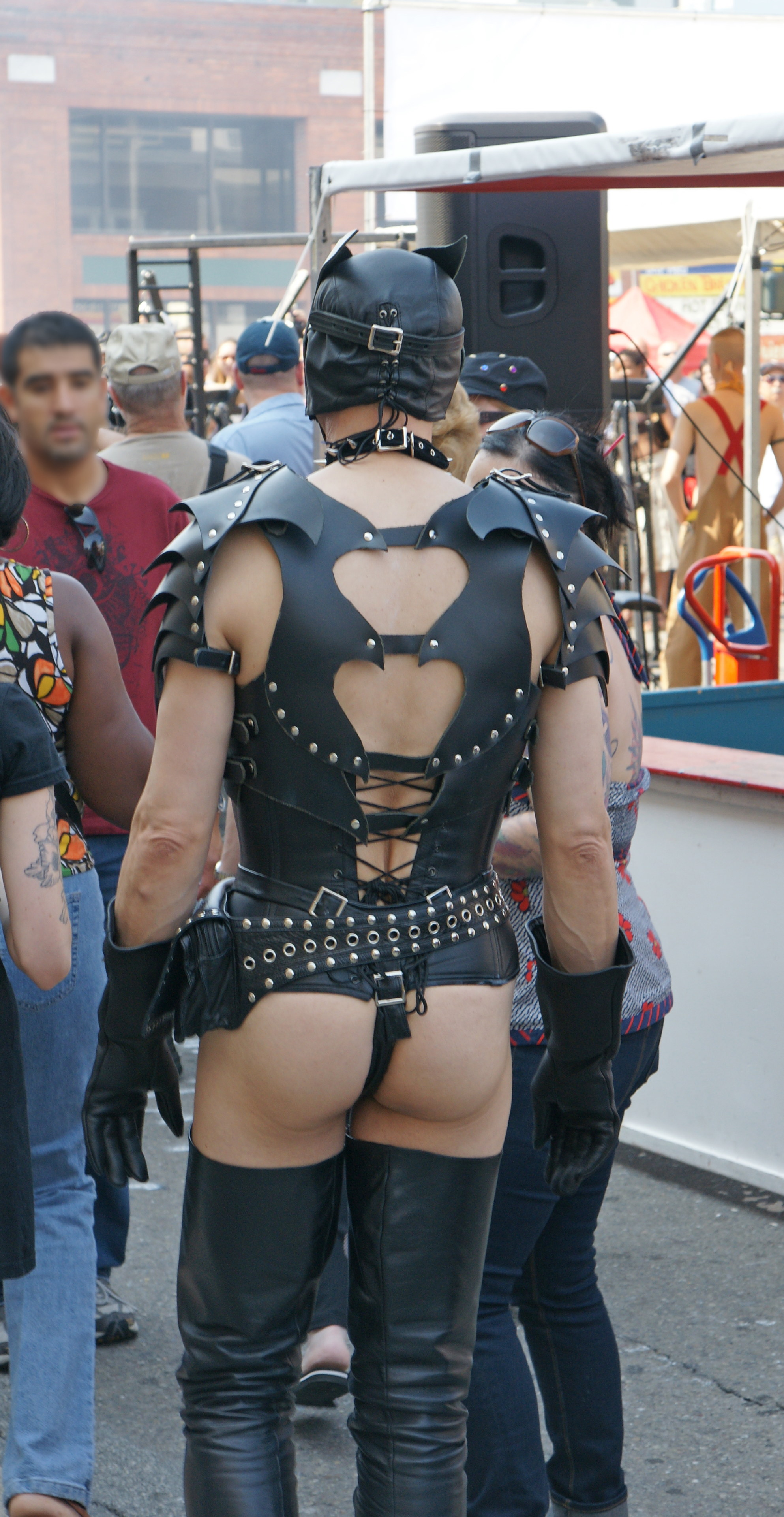 Despite the event being held in September and in San Francisco (where the weather is seldom pleasant), it can get quite warm, especially when wearing latex. Wearing latex is like wearing a raincoat except you are wet on the inside from constant sweating. It takes some getting used to, and staying hydrated is important.