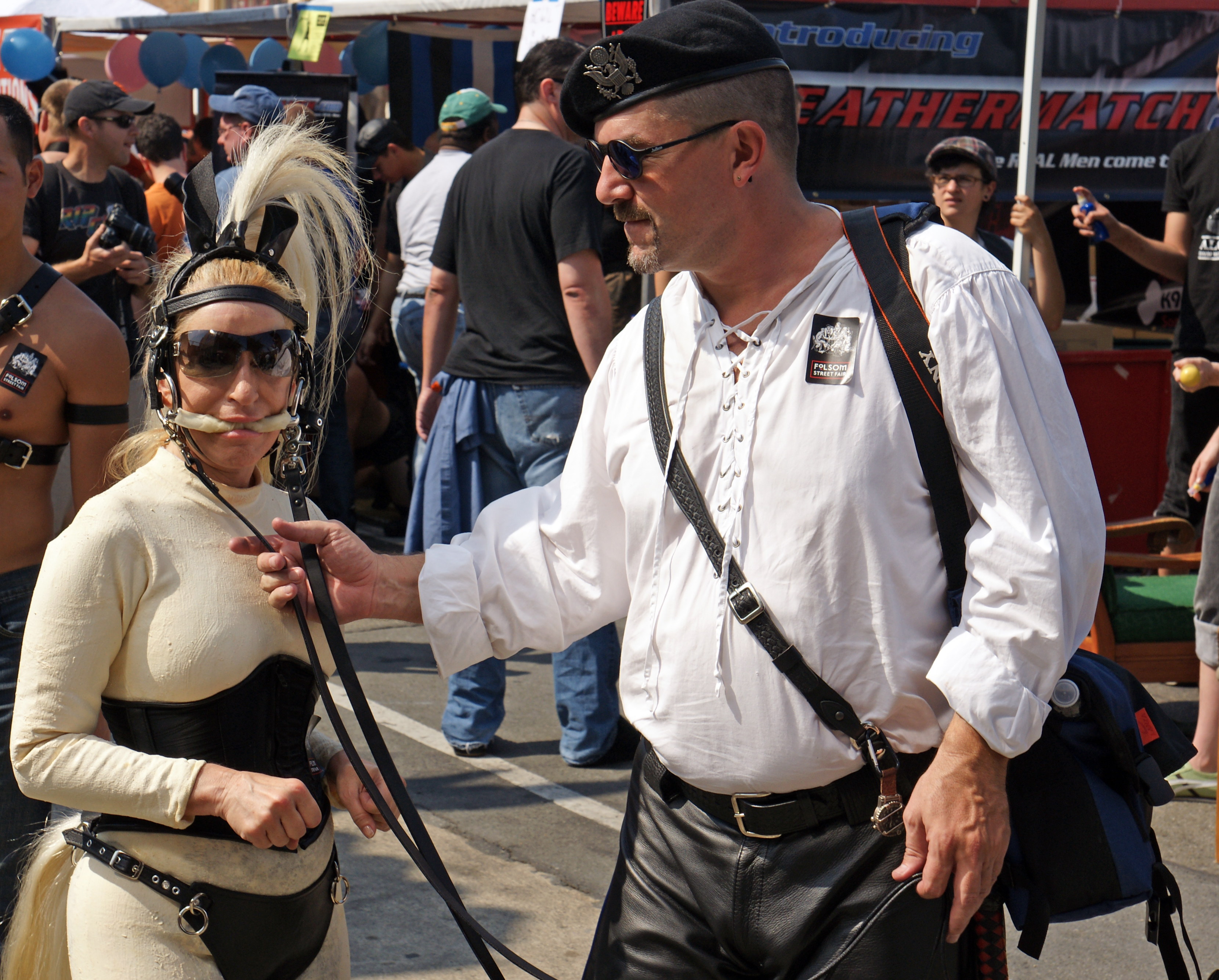 Folsom Street Fair is an annual BDSM and leather subculture street fair, held in September, that caps San Francisco, California‘s “Leather Pride Week“. The Folsom Street Fair takes place on Folsom Street between 8th and 13th Streets, in San Francisco’s South of Market district.