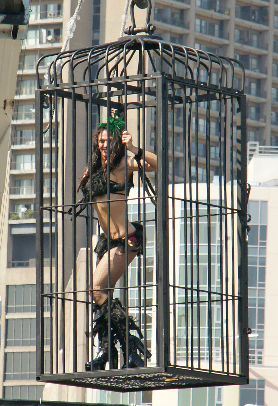 Although this damsel looks distressed, I think she is securely bound and does not have anything to fear, because what could ever happen to someone tied up on a stage?