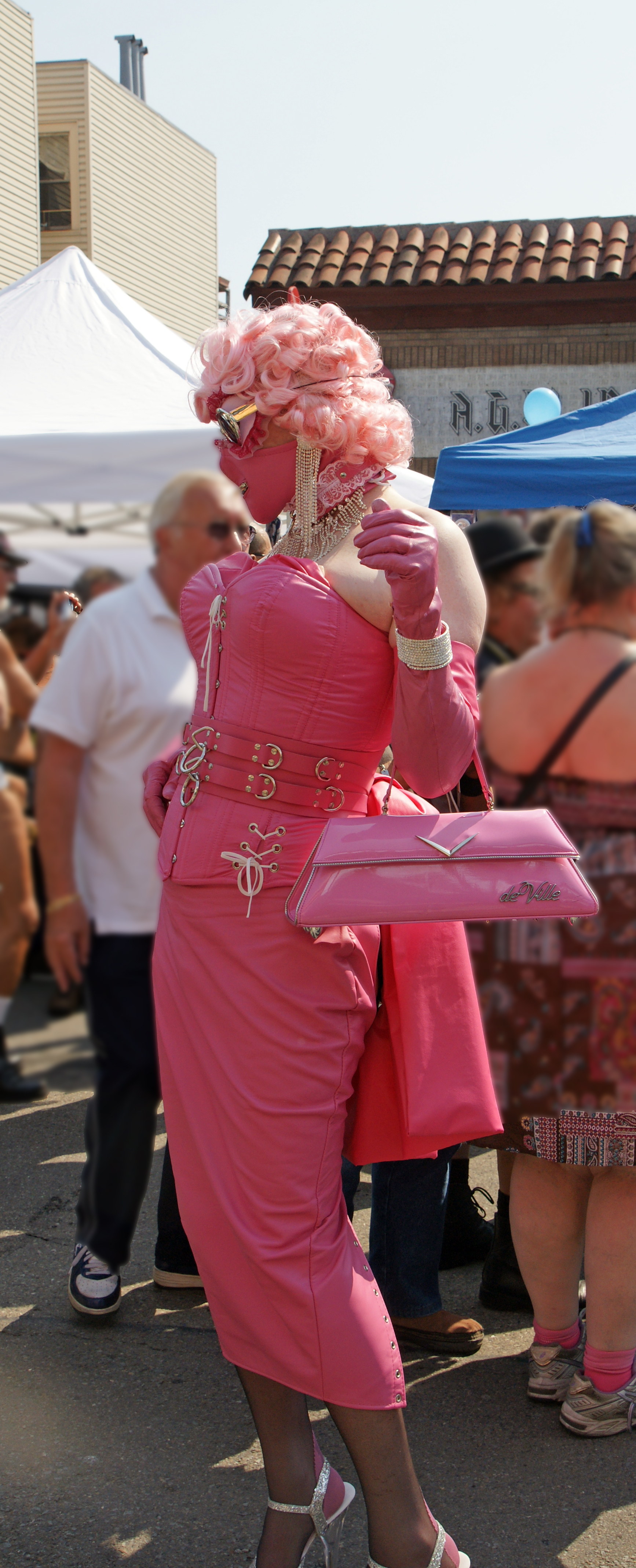 I imagine that this fair-goer put on her fishnet tights, corset, and shoes, looked in the mirror, and said, “Something is missing. A-ha! I need a hat!”