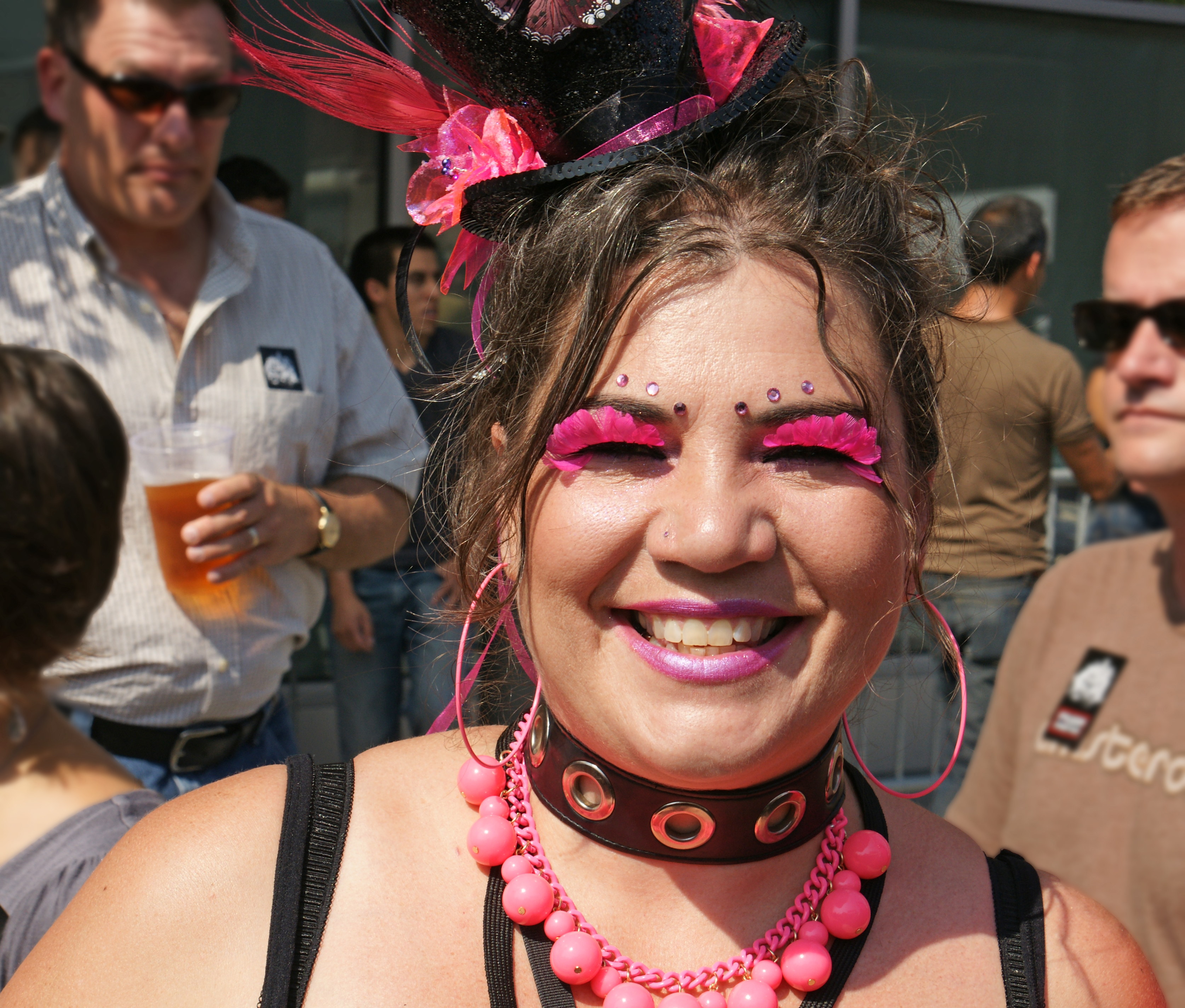 We are at the event with three of our friends from college who have never been to Folsom Street Fair, so we are sure we’ll have lots of fun. Notice that we are already drinking; well, it is after 10:00am. 😀