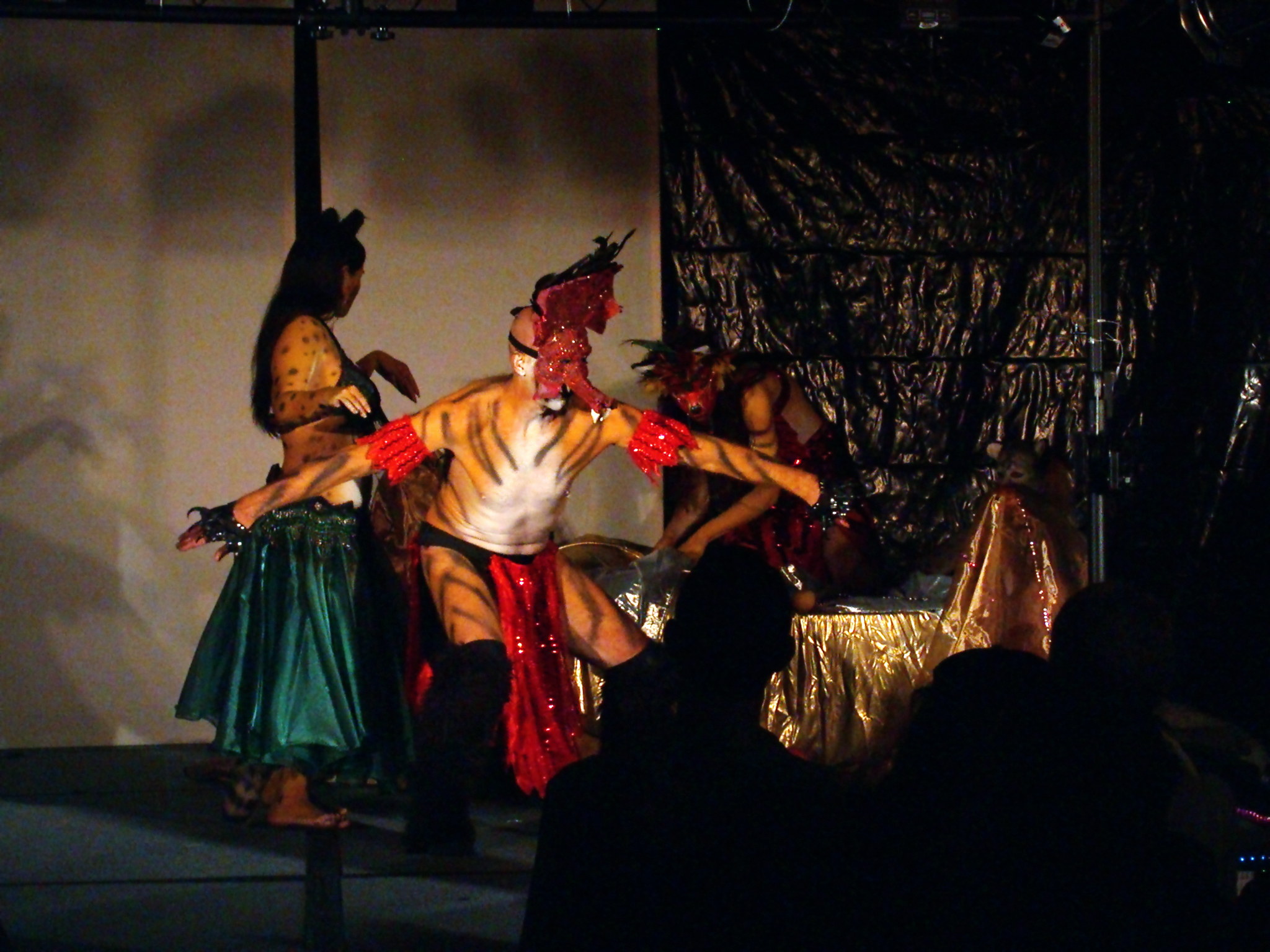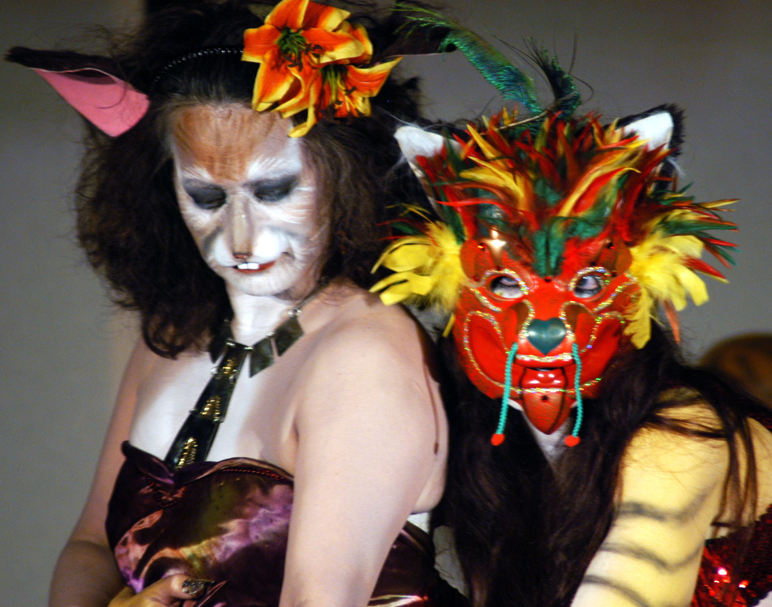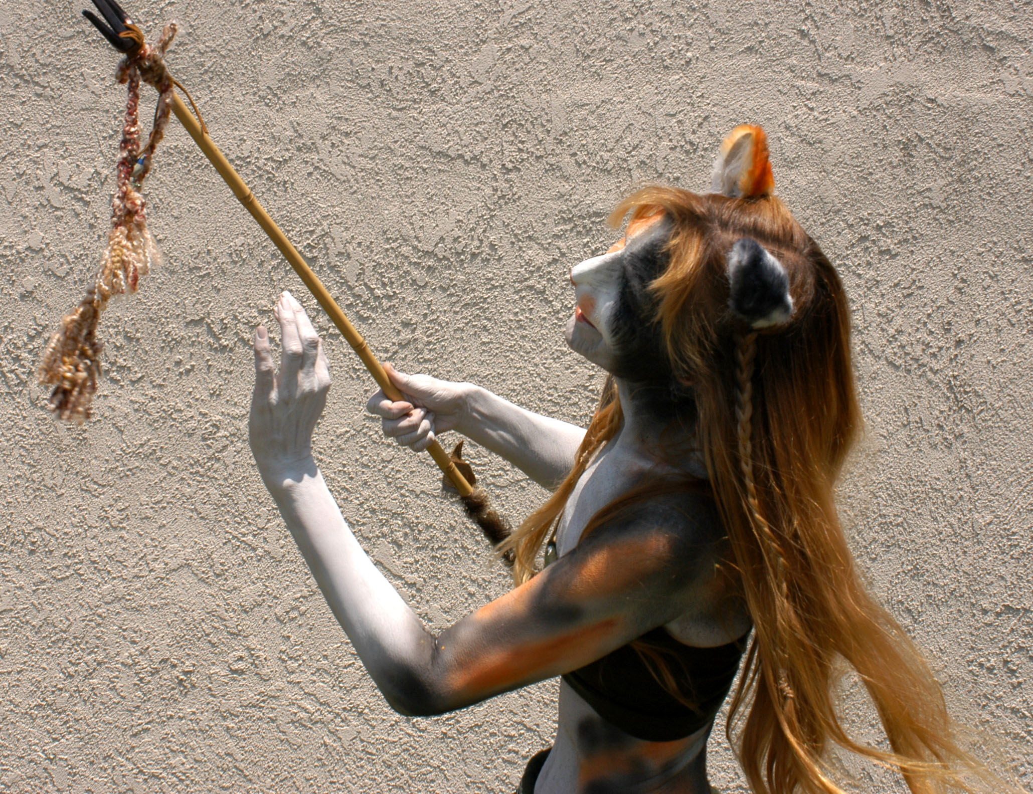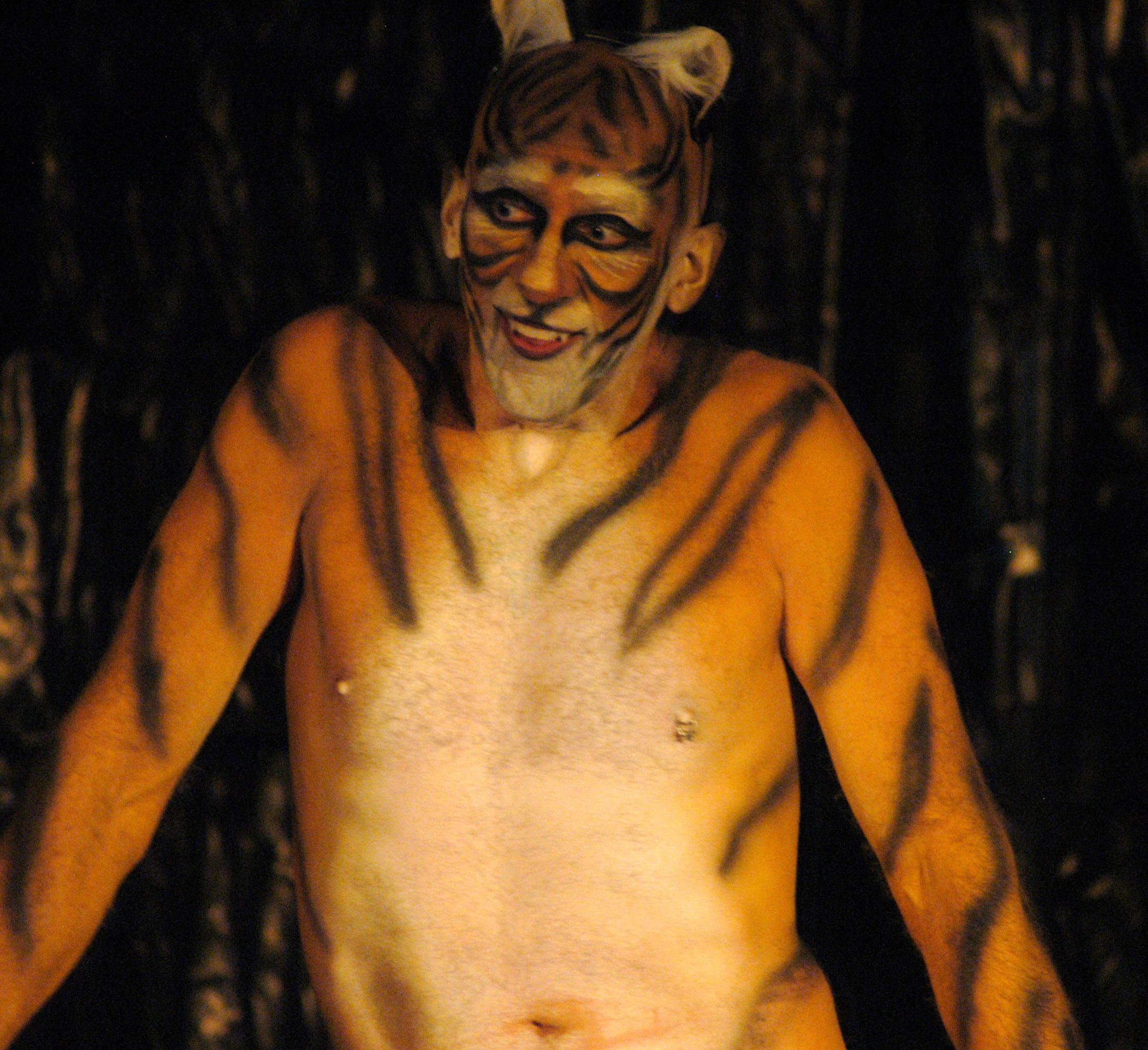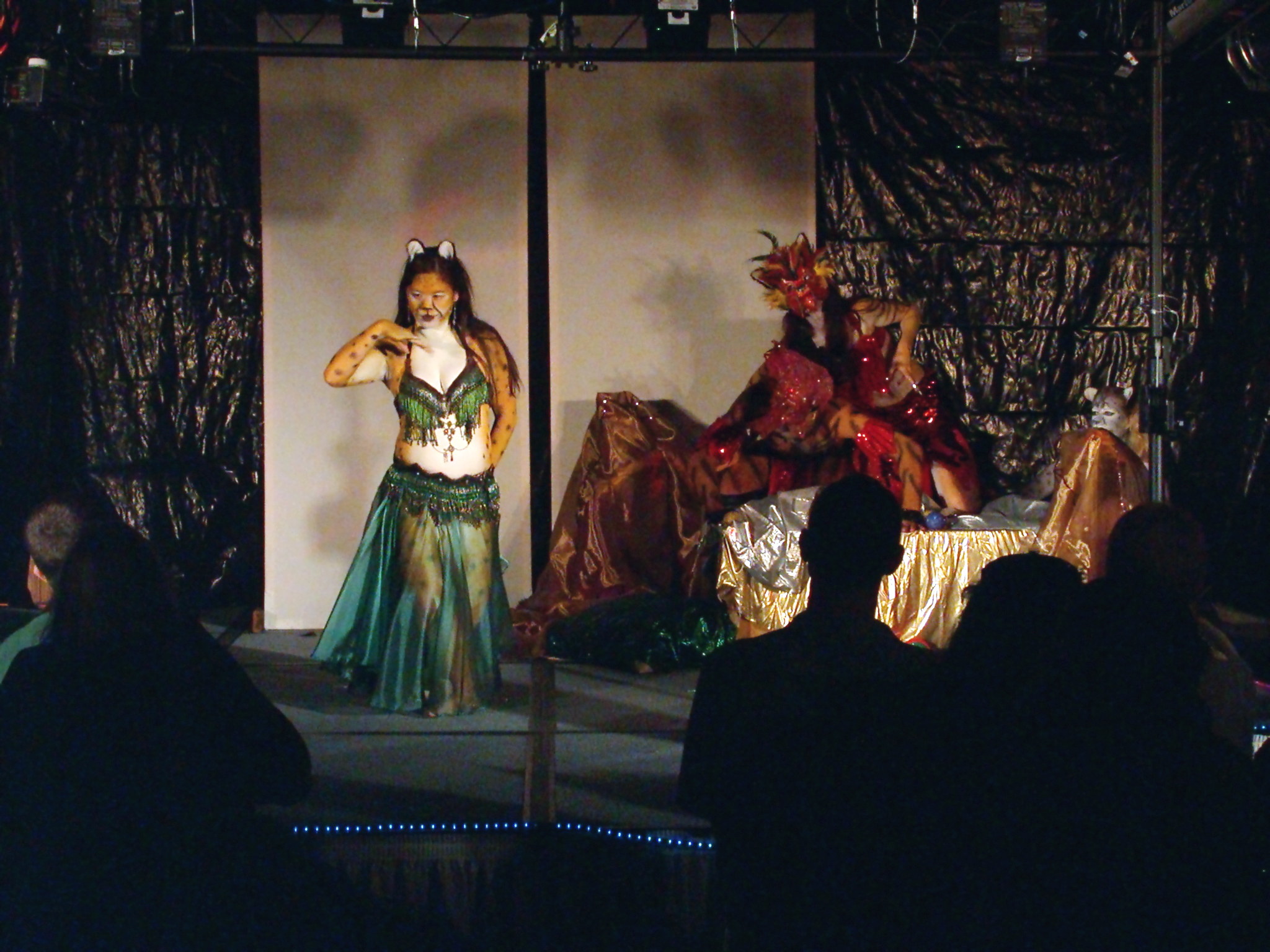Stalking Cat body-painted us once, a long time ago, for a dance performance called Cabaret Fur Le Danse. (Cabaret Fur Le Danse Program.)  We were members of Myths and Legends Dance Troupe, which included many of the same members (including us) of Tribe Roman Morga.
