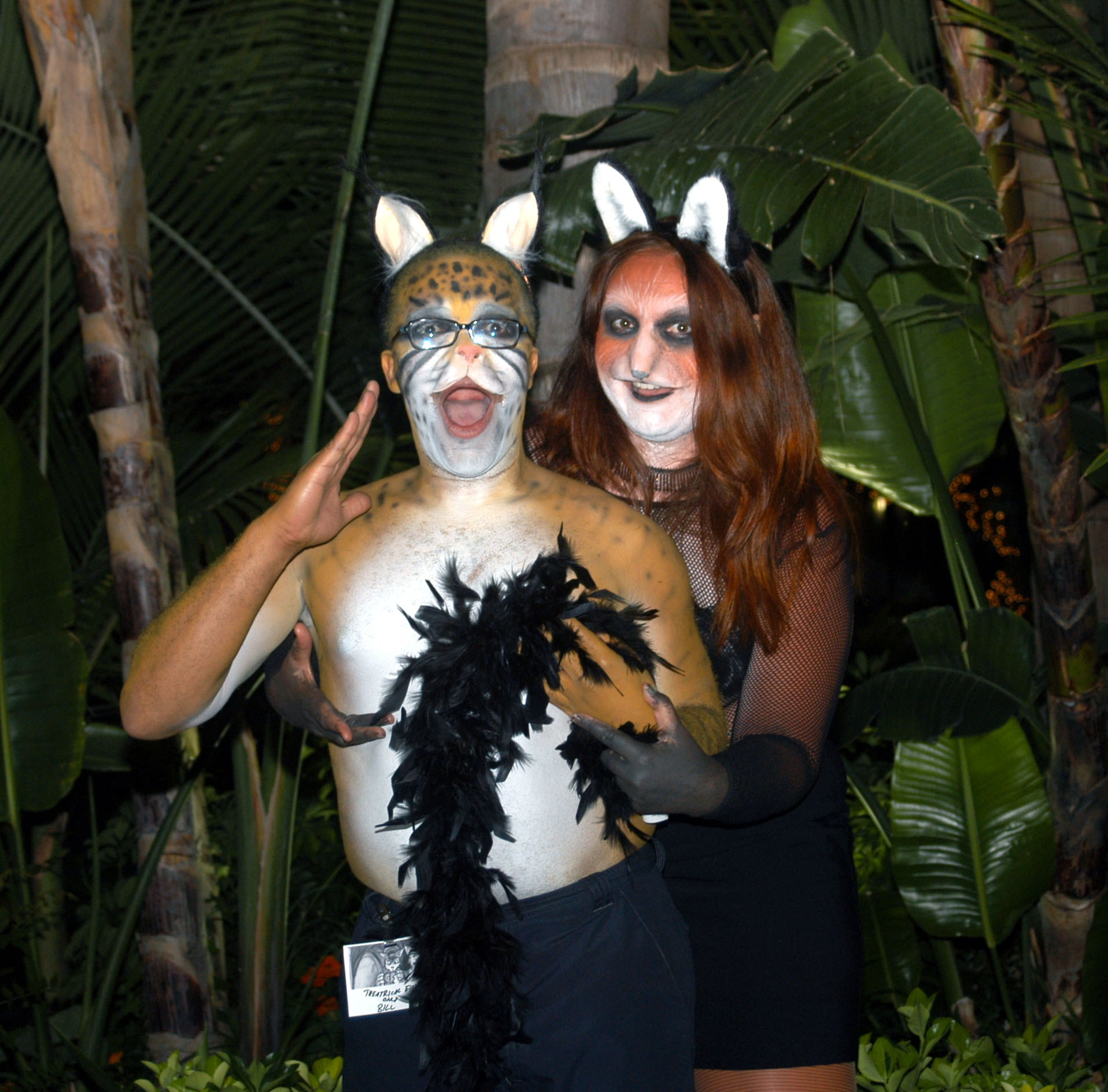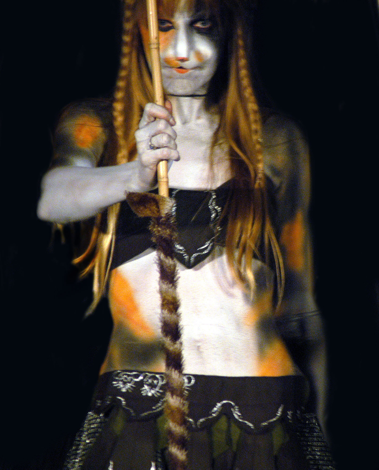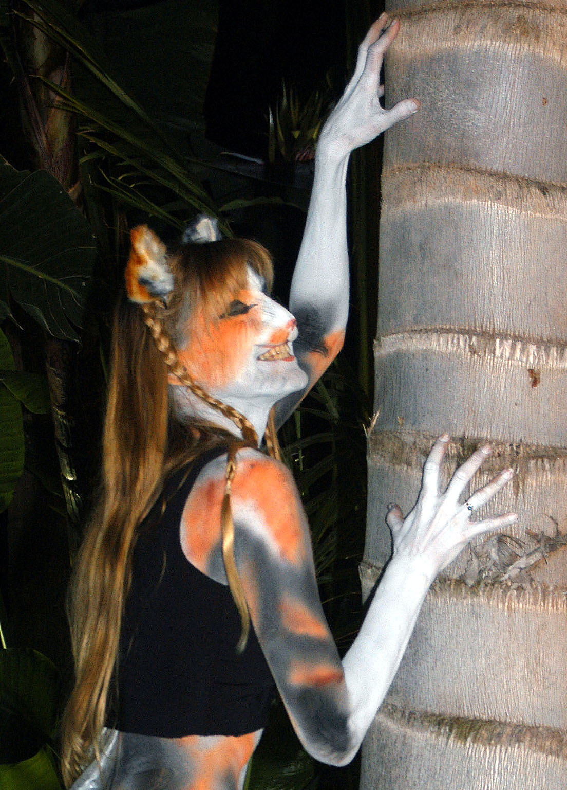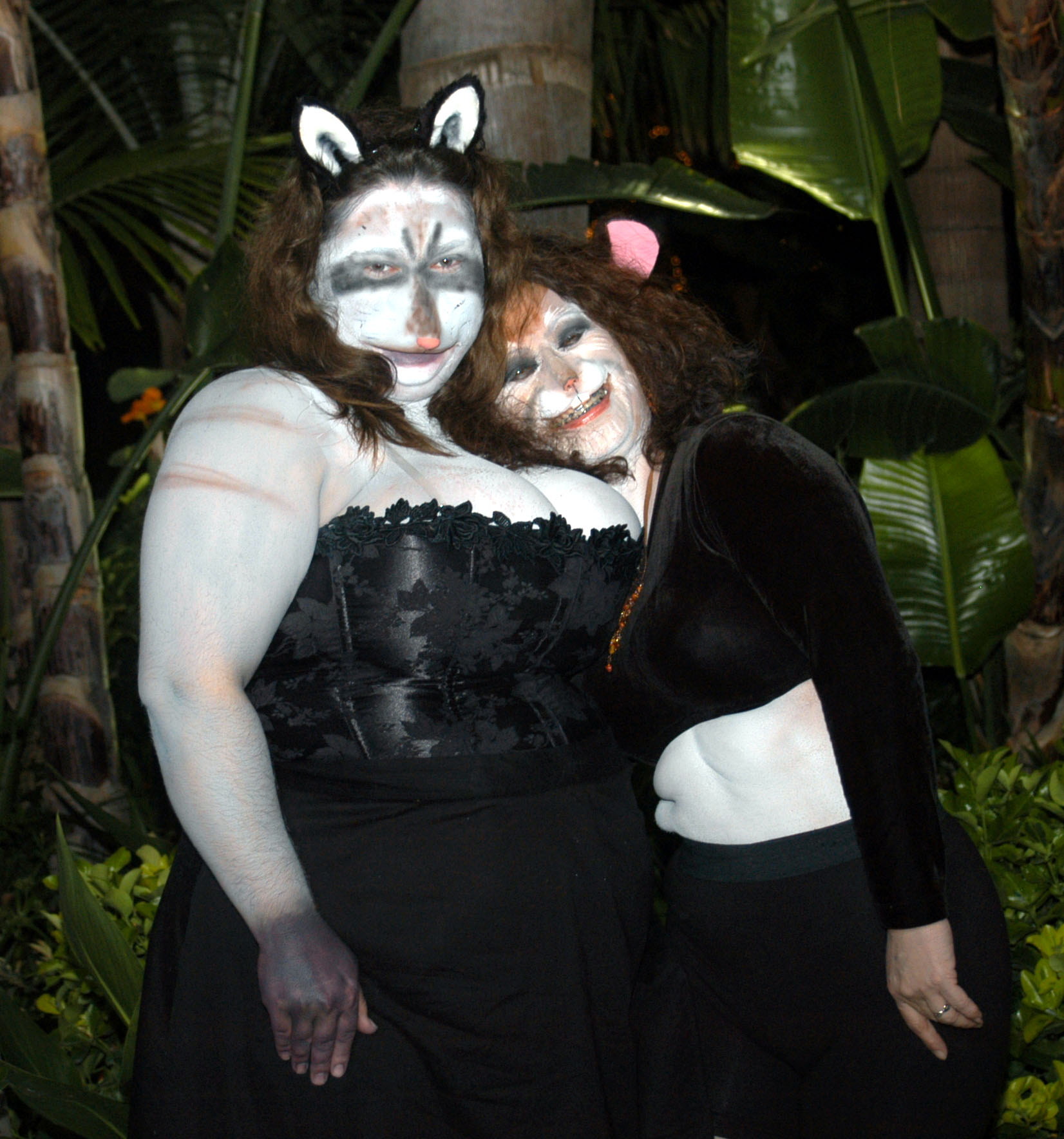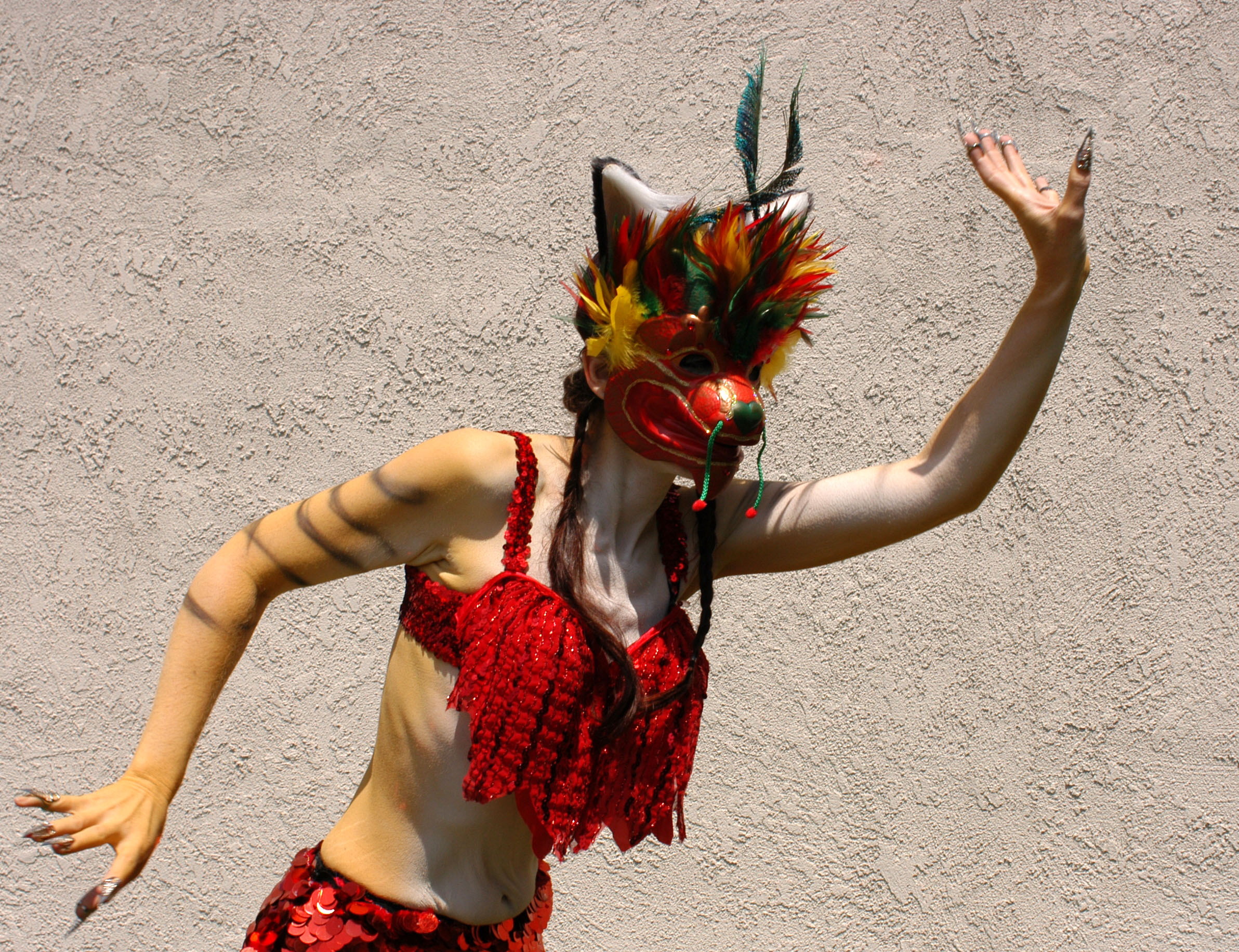 Stalking Cat body-painted us once, a long time ago, for a dance performance called Cabaret Fur Le Danse. (Cabaret Fur Le Danse Program.)  We were members of Myths and Legends Dance Troupe, which included many of the same members (including us) of Tribe Roman Morga.