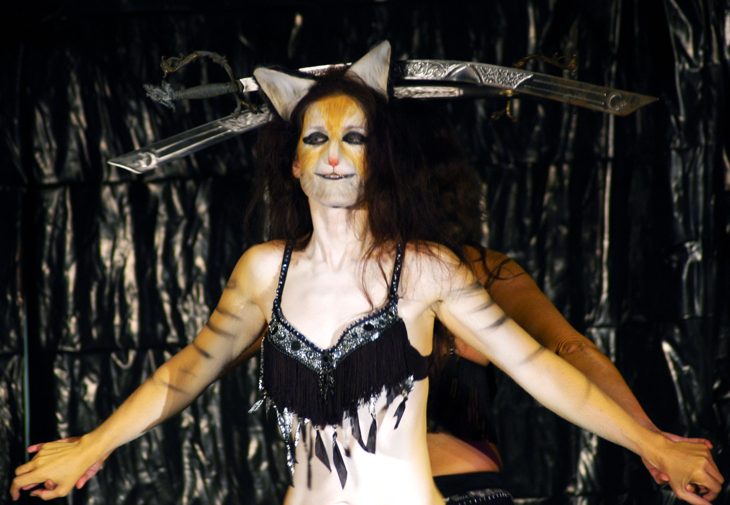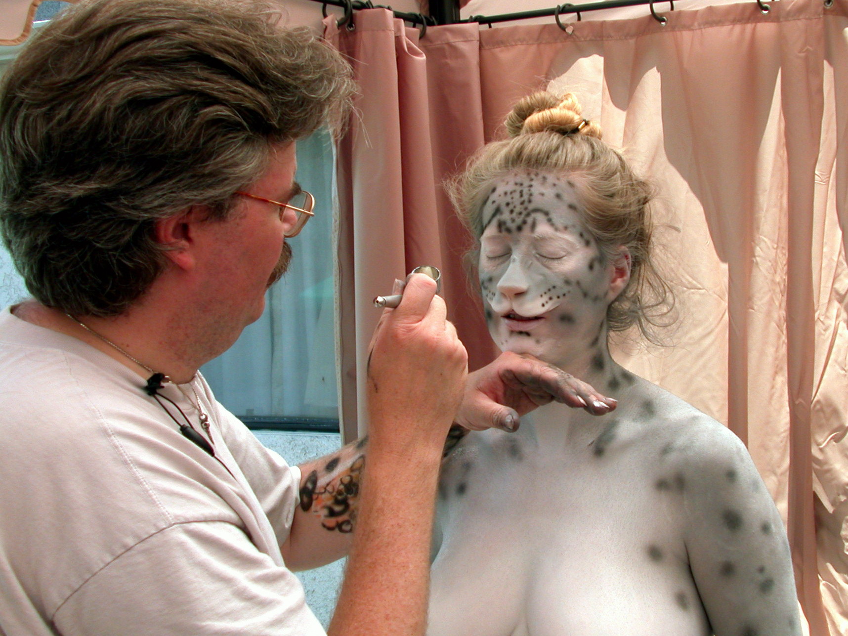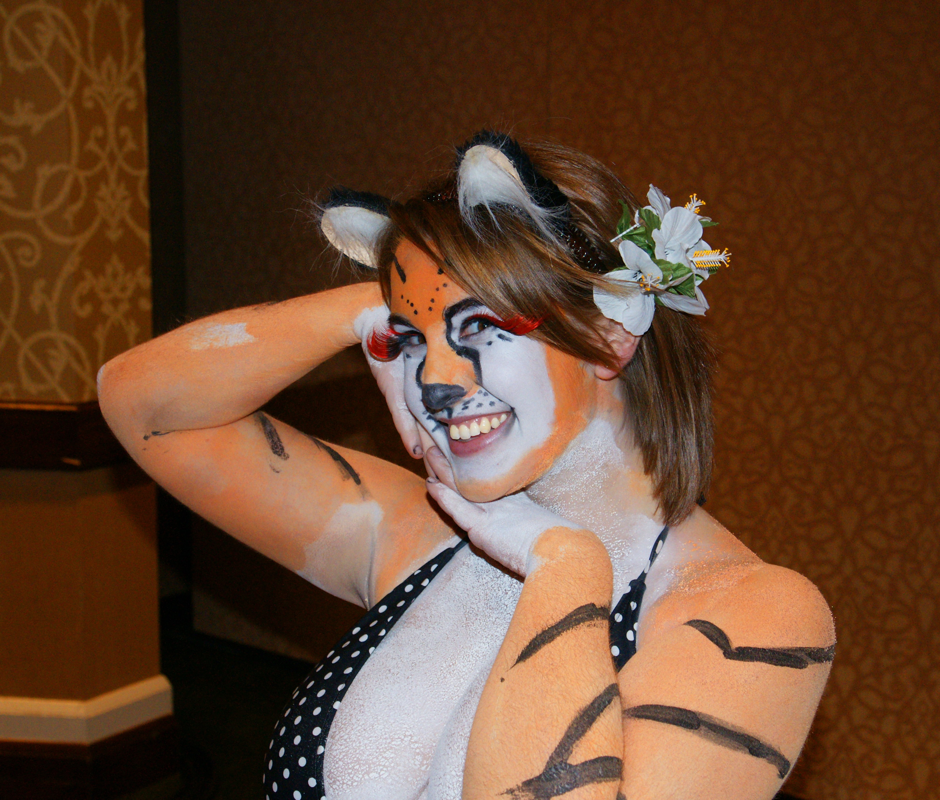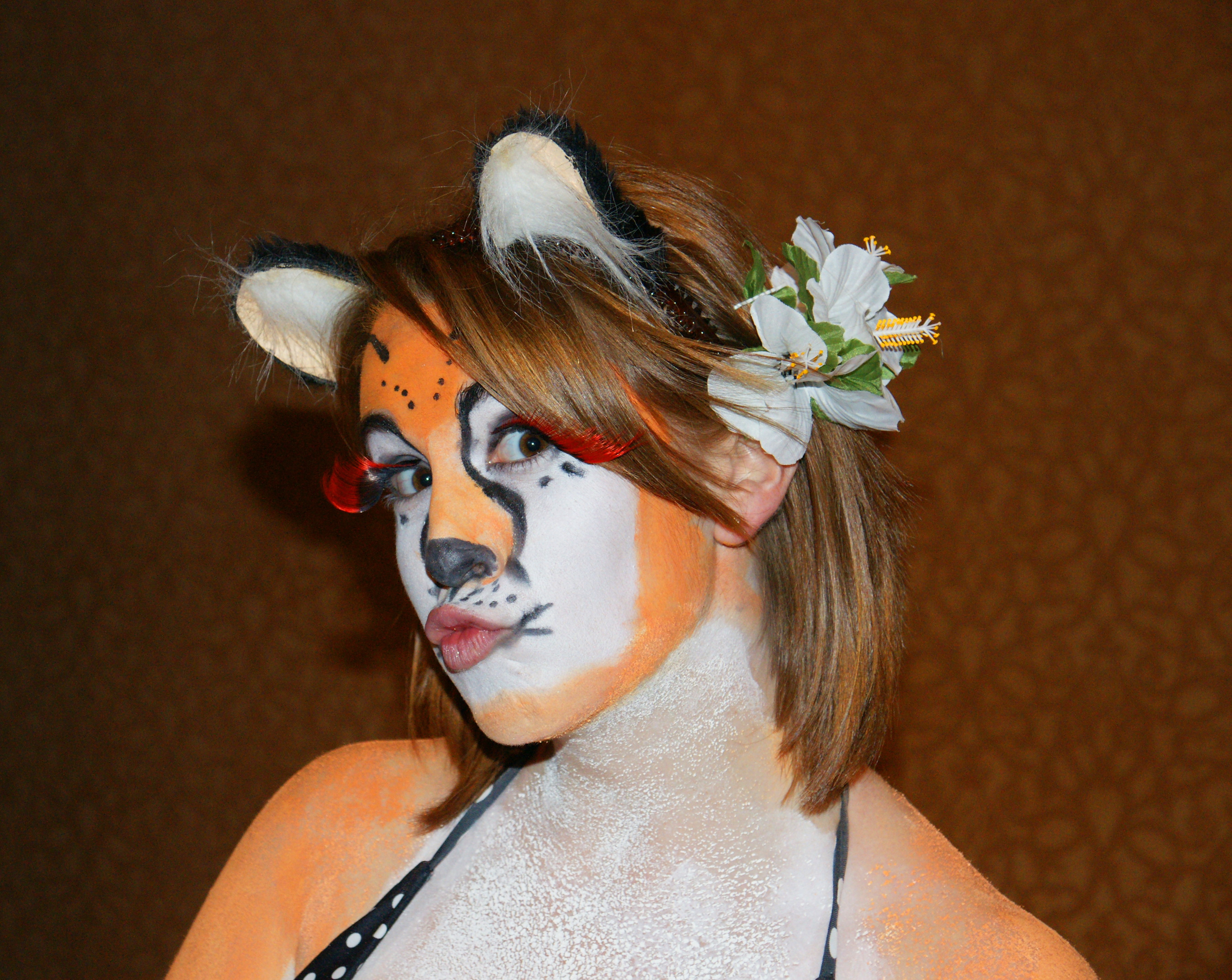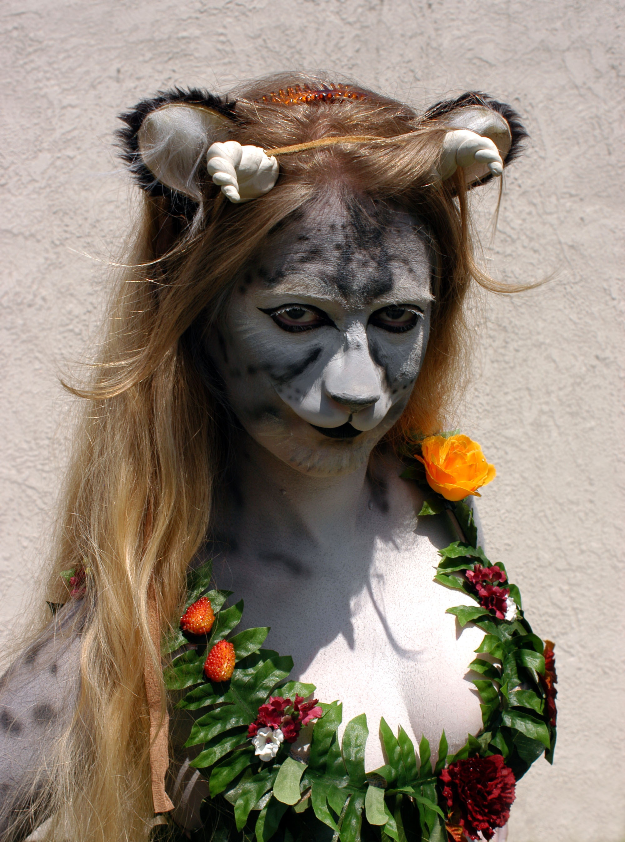 Stalking Cat body-painted us once, a long time ago, for a dance performance called Cabaret Fur Le Danse. (Cabaret Fur Le Danse Program.)  We were members of Myths and Legends Dance Troupe, which included many of the same members (including us) of Tribe Roman Morga.