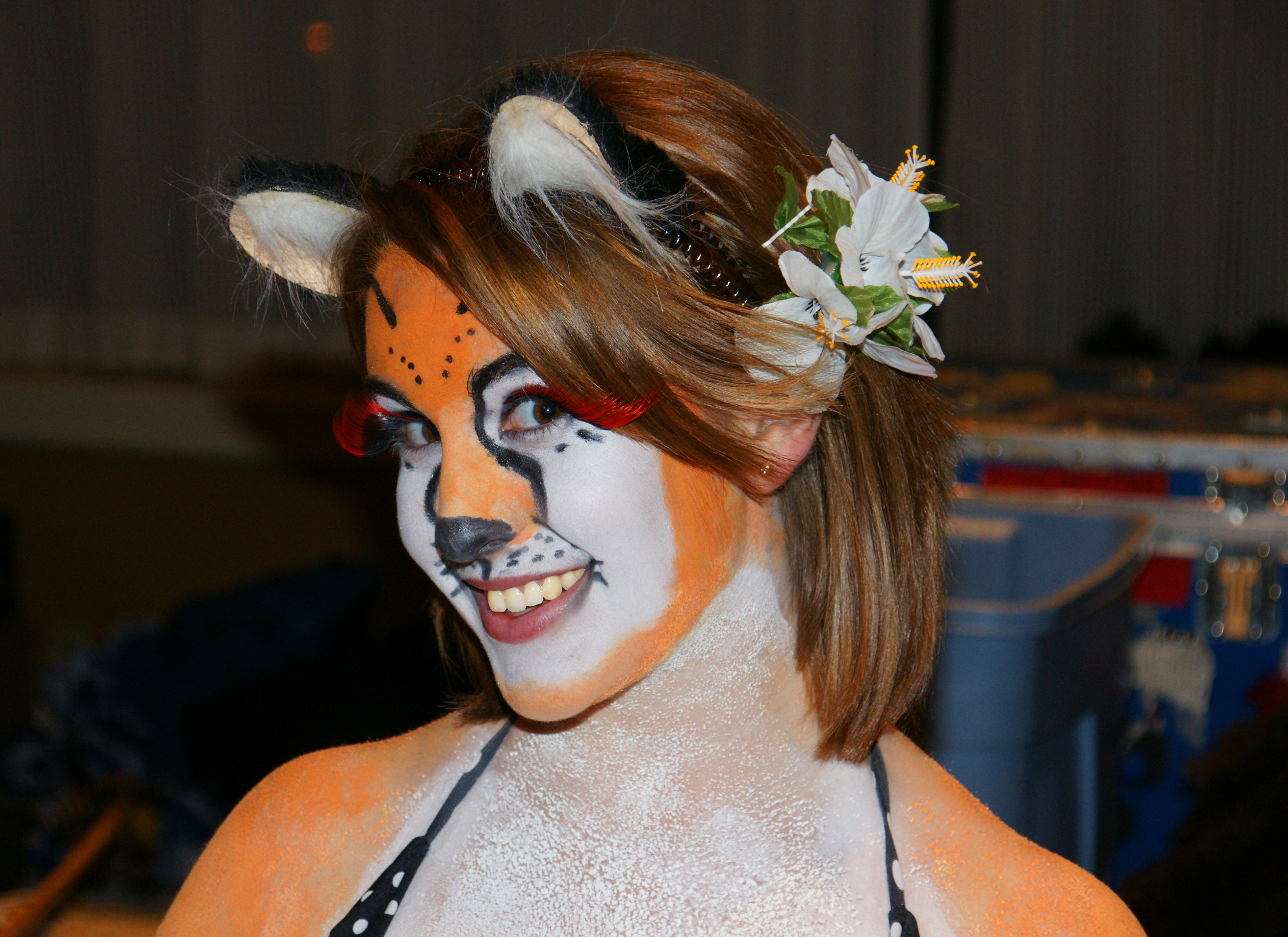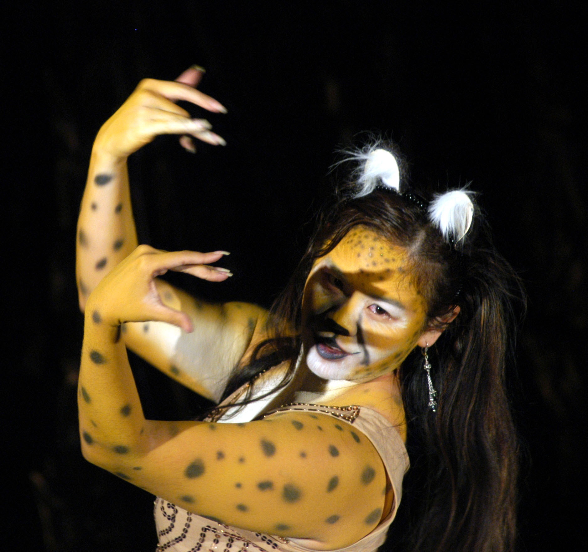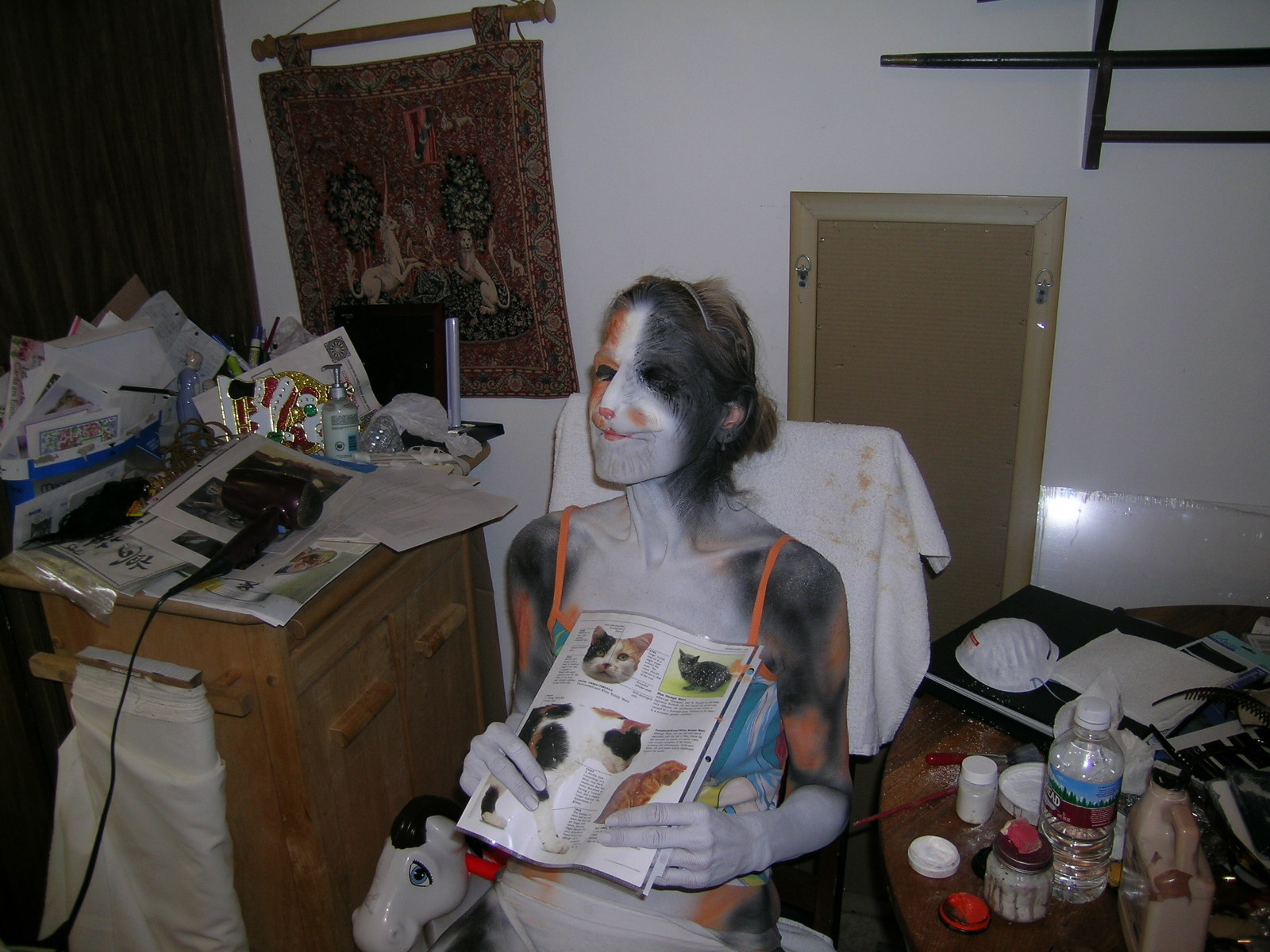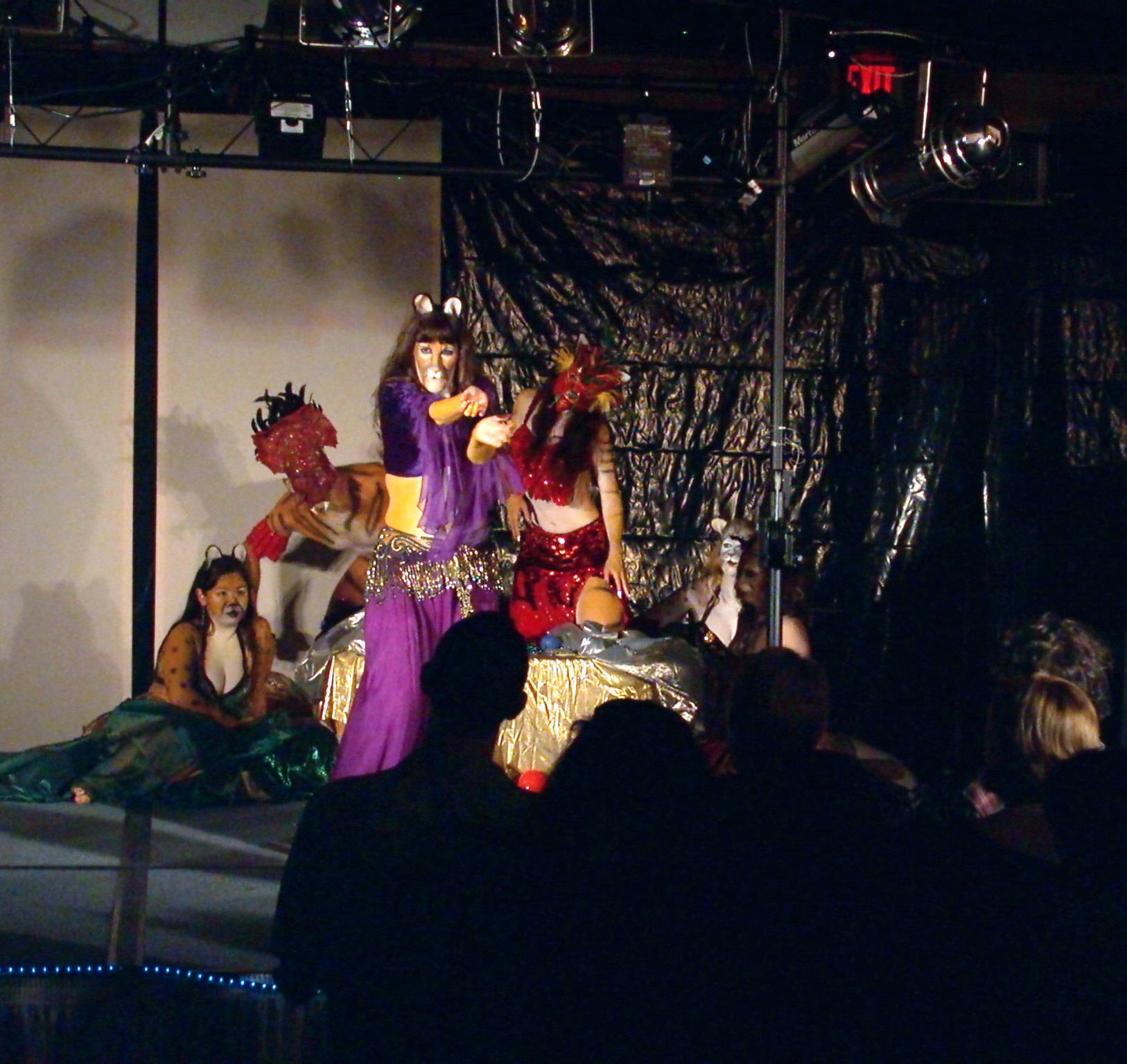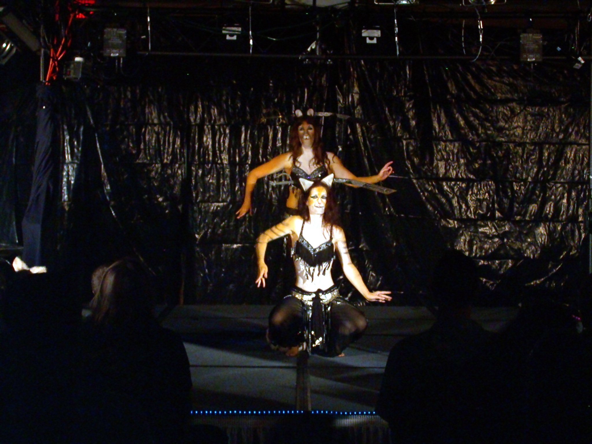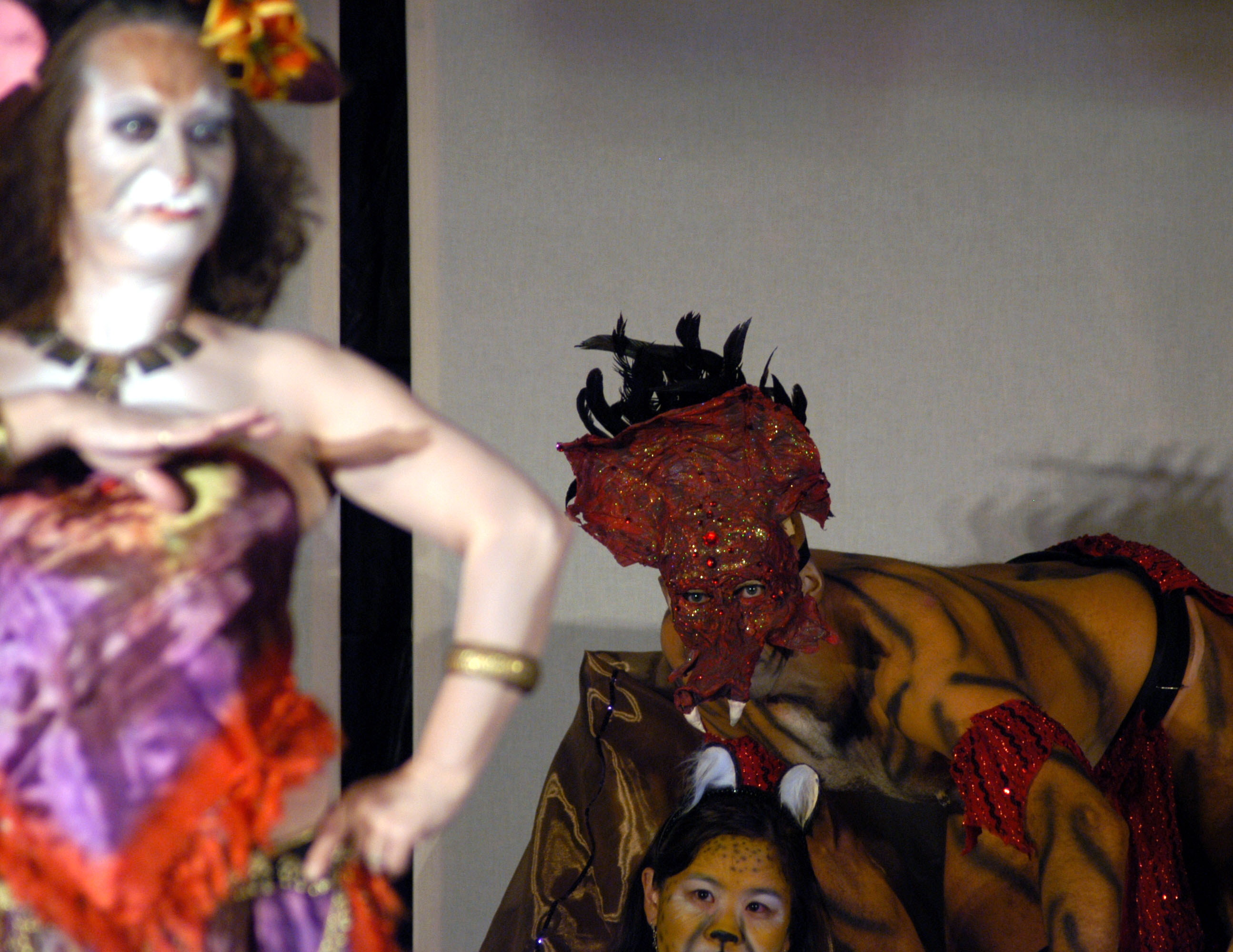 Stalking Cat body-painted us once, a long time ago, for a dance performance called Cabaret Fur Le Danse. (Cabaret Fur Le Danse Program.)  We were members of Myths and Legends Dance Troupe, which included many of the same members (including us) of Tribe Roman Morga.