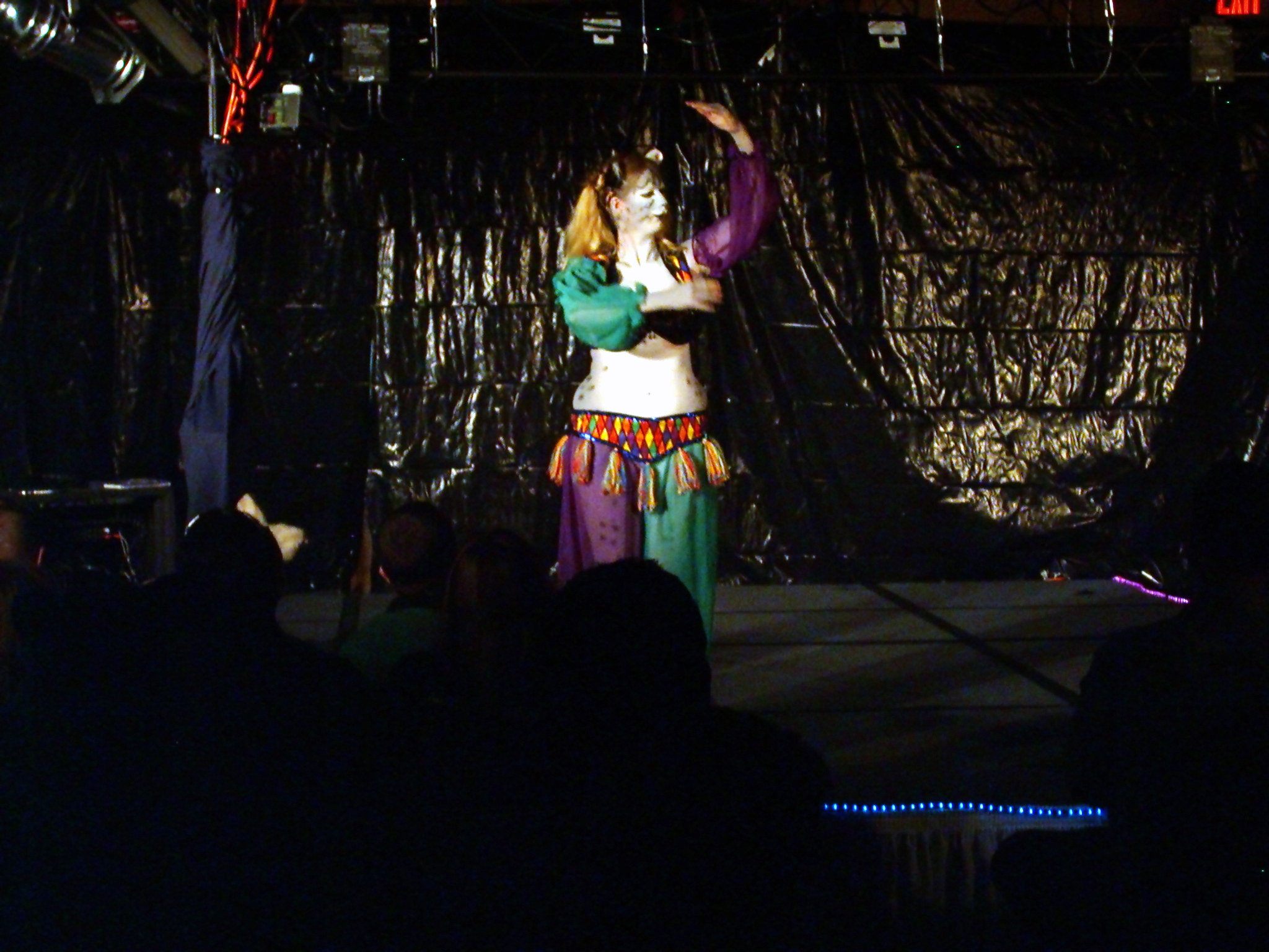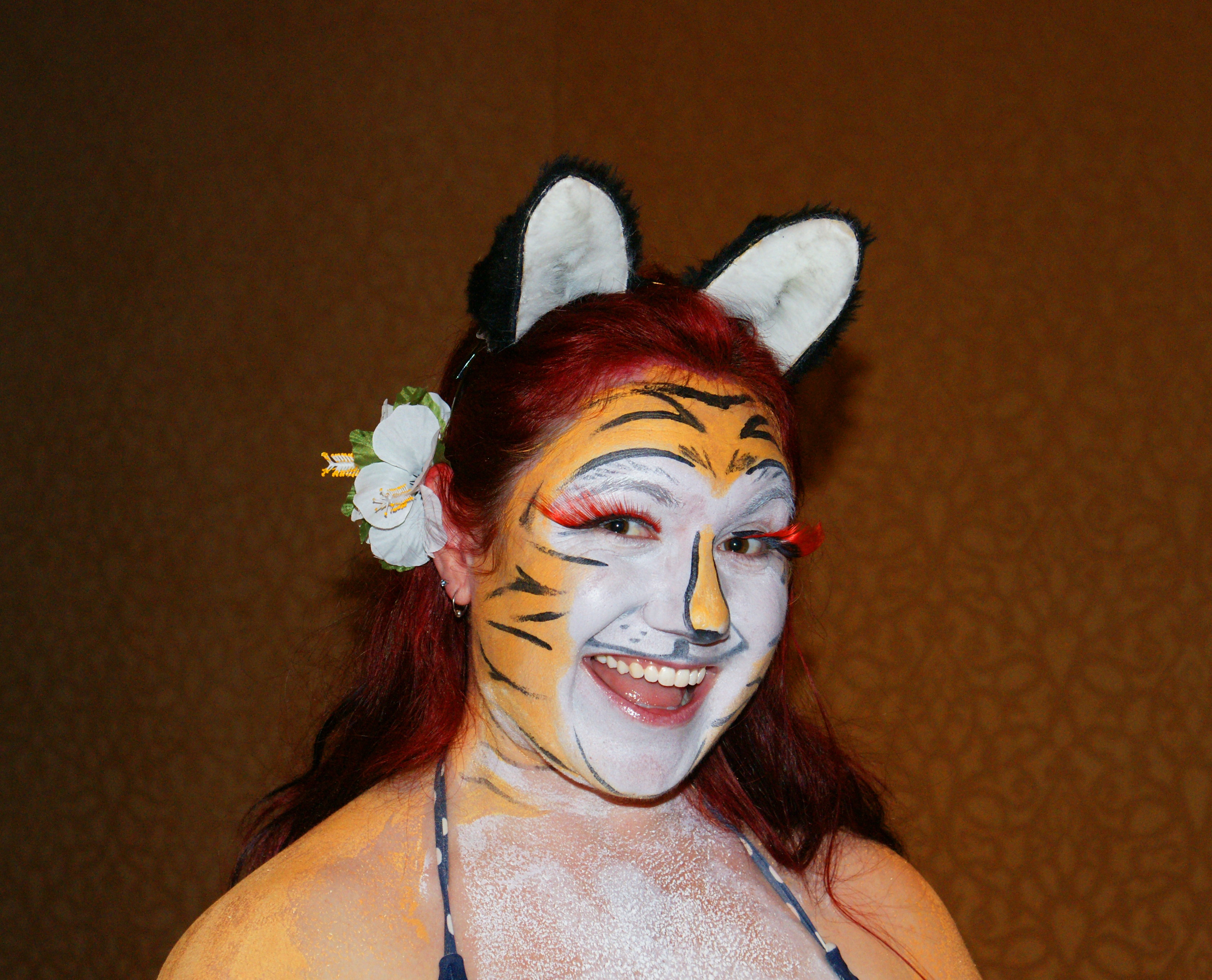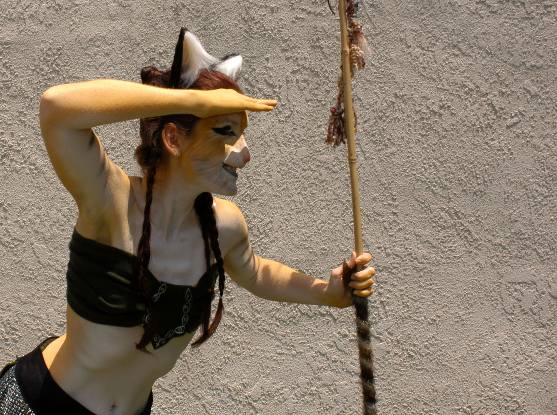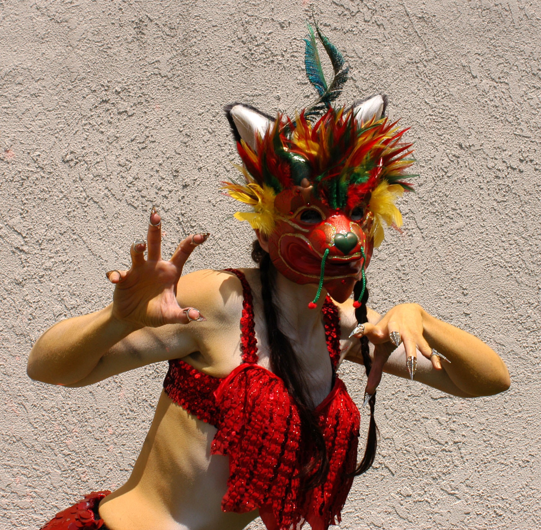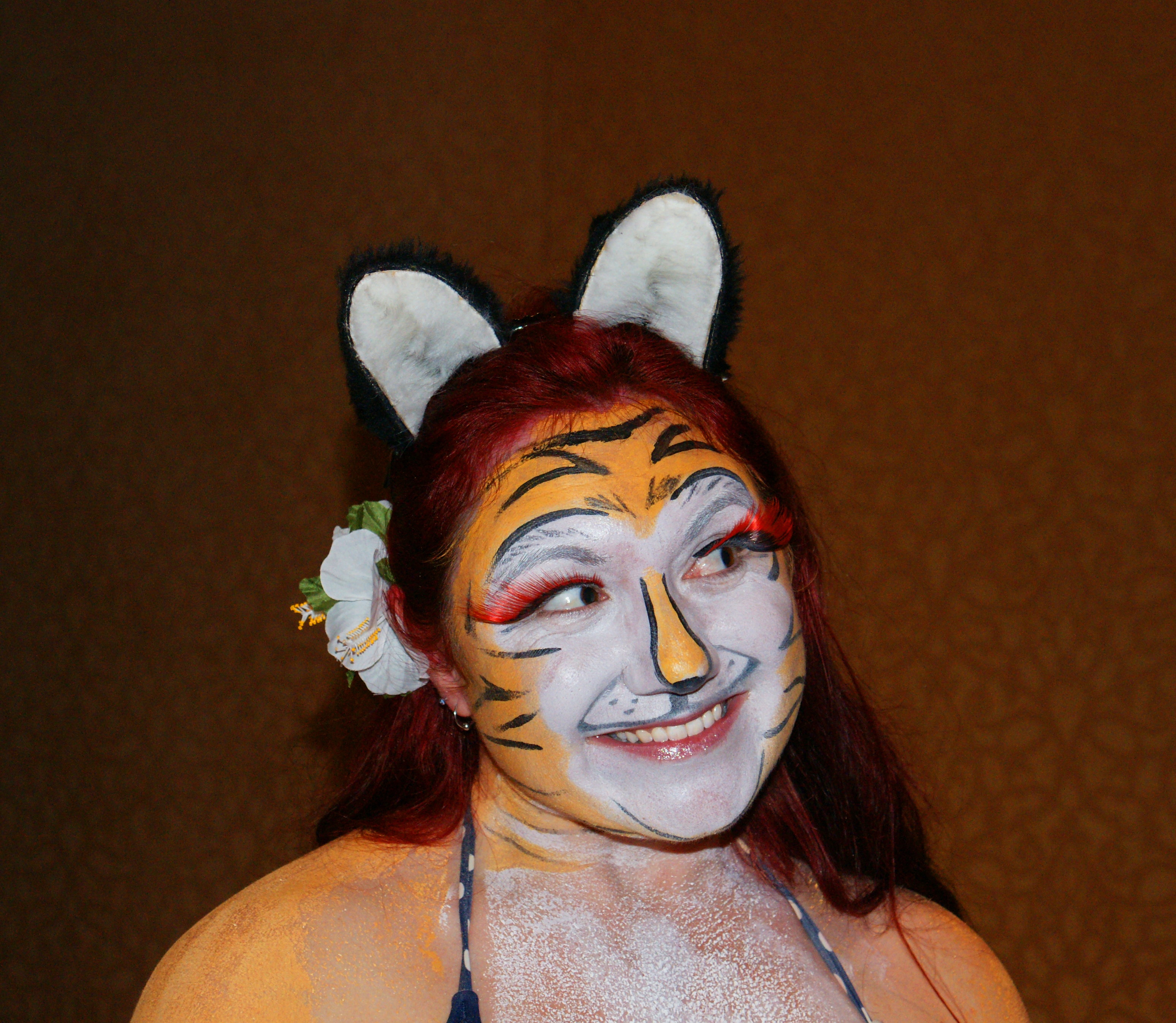 Stalking Cat body-painted us once, a long time ago, for a dance performance called Cabaret Fur Le Danse. (Cabaret Fur Le Danse Program.)  We were members of Myths and Legends Dance Troupe, which included many of the same members (including us) of Tribe Roman Morga.