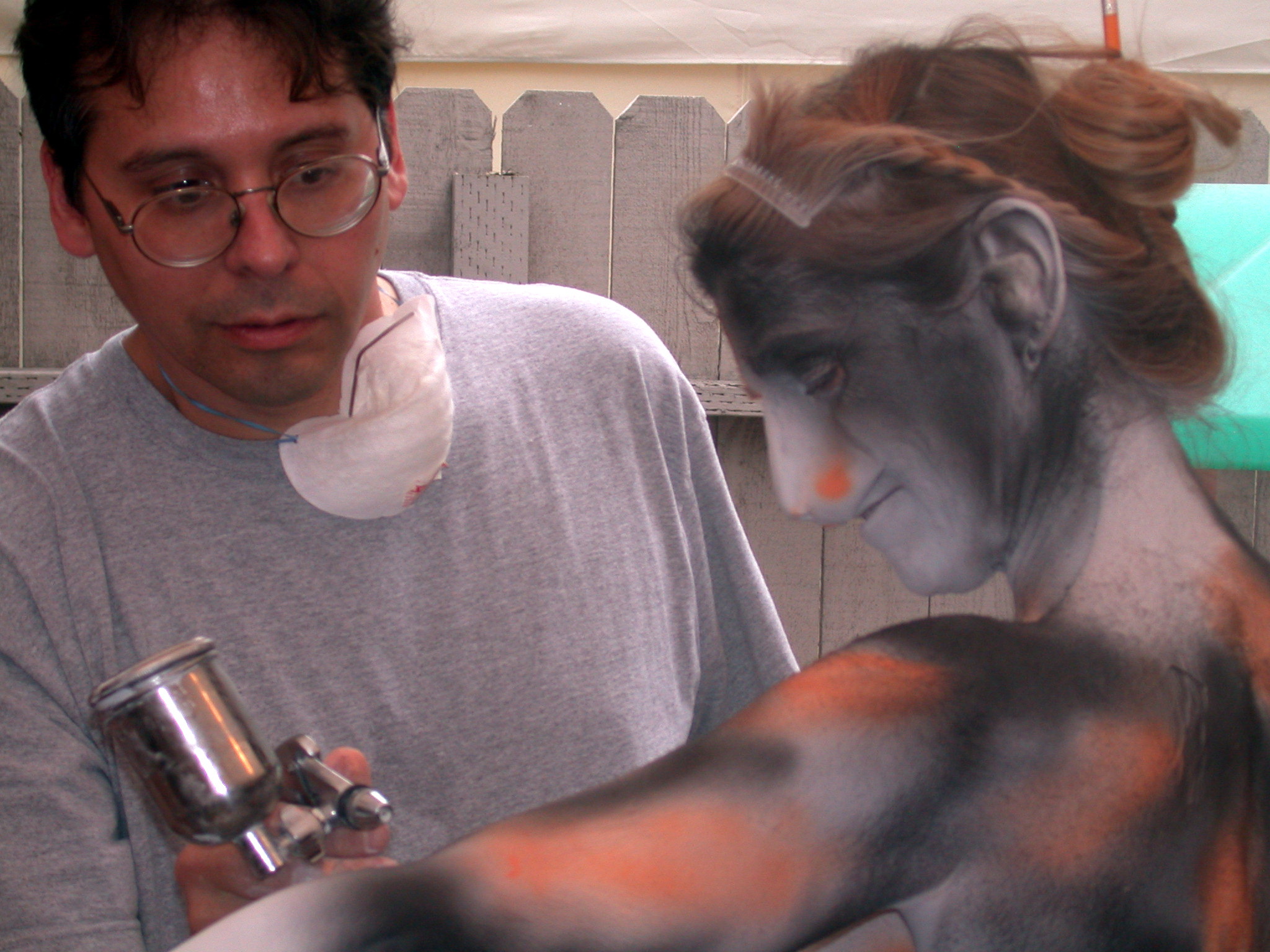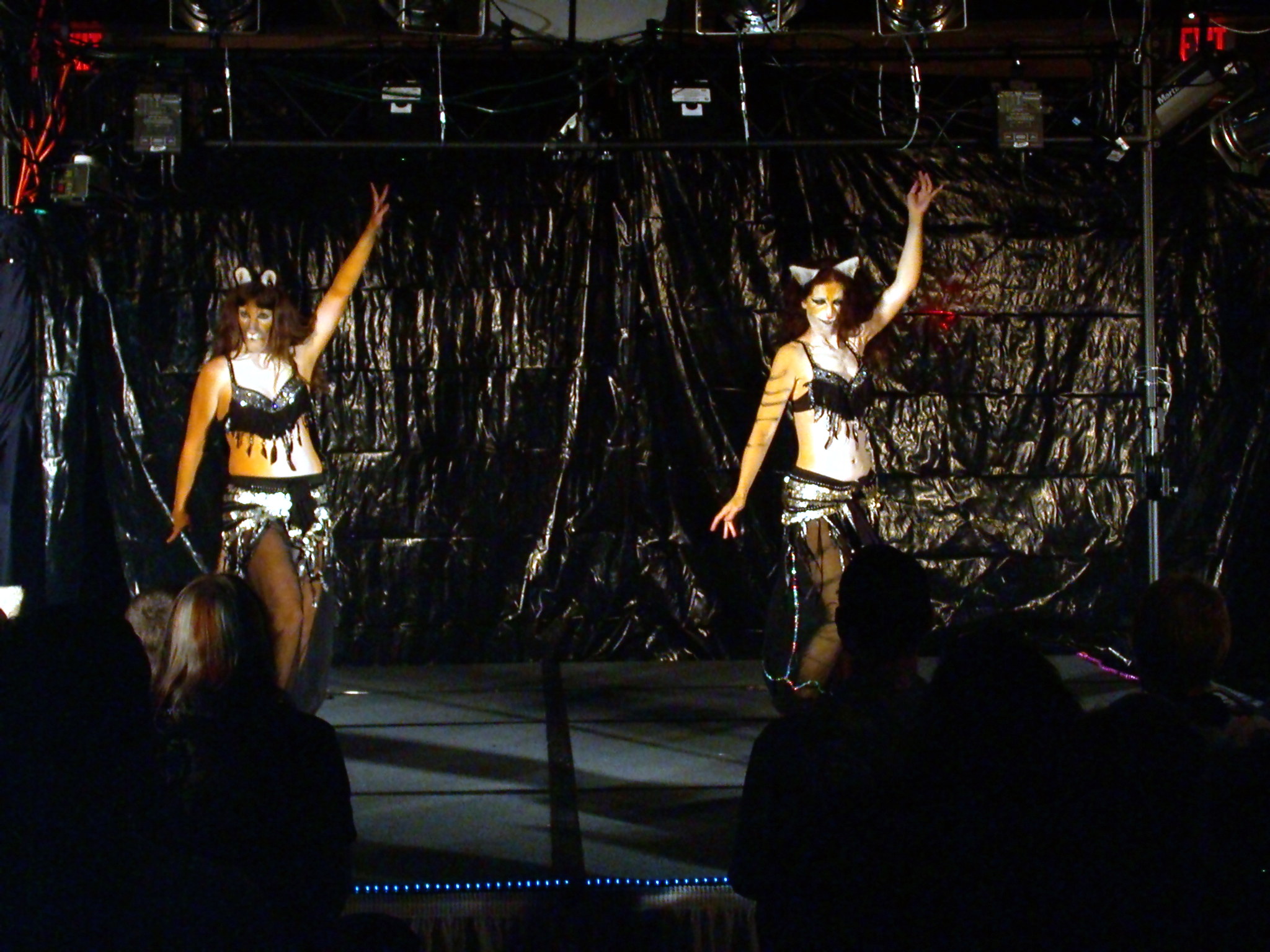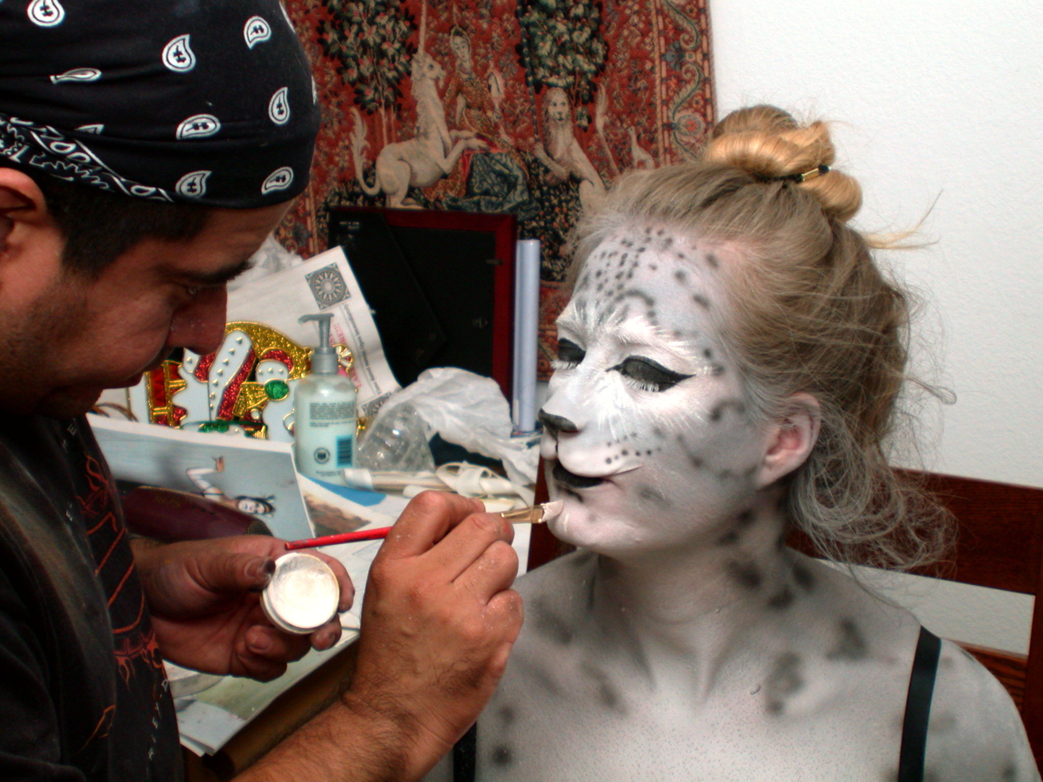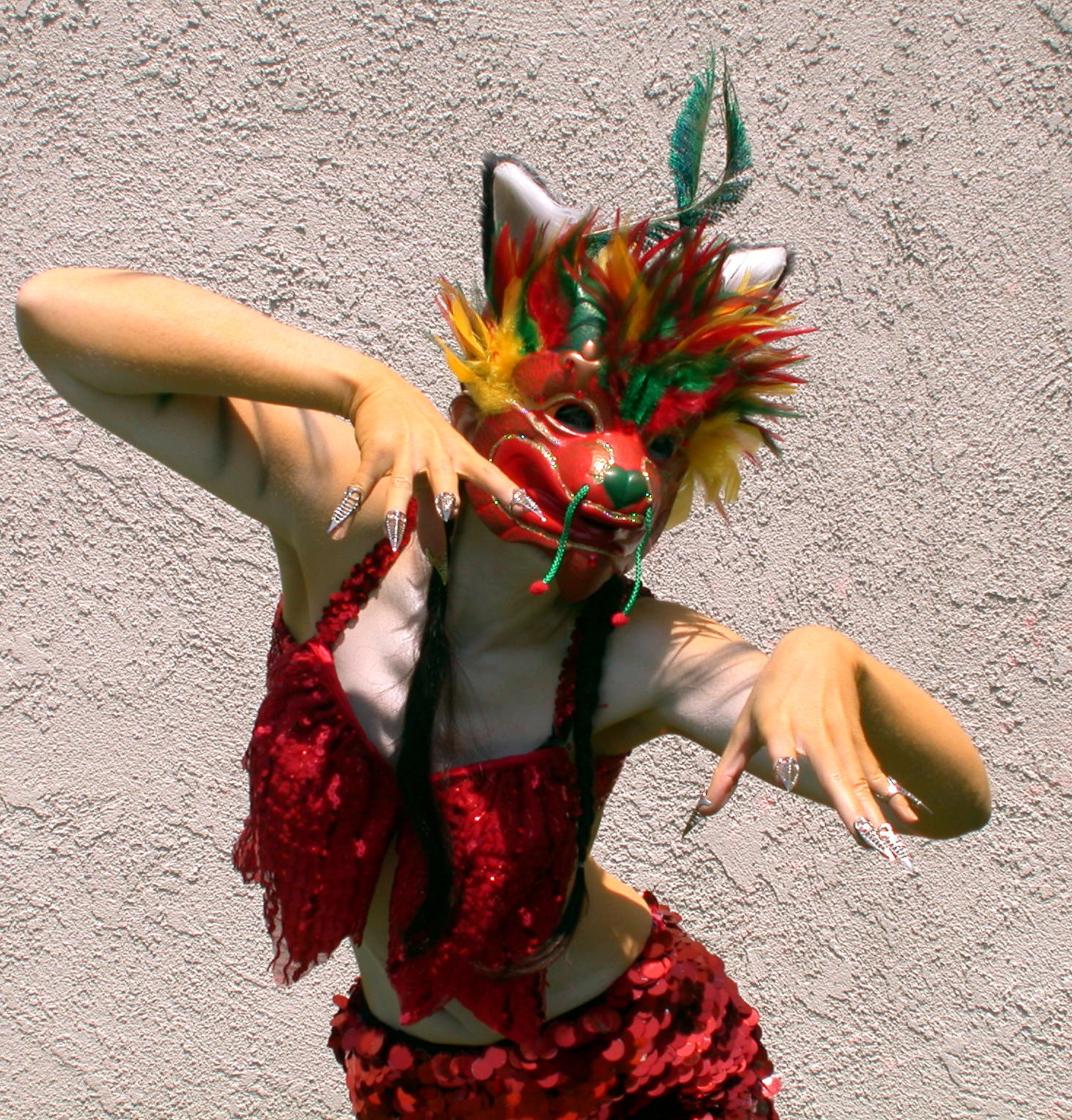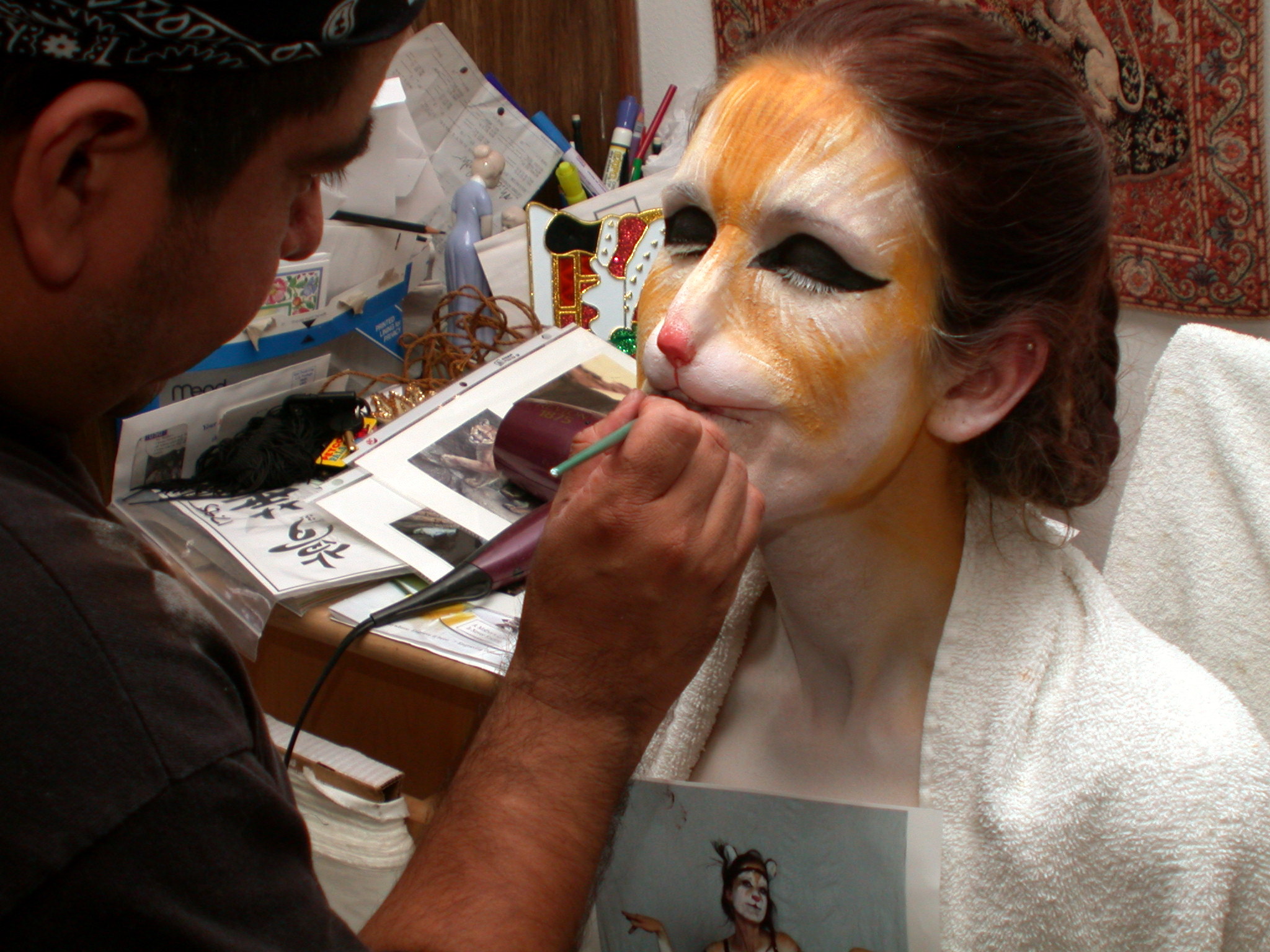 Stalking Cat body-painted us once, a long time ago, for a dance performance called Cabaret Fur Le Danse. (Cabaret Fur Le Danse Program.)  We were members of Myths and Legends Dance Troupe, which included many of the same members (including us) of Tribe Roman Morga.