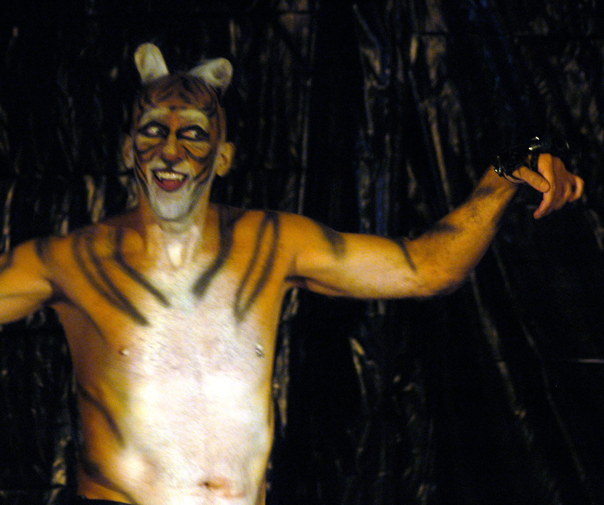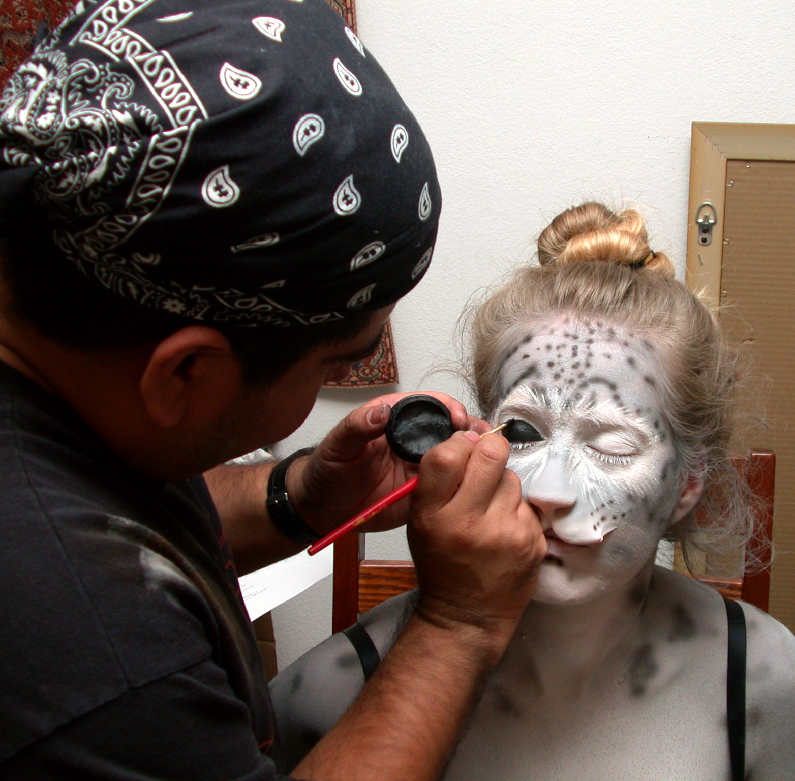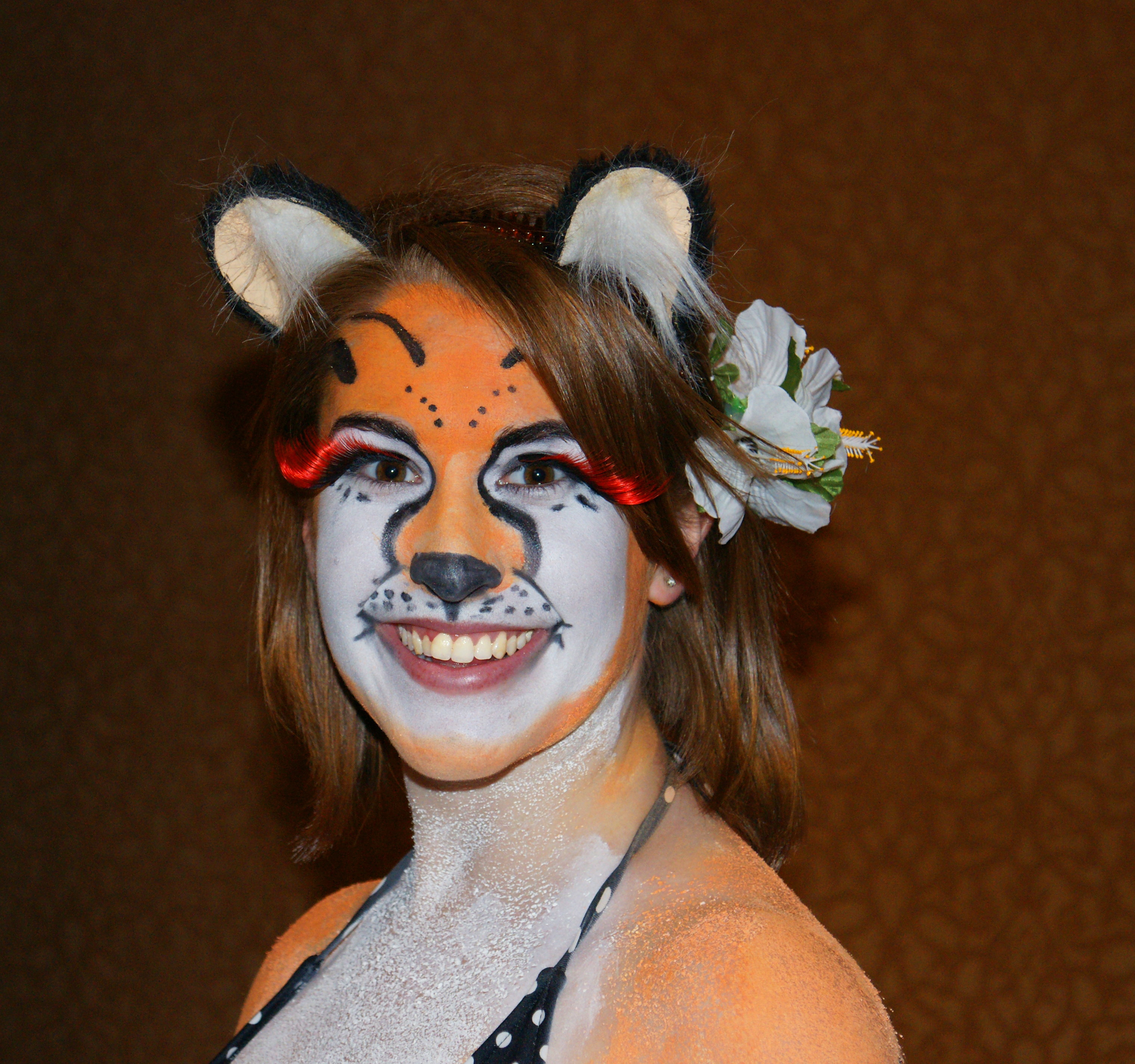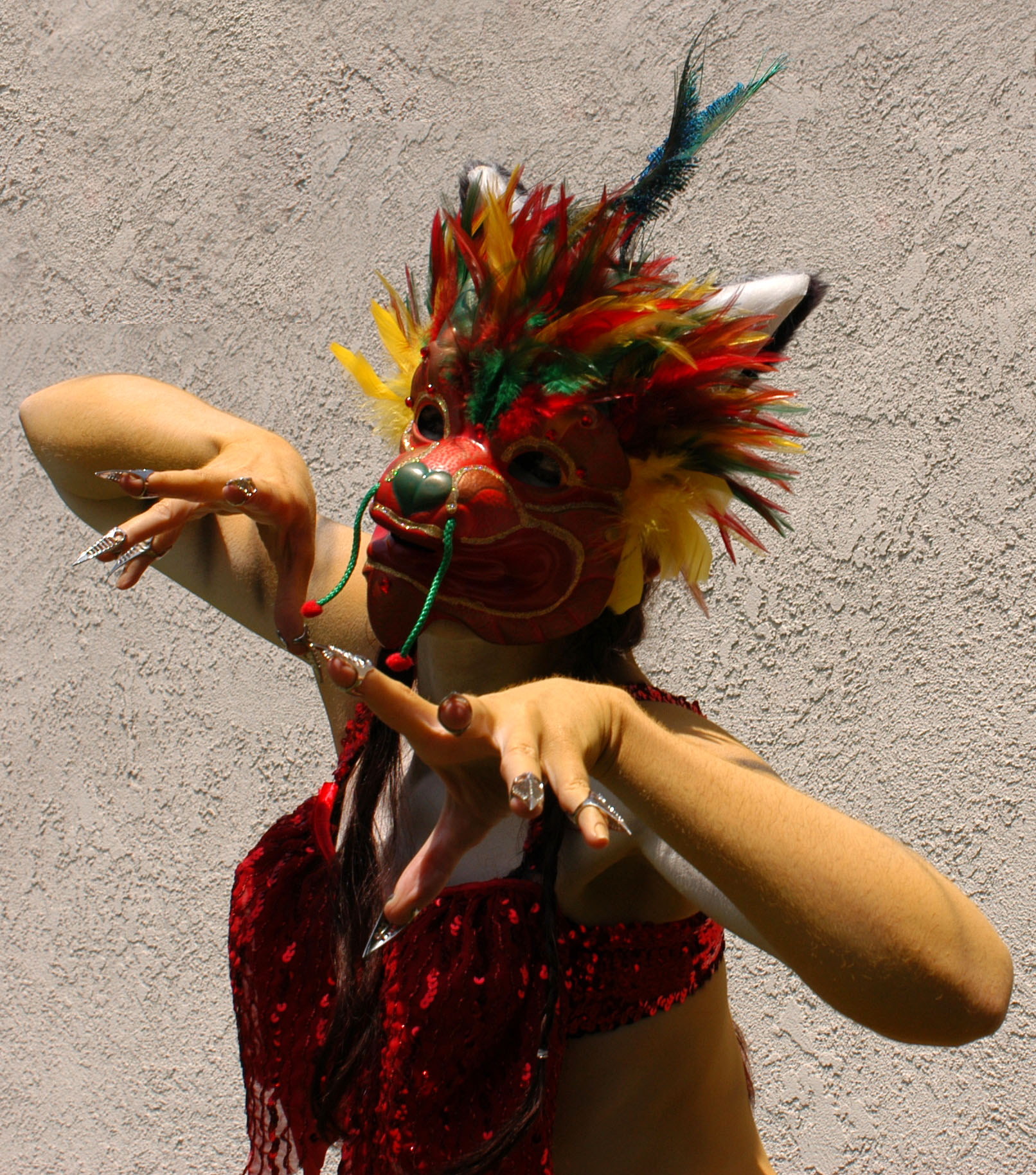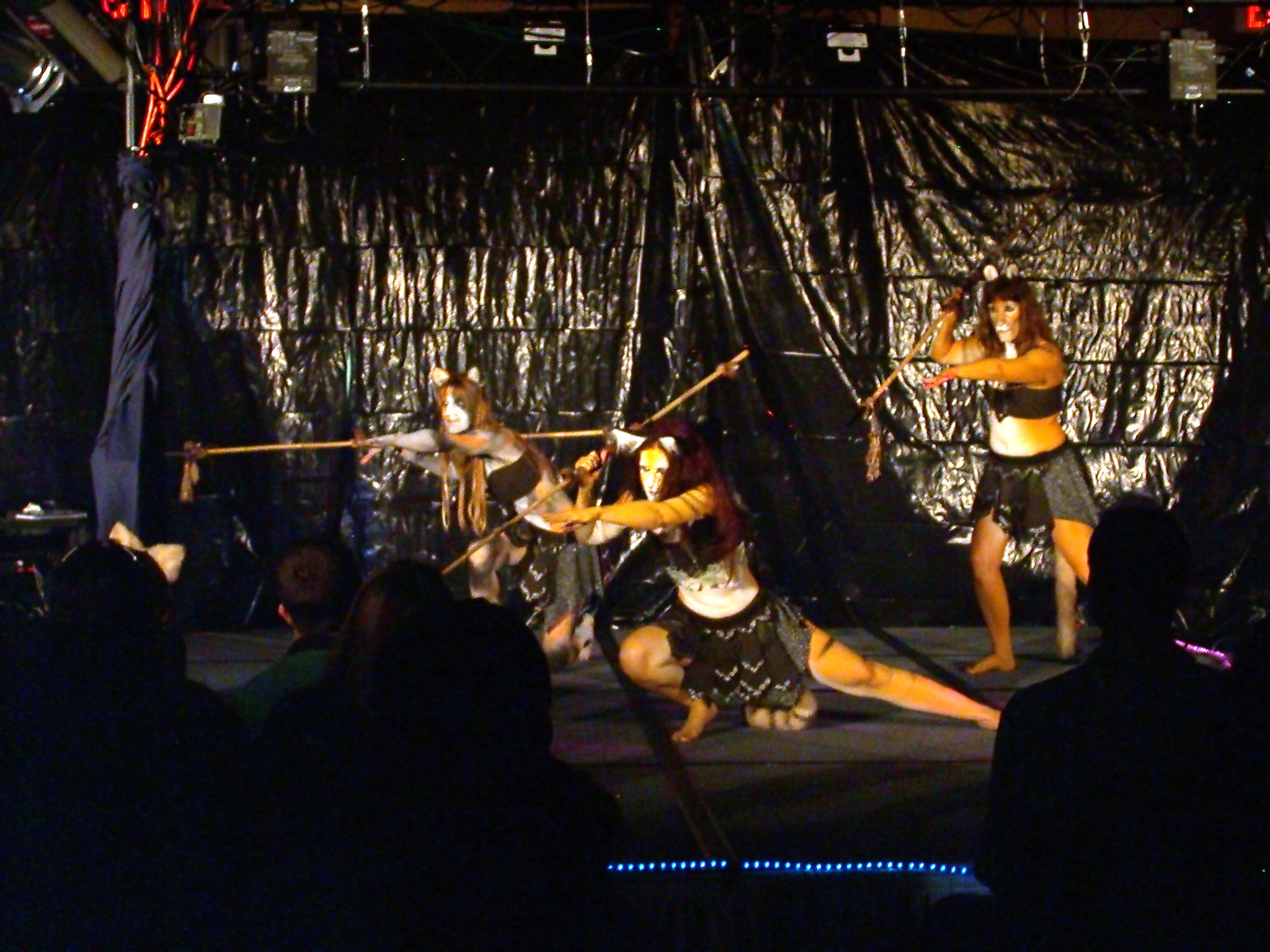 Stalking Cat body-painted us once, a long time ago, for a dance performance called Cabaret Fur Le Danse. (Cabaret Fur Le Danse Program.)  We were members of Myths and Legends Dance Troupe, which included many of the same members (including us) of Tribe Roman Morga.