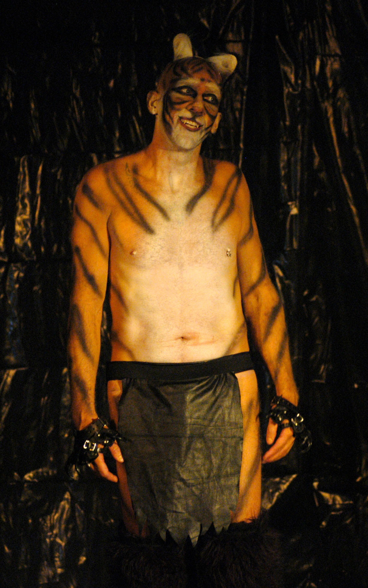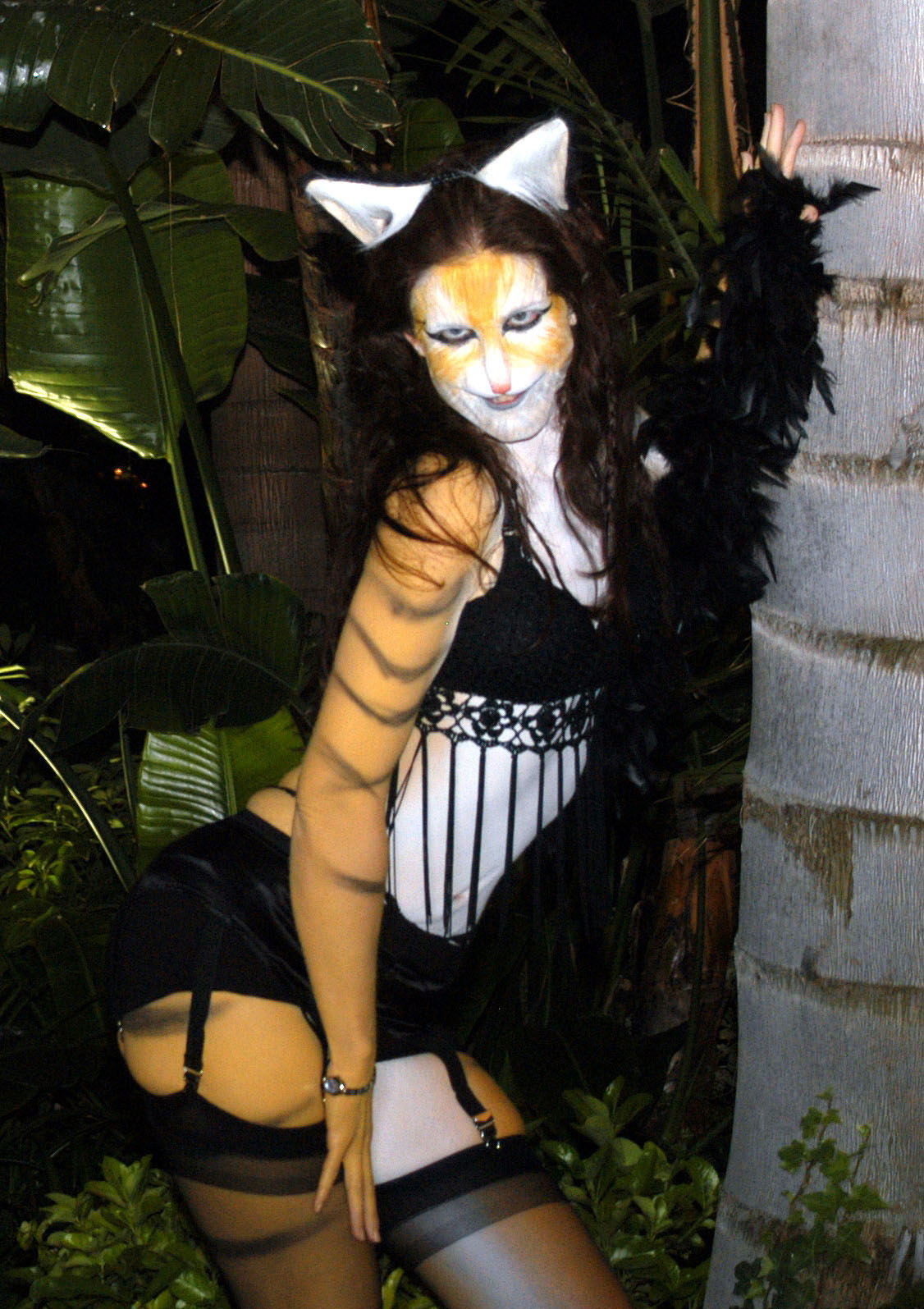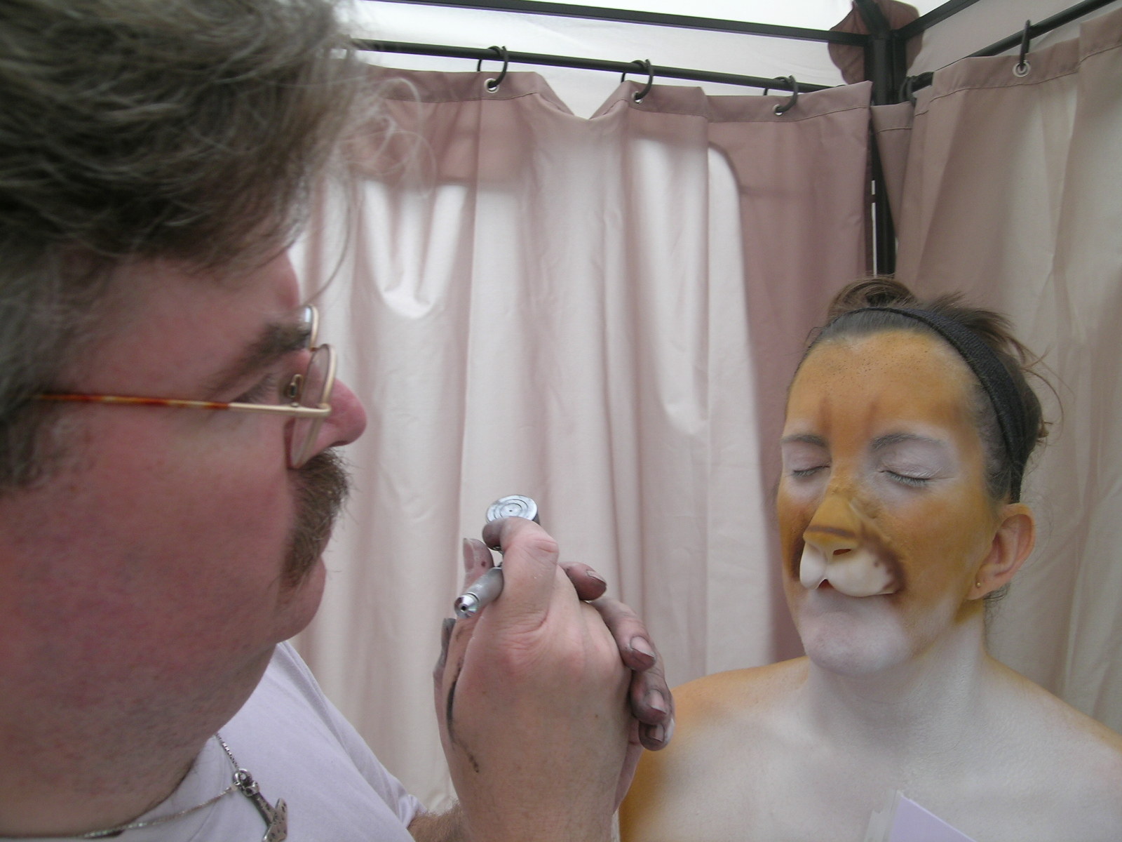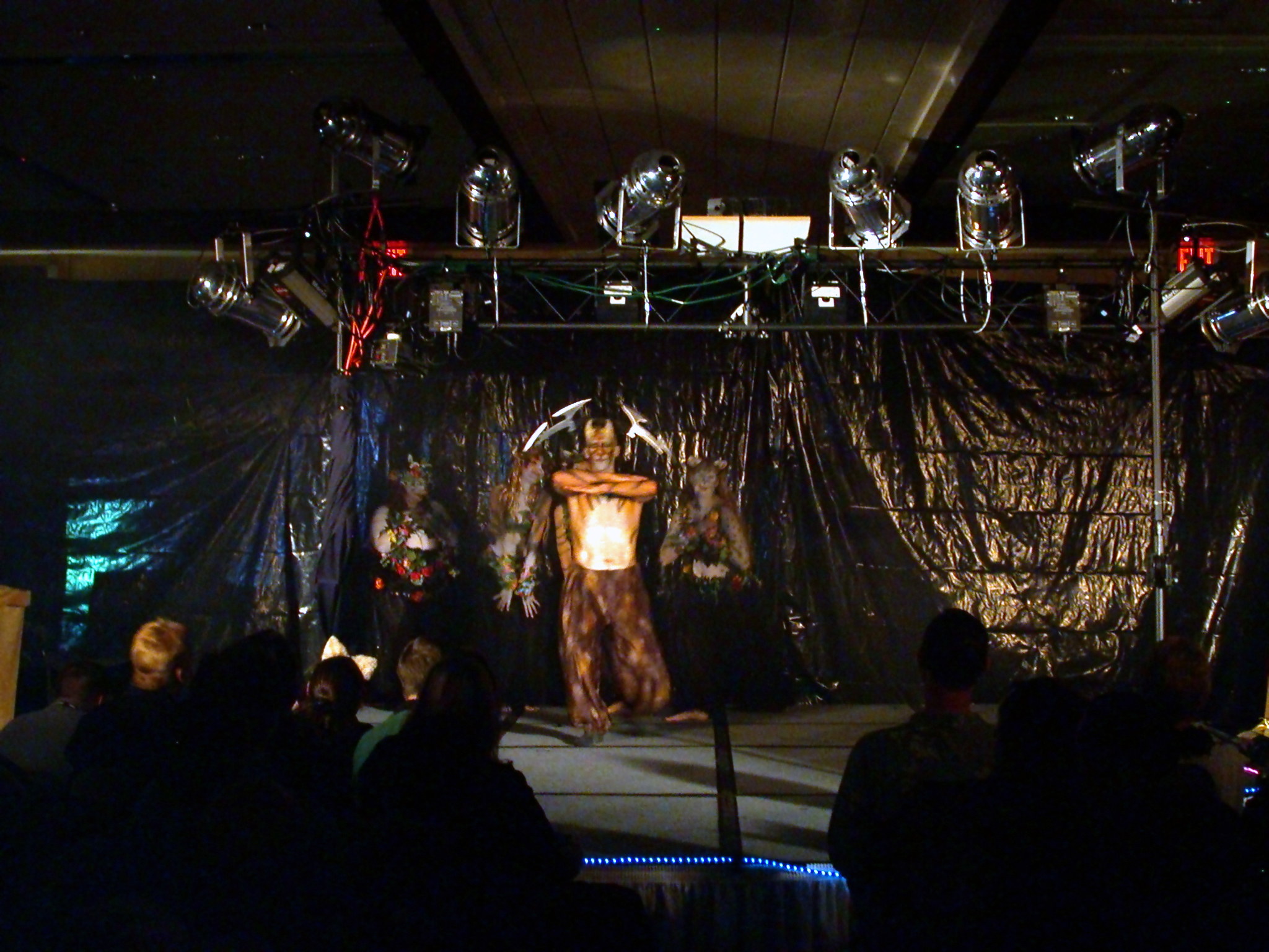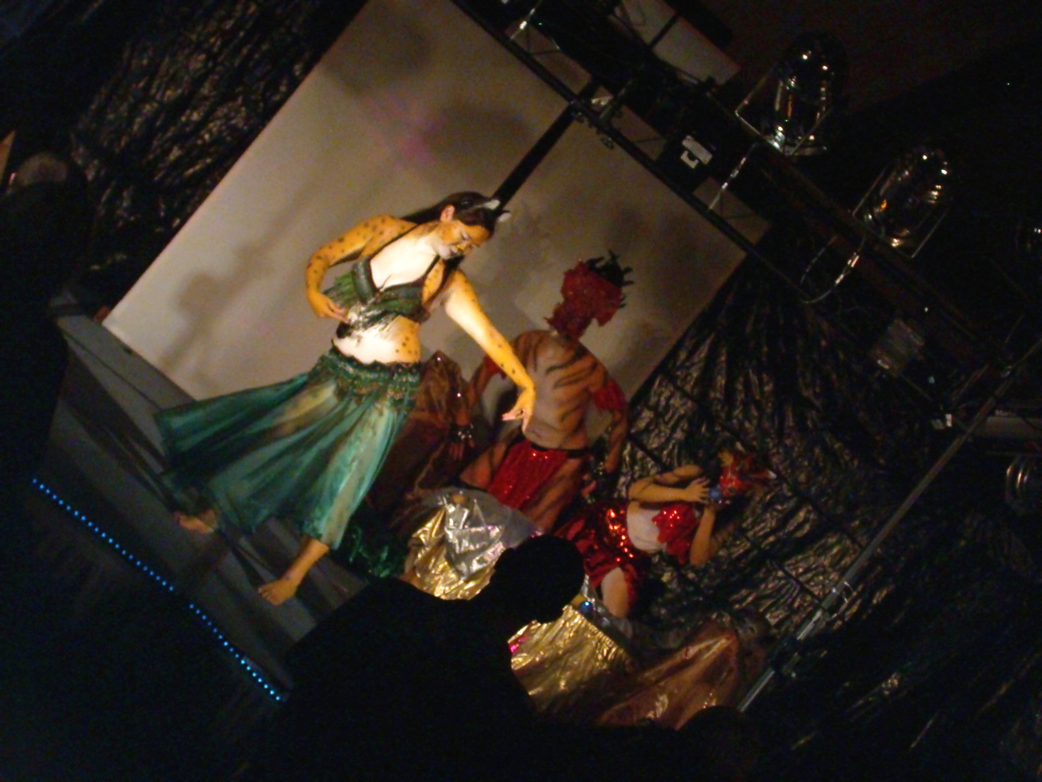 Stalking Cat body-painted us once, a long time ago, for a dance performance called Cabaret Fur Le Danse. (Cabaret Fur Le Danse Program.)  We were members of Myths and Legends Dance Troupe, which included many of the same members (including us) of Tribe Roman Morga.