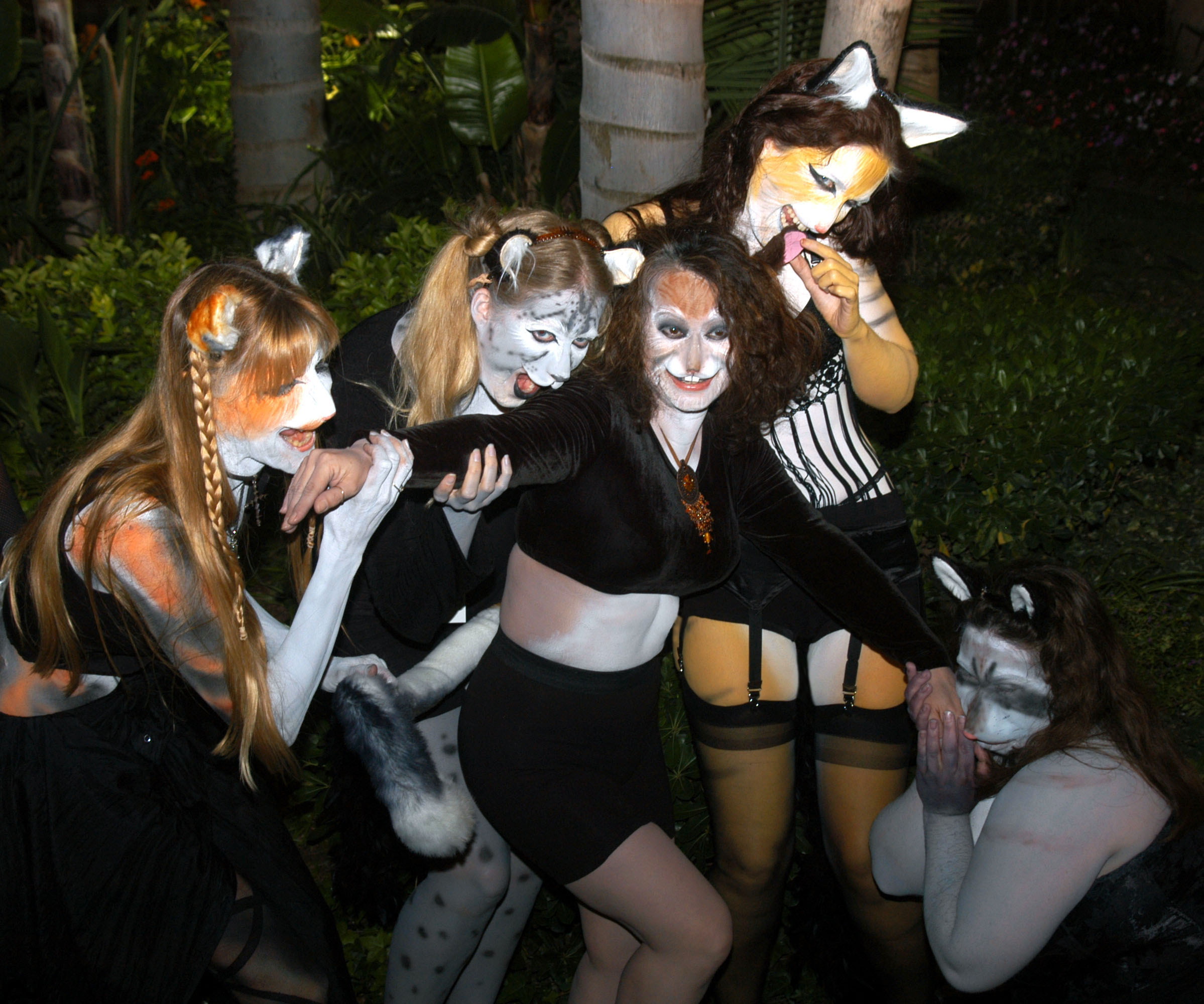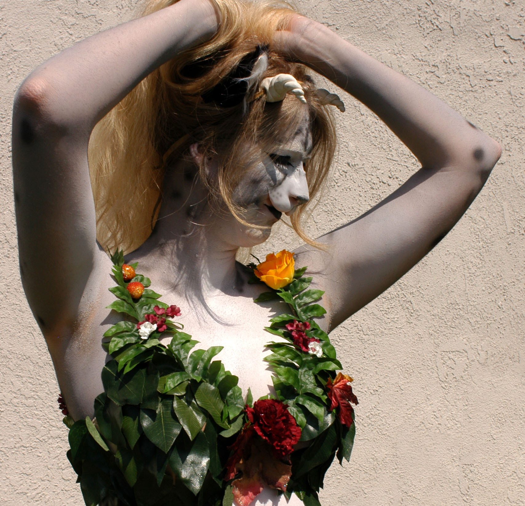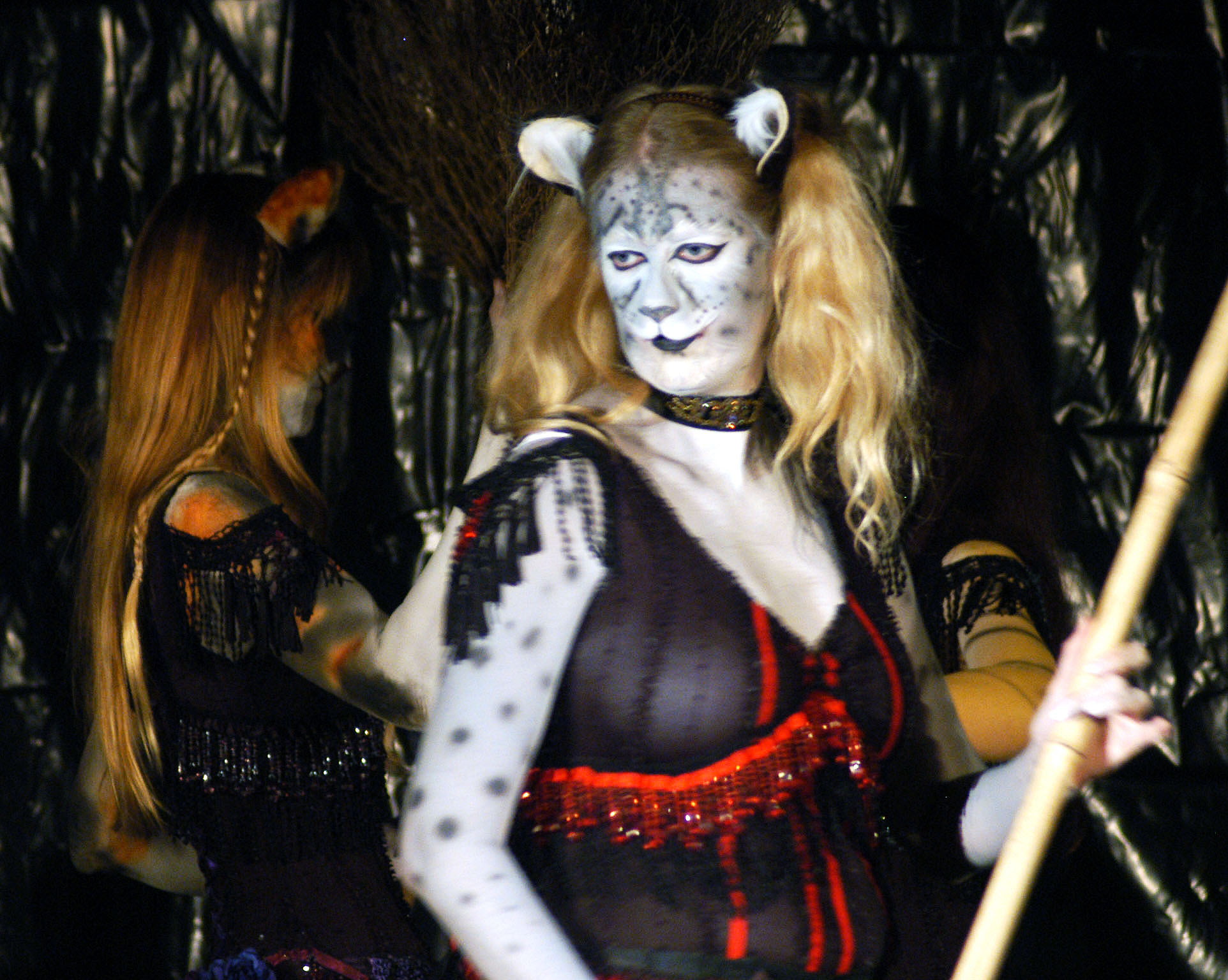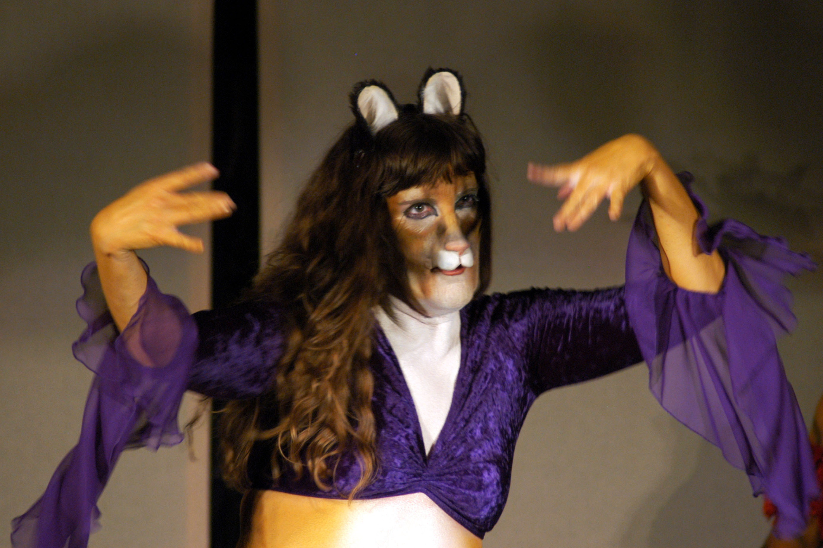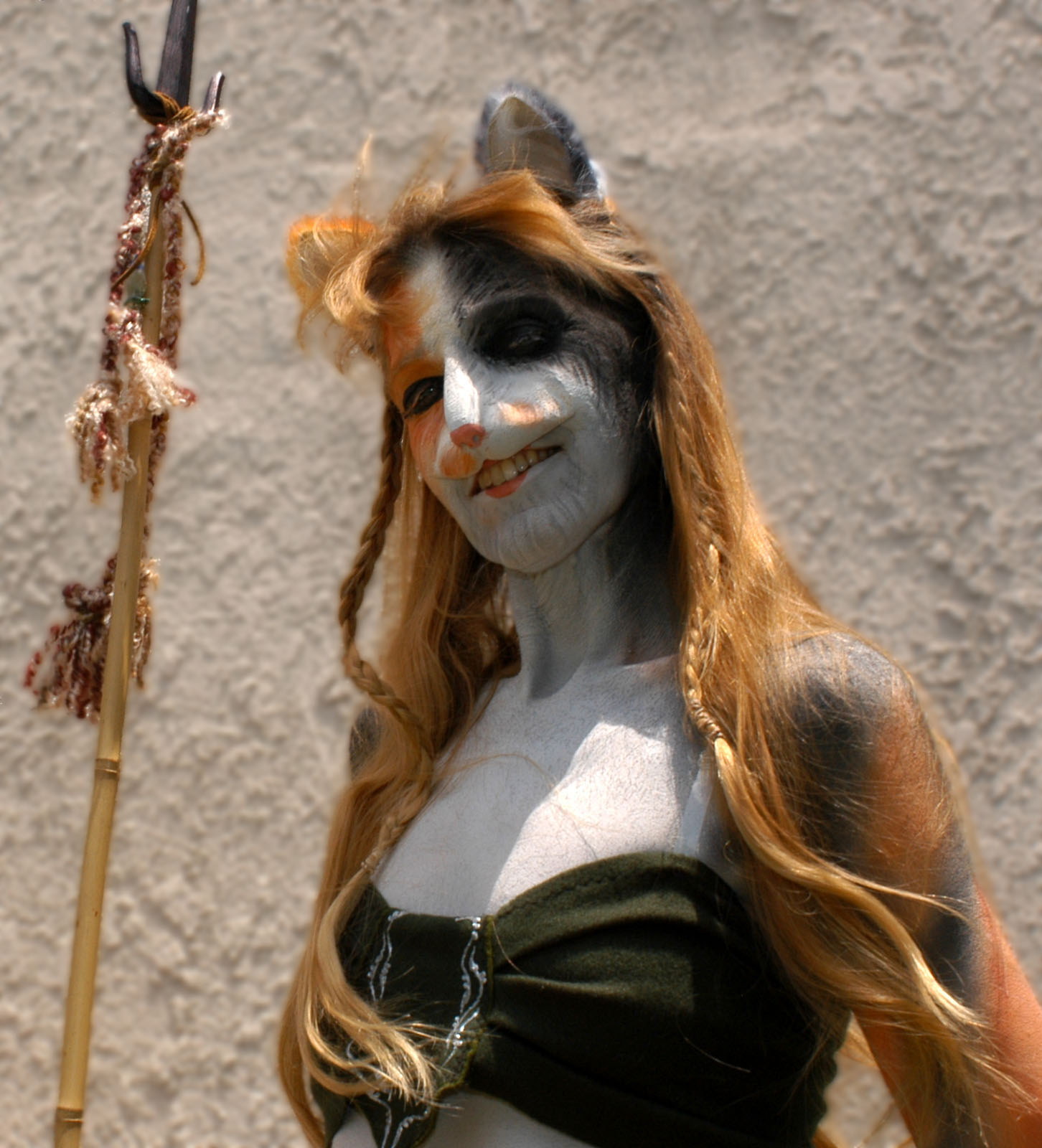 Stalking Cat body-painted us once, a long time ago, for a dance performance called Cabaret Fur Le Danse. (Cabaret Fur Le Danse Program.)  We were members of Myths and Legends Dance Troupe, which included many of the same members (including us) of Tribe Roman Morga.