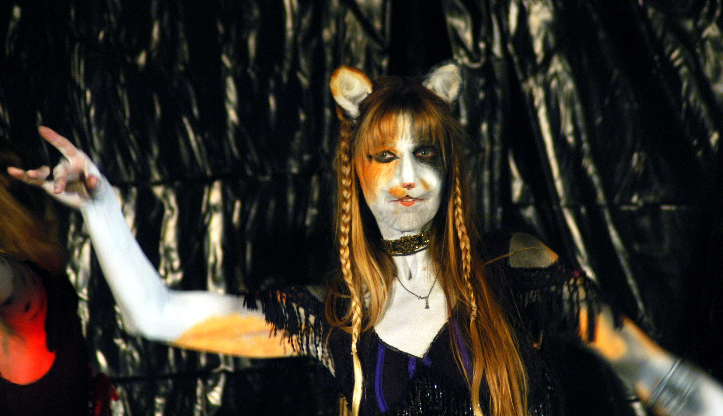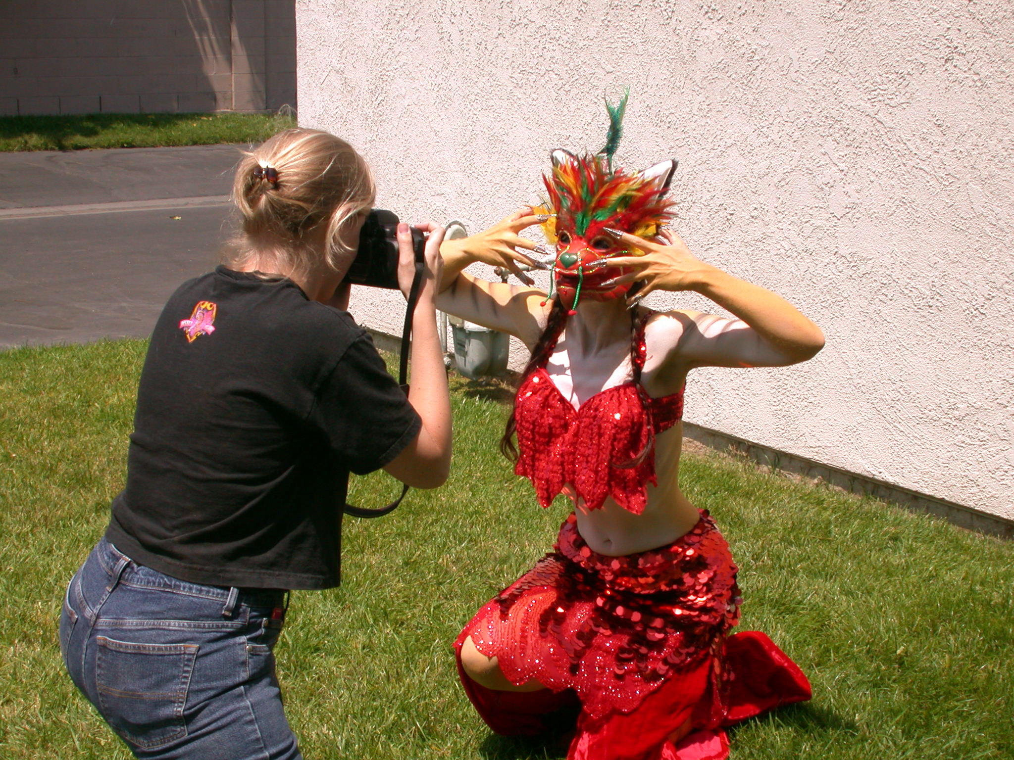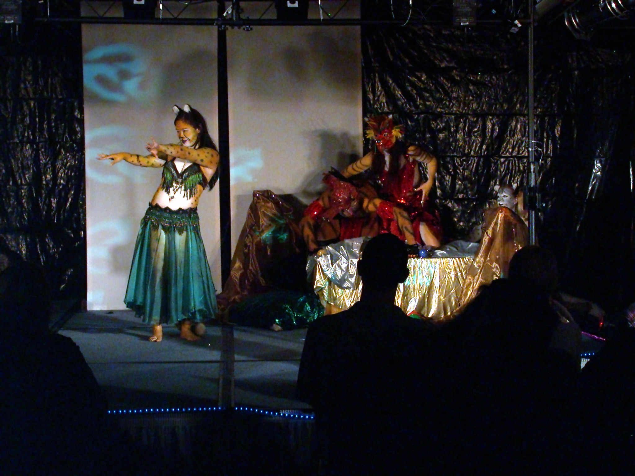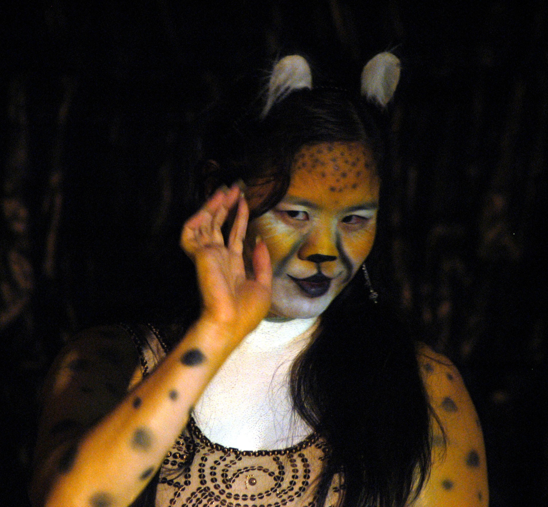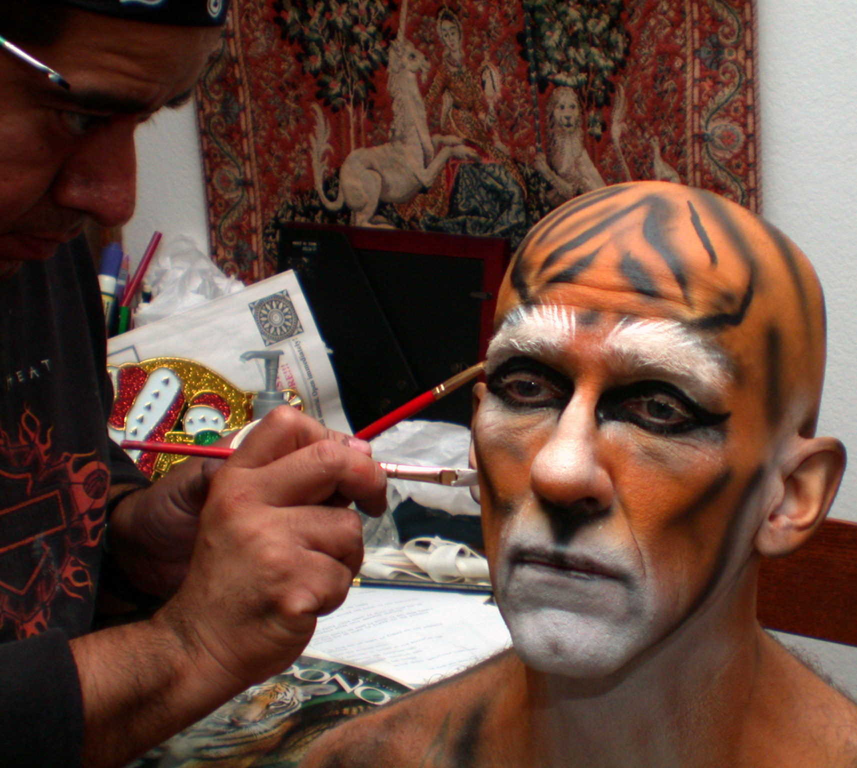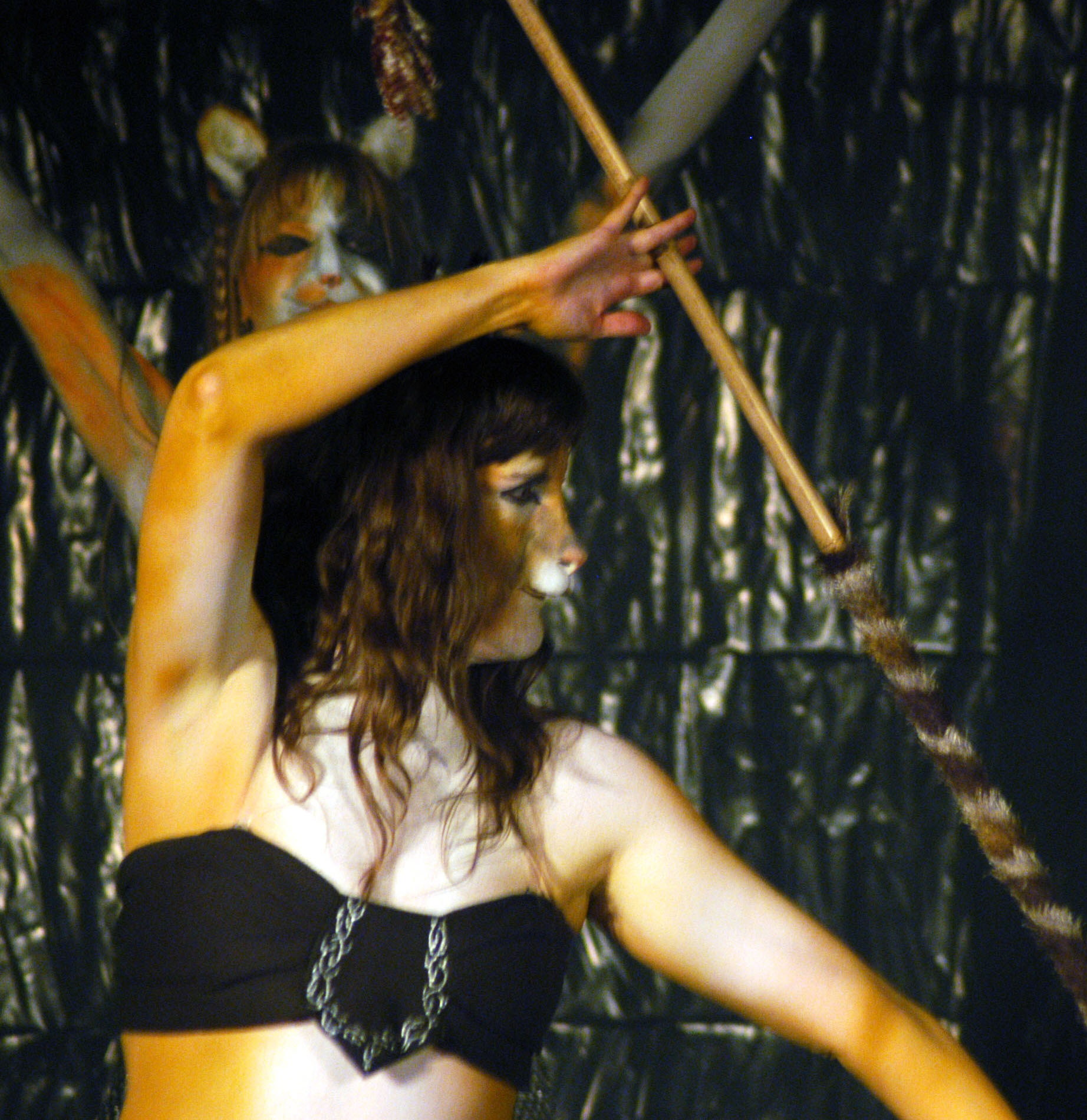Stalking Cat body-painted us once, a long time ago, for a dance performance called Cabaret Fur Le Danse. (Cabaret Fur Le Danse Program.)  We were members of Myths and Legends Dance Troupe, which included many of the same members (including us) of Tribe Roman Morga.