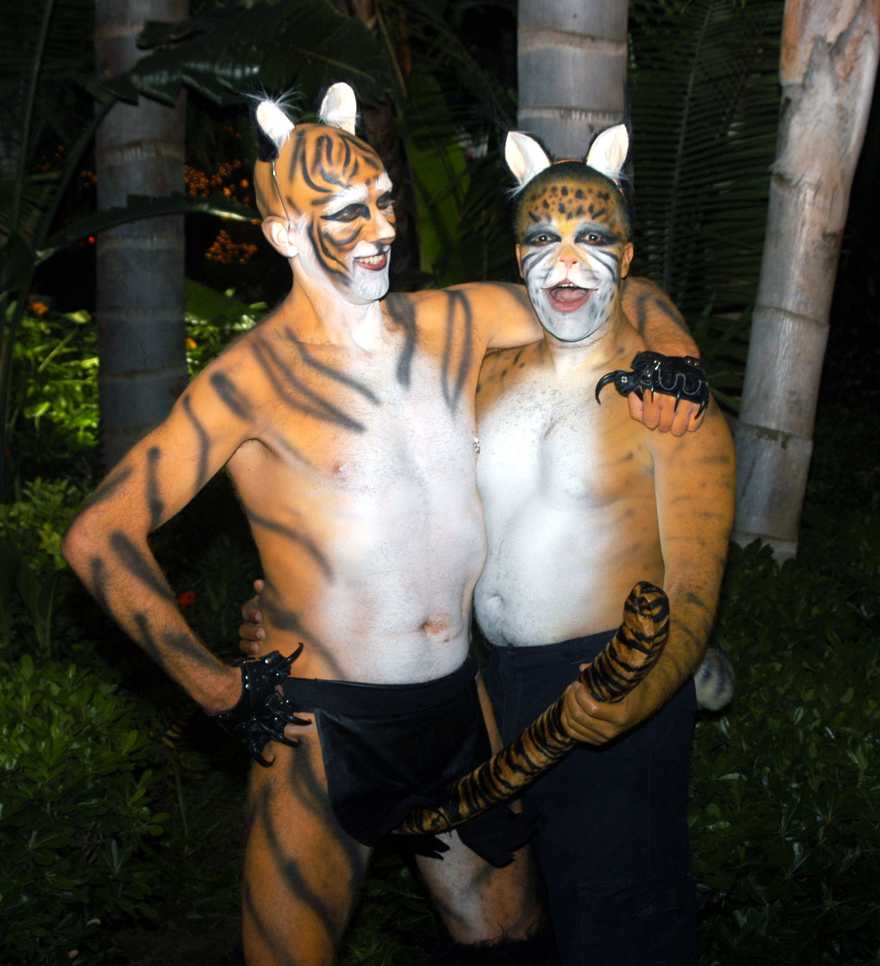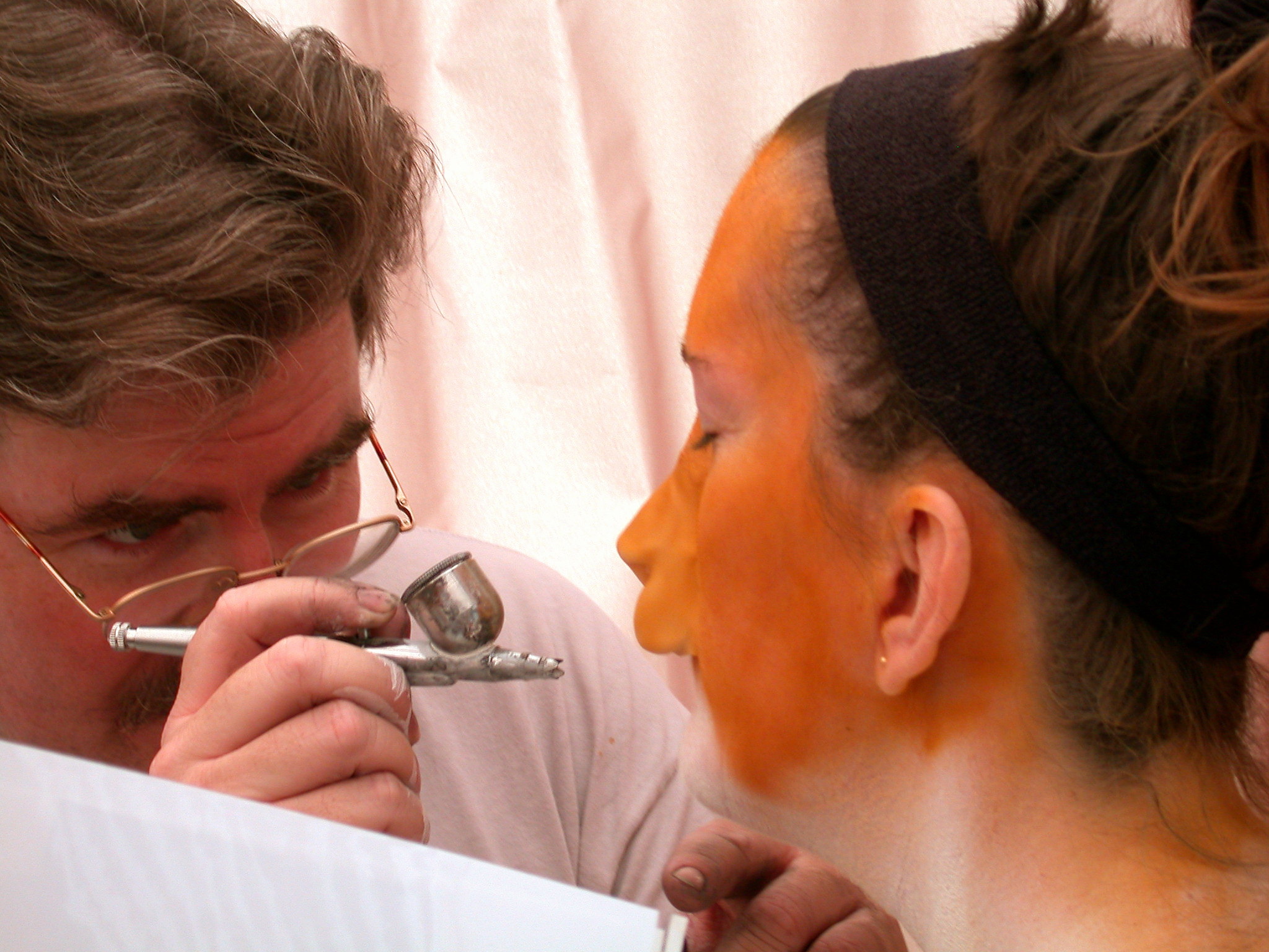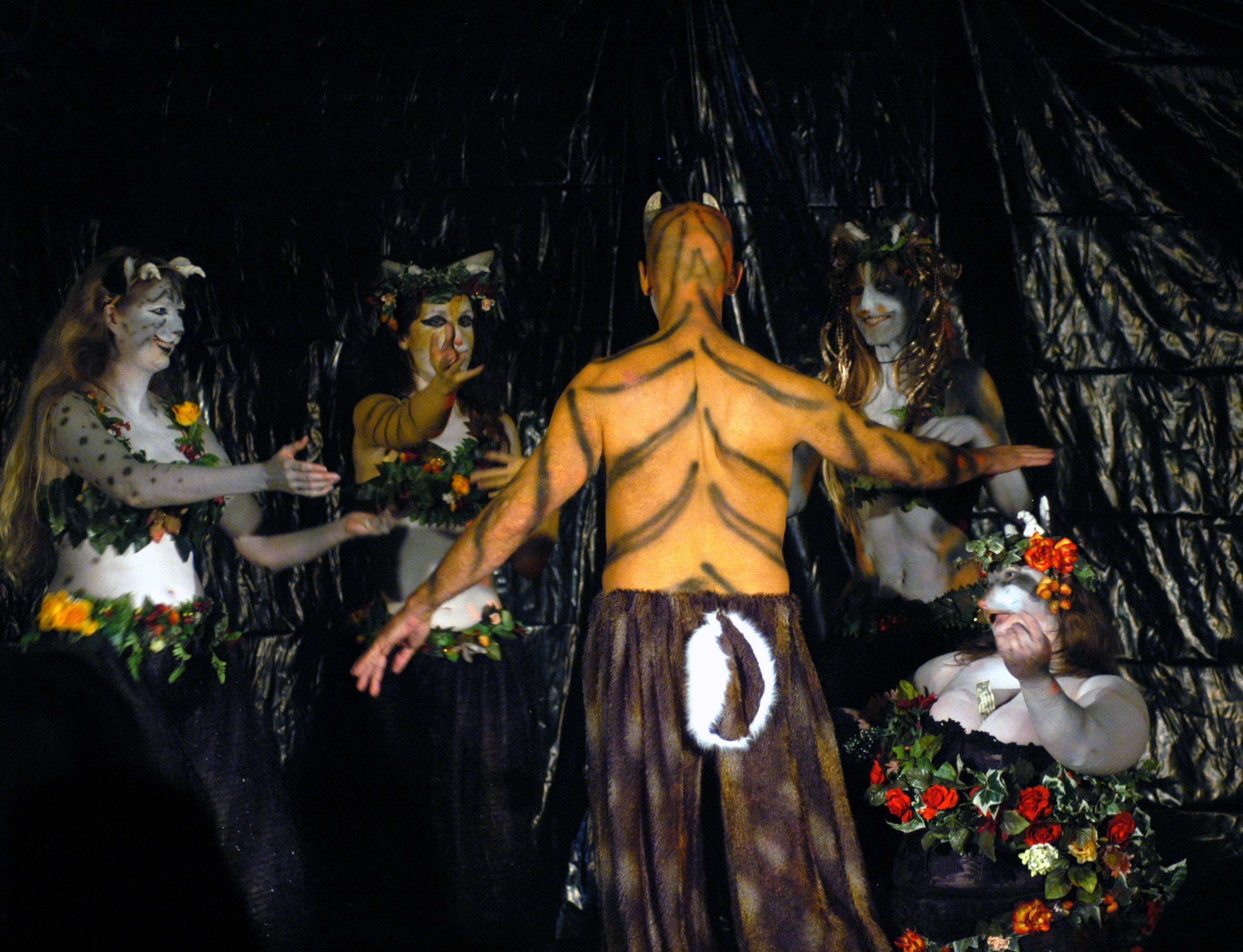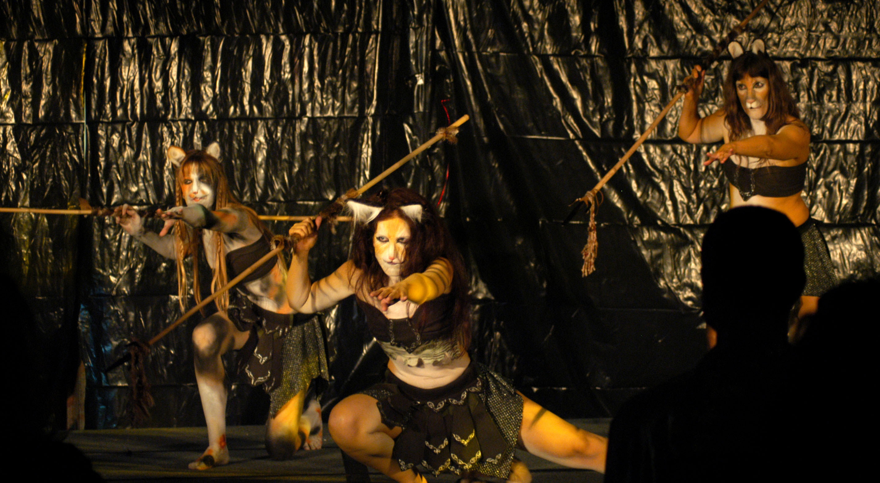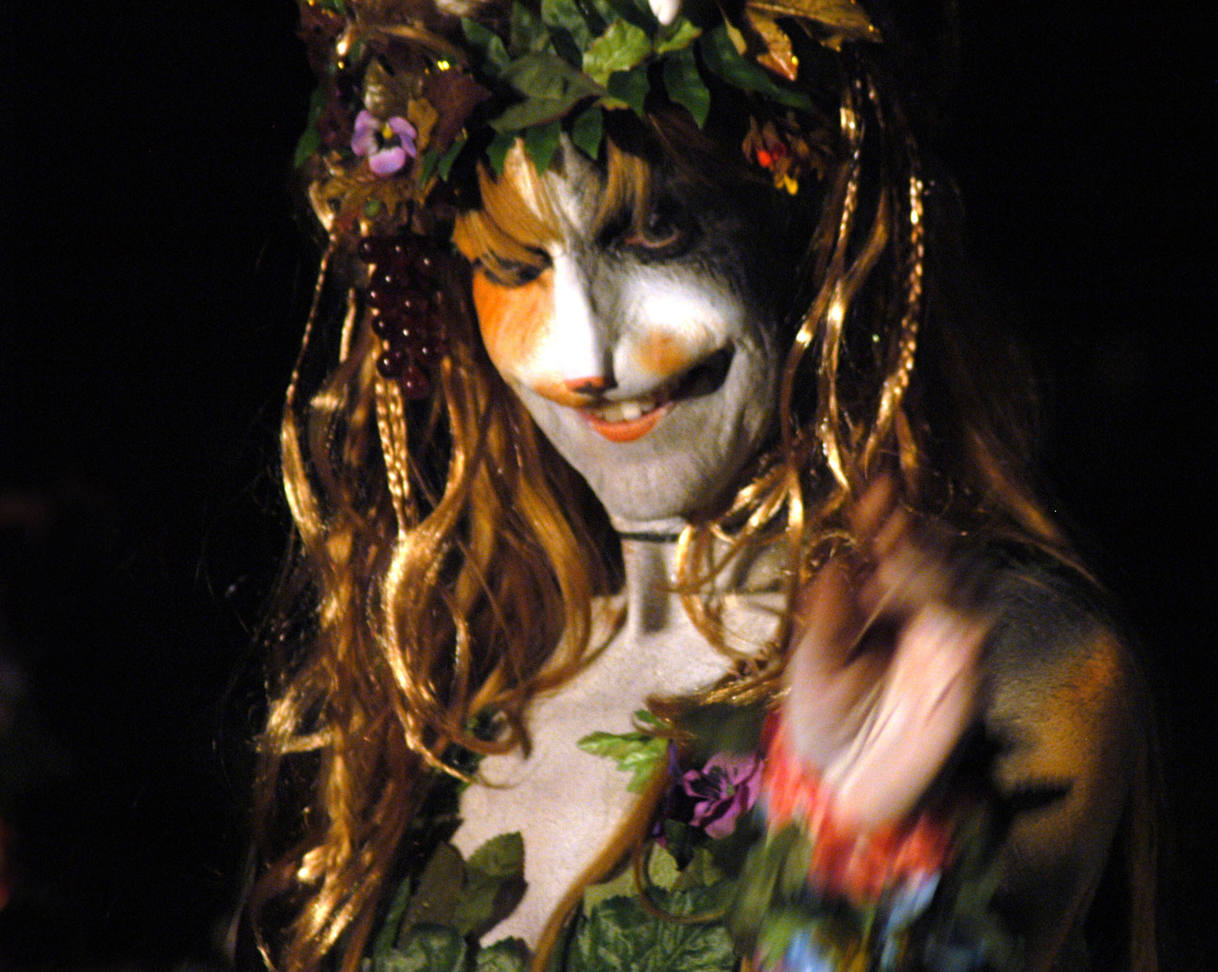 Stalking Cat body-painted us once, a long time ago, for a dance performance called Cabaret Fur Le Danse. (Cabaret Fur Le Danse Program.)  We were members of Myths and Legends Dance Troupe, which included many of the same members (including us) of Tribe Roman Morga.