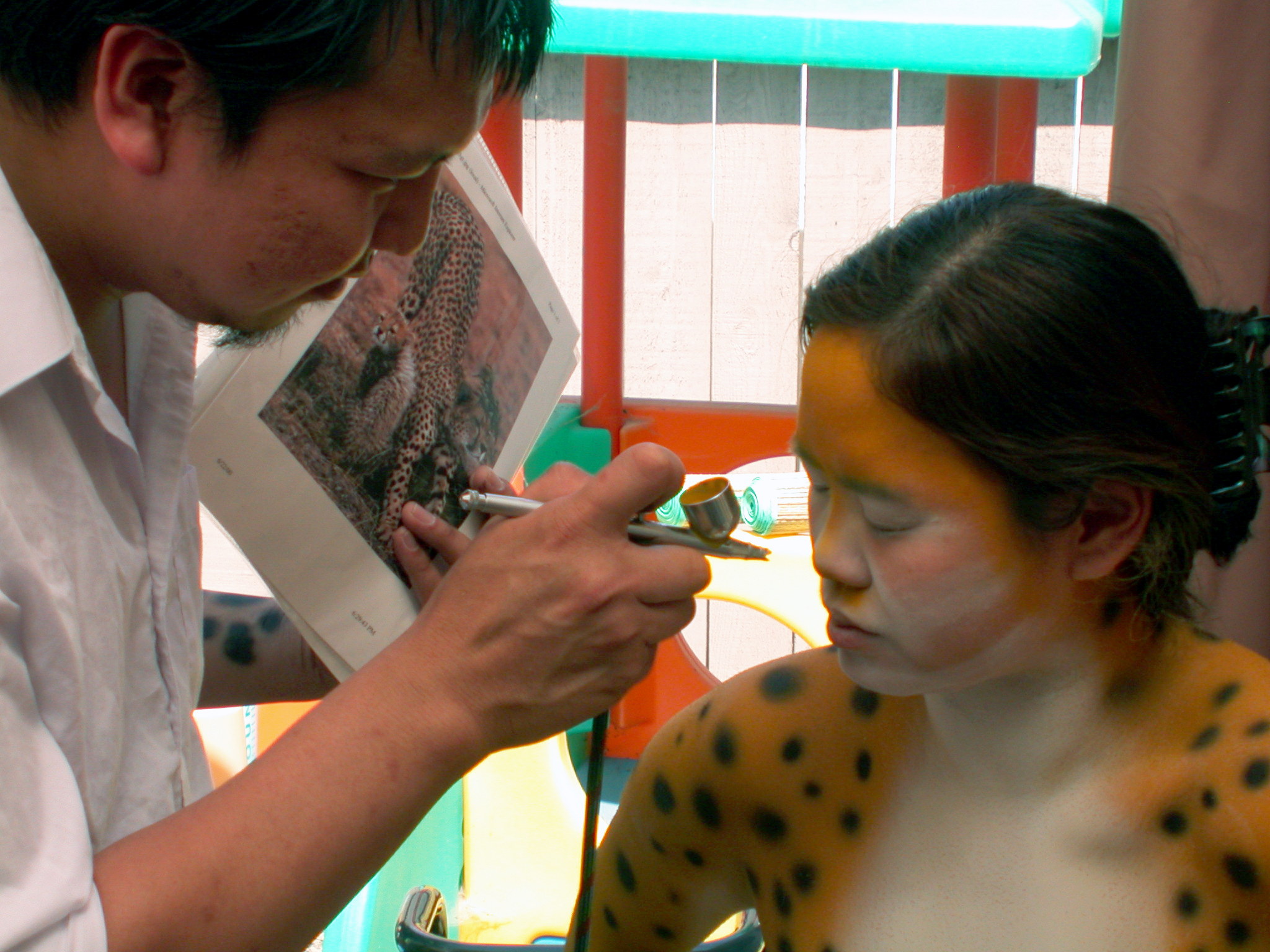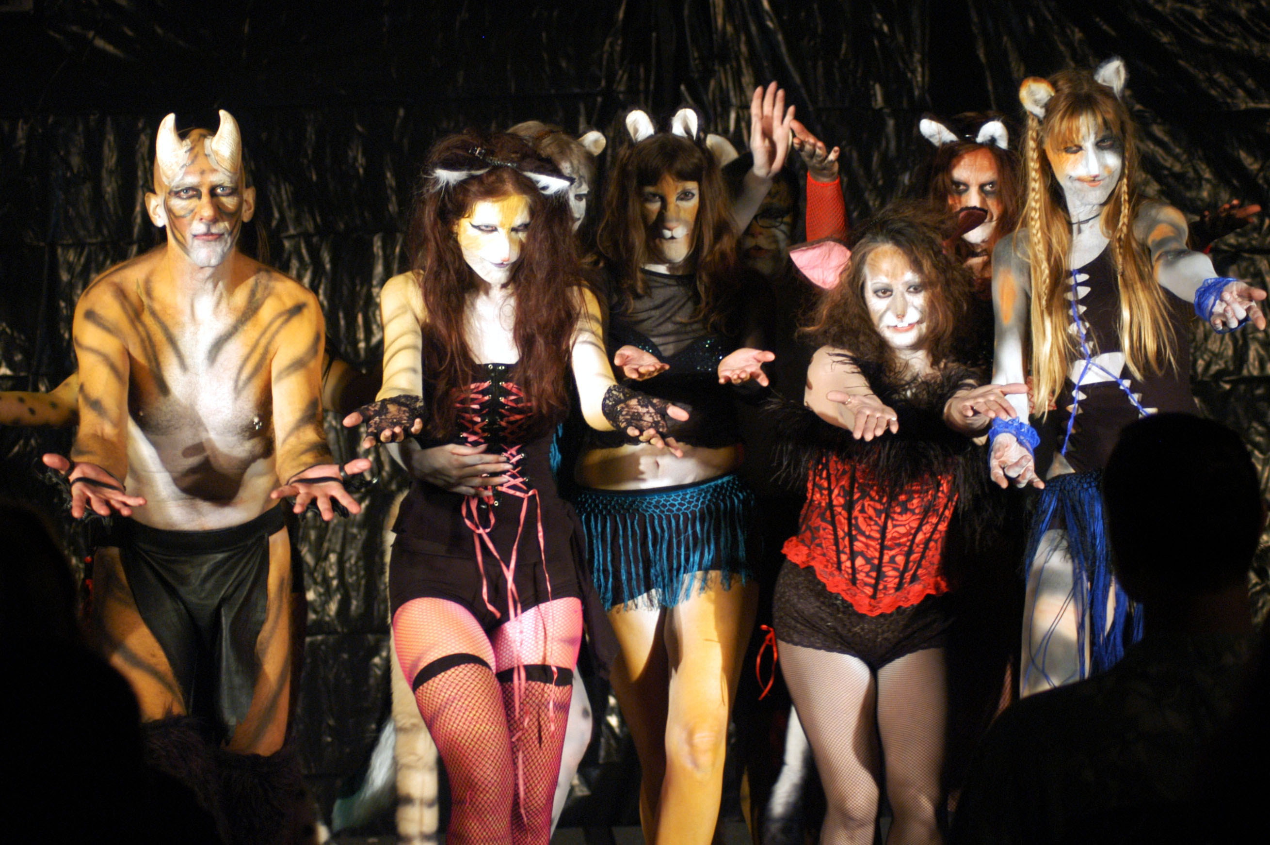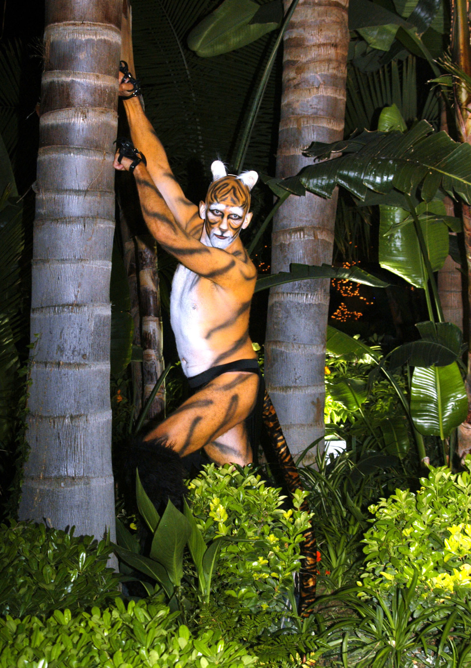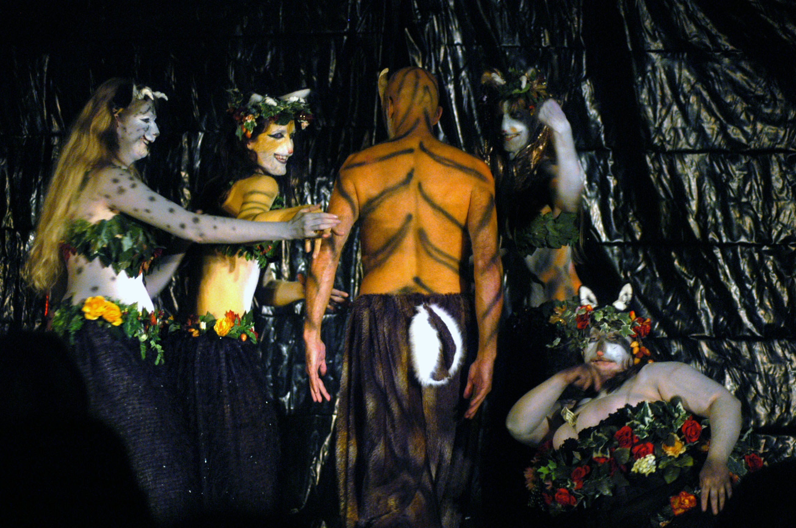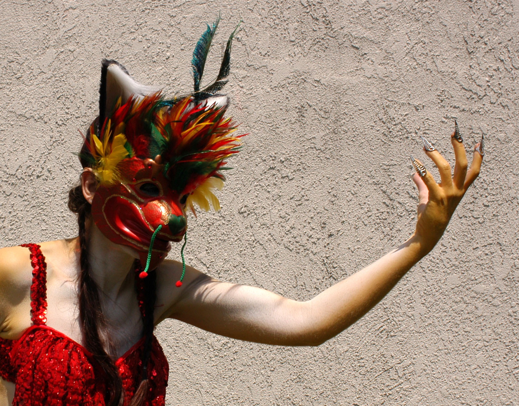 Stalking Cat body-painted us once, a long time ago, for a dance performance called Cabaret Fur Le Danse. (Cabaret Fur Le Danse Program.)  We were members of Myths and Legends Dance Troupe, which included many of the same members (including us) of Tribe Roman Morga.