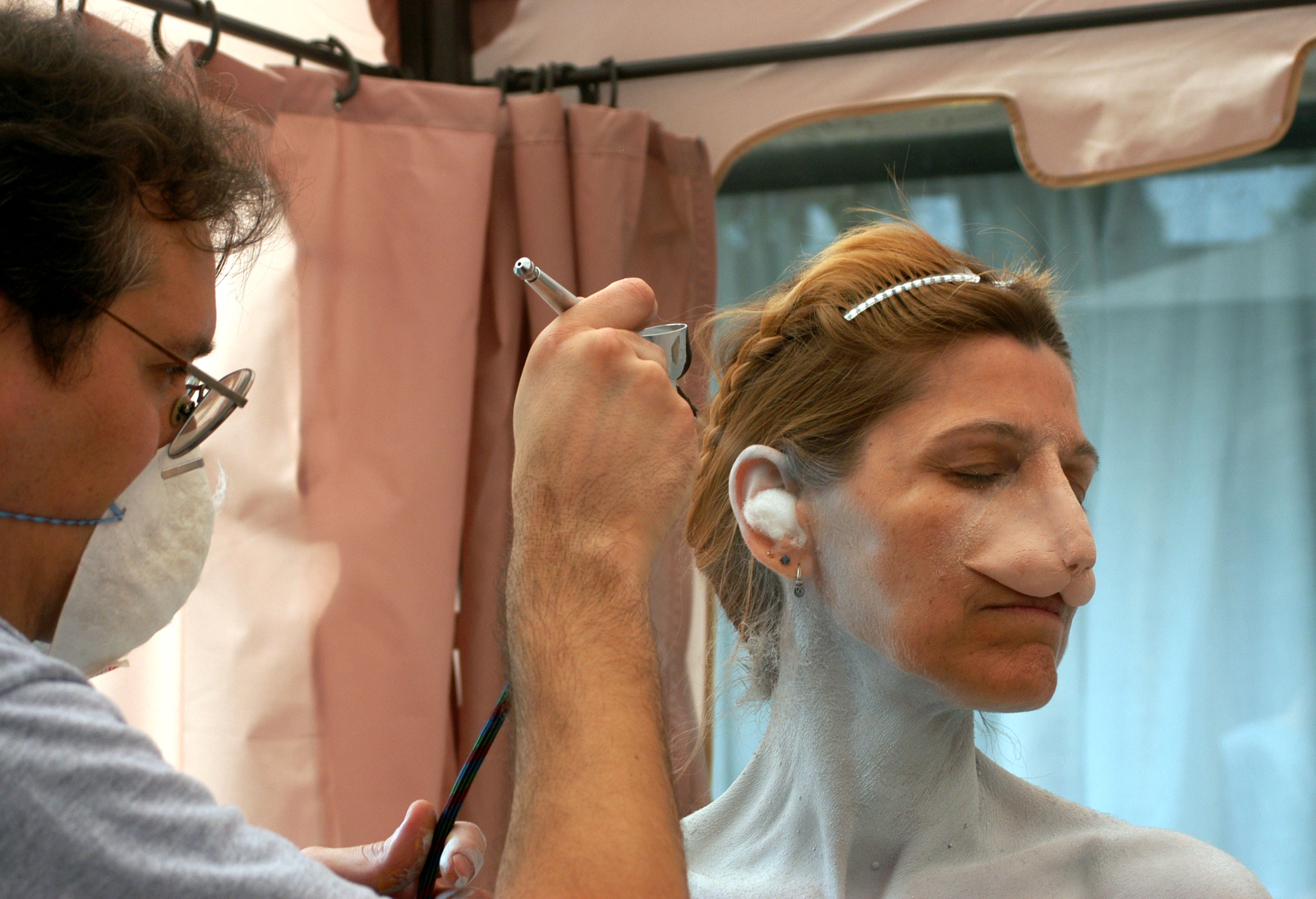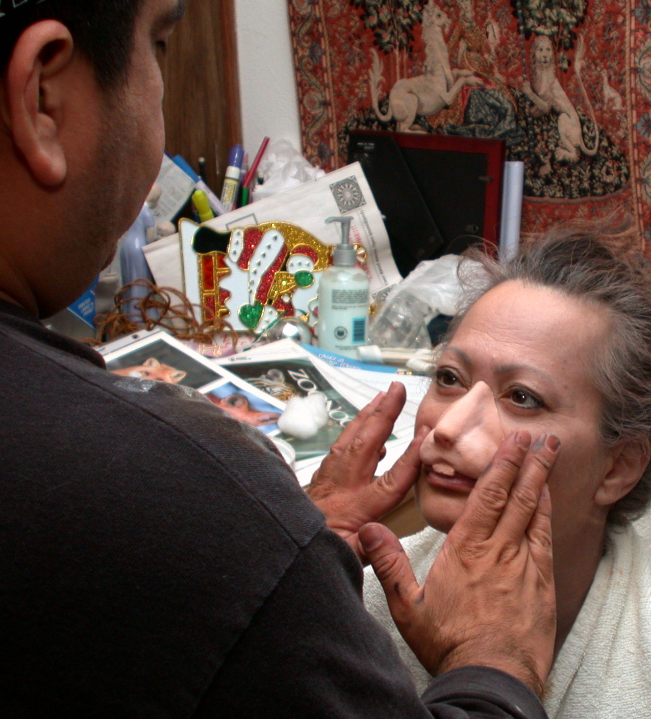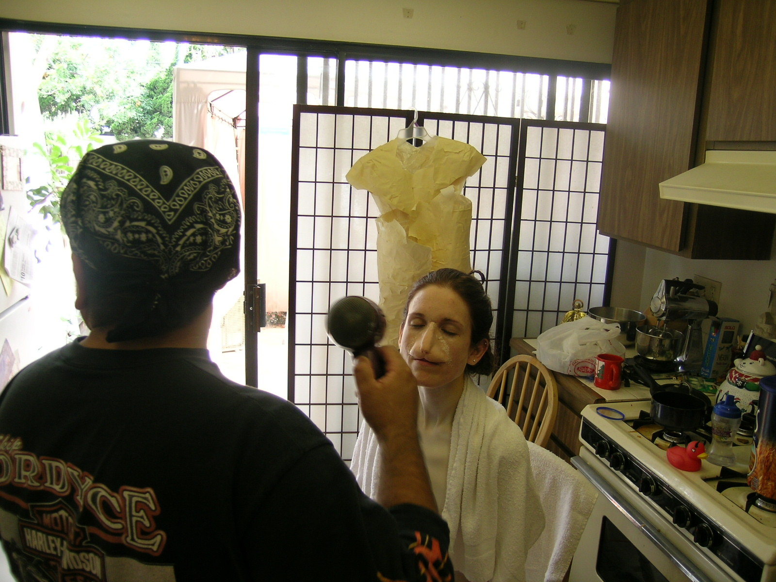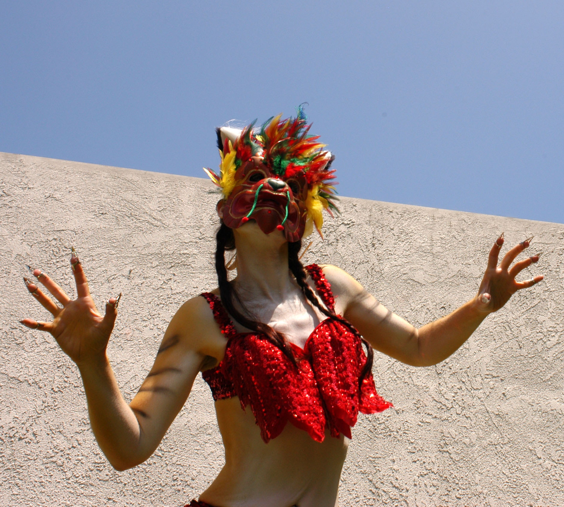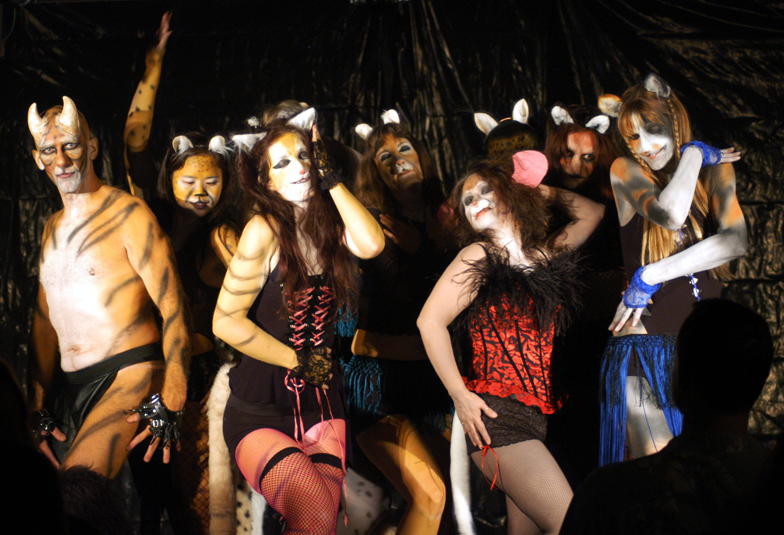 Stalking Cat body-painted us once, a long time ago, for a dance performance called Cabaret Fur Le Danse. (Cabaret Fur Le Danse Program.)  We were members of Myths and Legends Dance Troupe, which included many of the same members (including us) of Tribe Roman Morga.