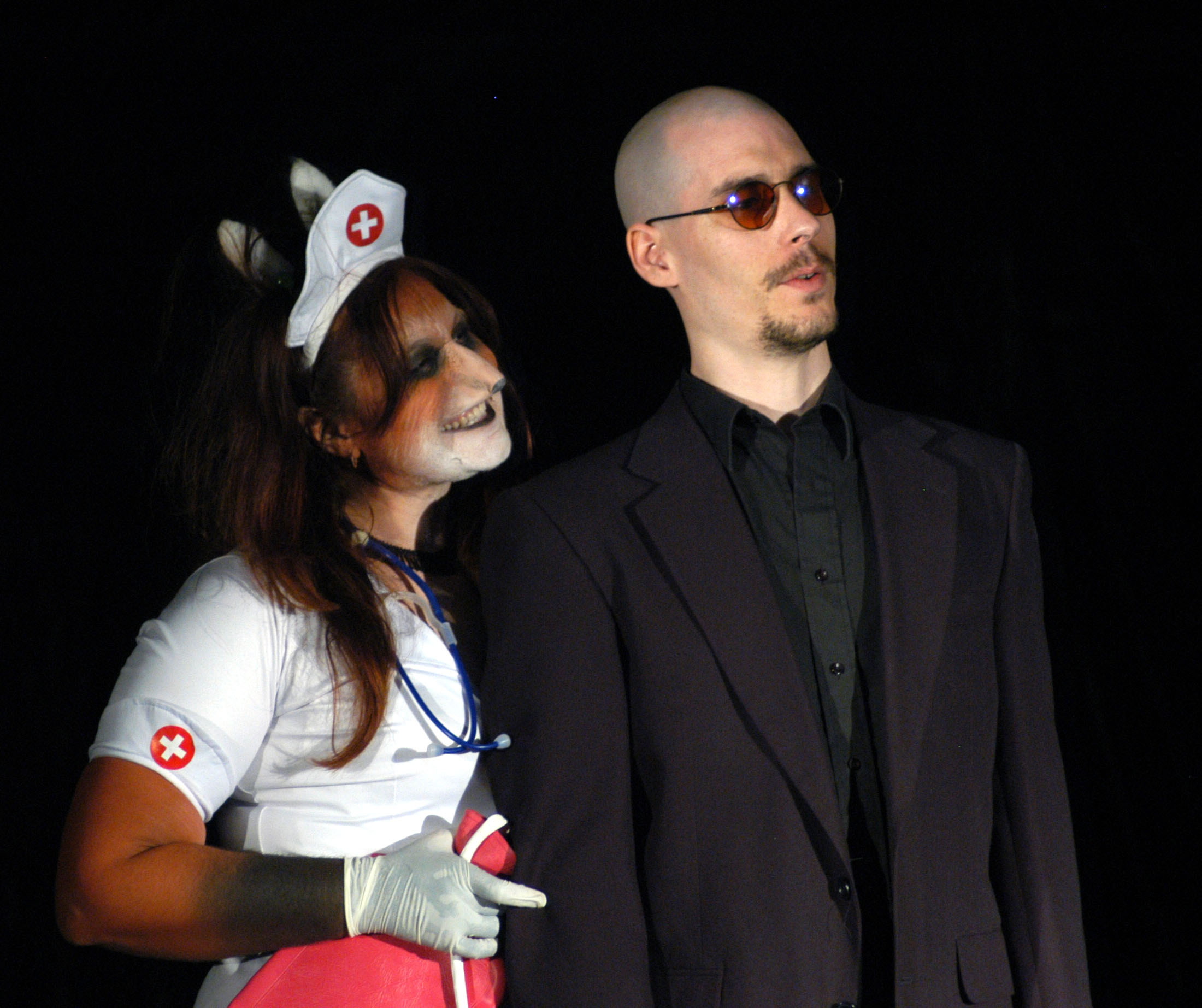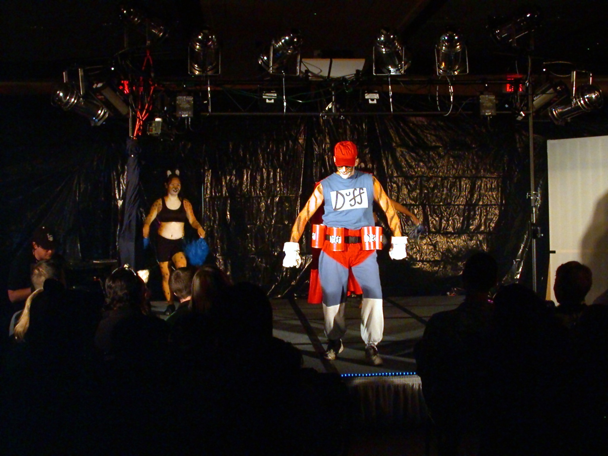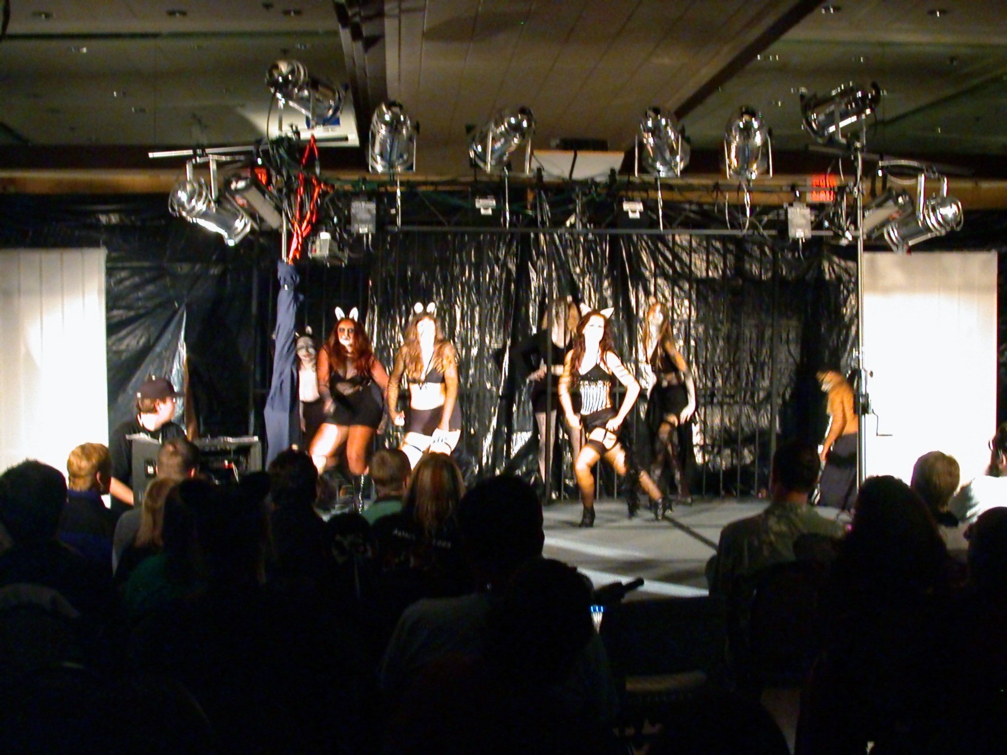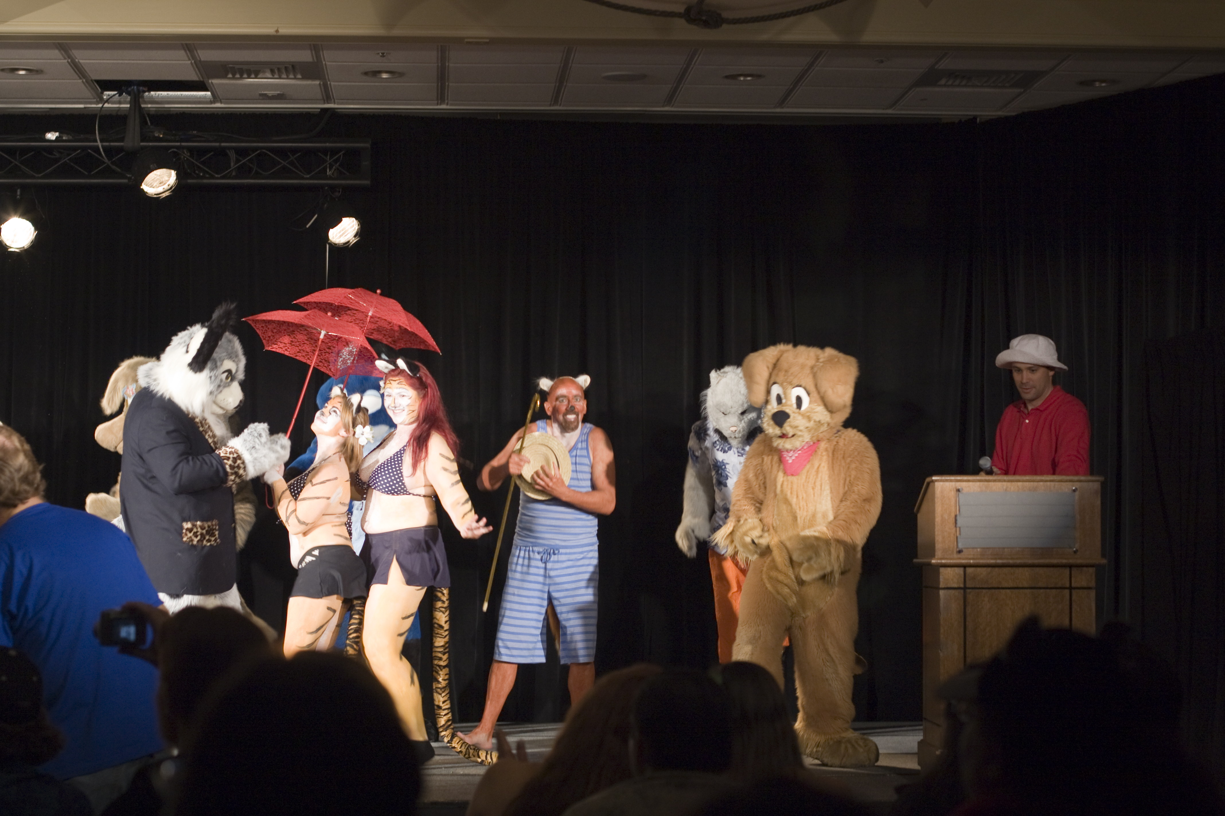 Of course, that’s not the only furry event we furballs have performed in.  Being critters who like both women and water, we took the opportunity to combine the two at Further Confusion 09.  So let’s take that time machine back to the Further Confusion!