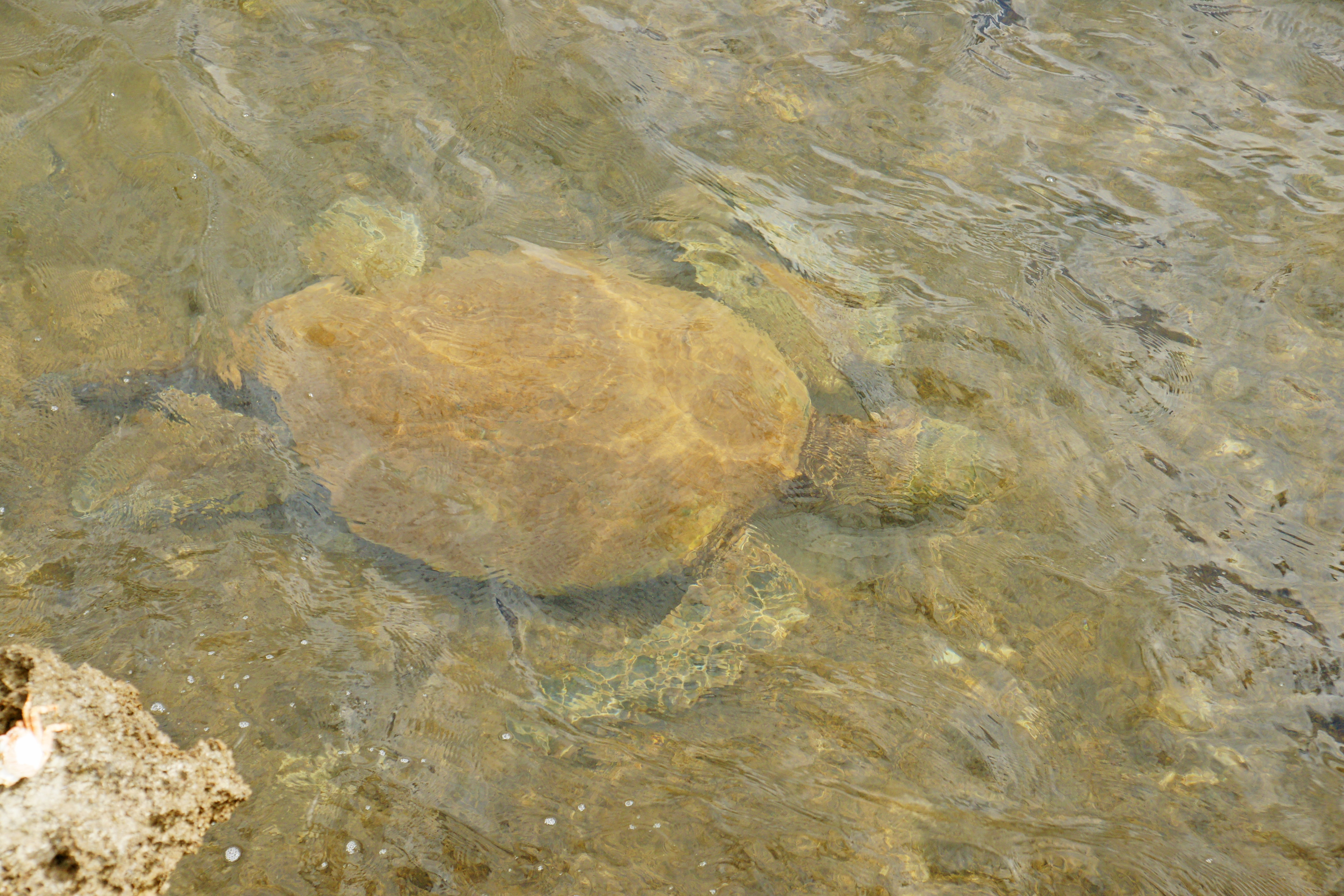 It’s not long before we see Hawaiian green sea turtles, aka Chelonia mydas. And because we are safely ensconced in our kayak, we can get closer than usual without disturbing our flippered friends.