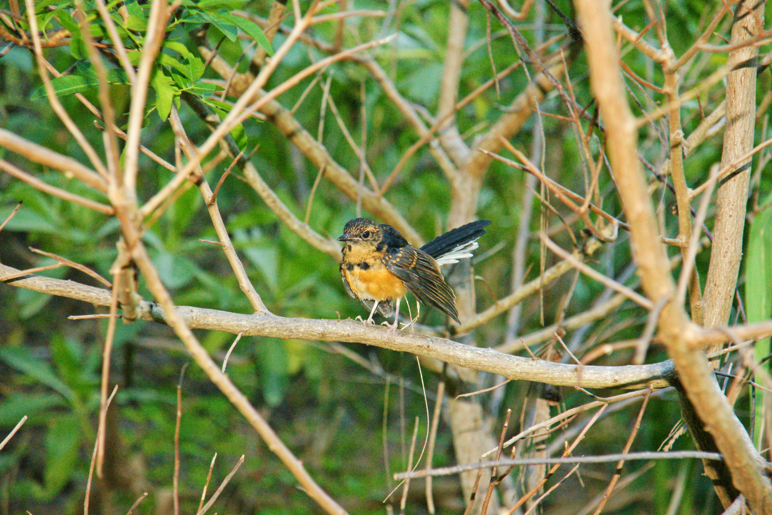 The White-rumped Shama (although not this particular one) was introduced to O’ahu in 1940. This juvenile (Copsychus malabaricus) adds to the ever-larger population of invasive birds on these islands.