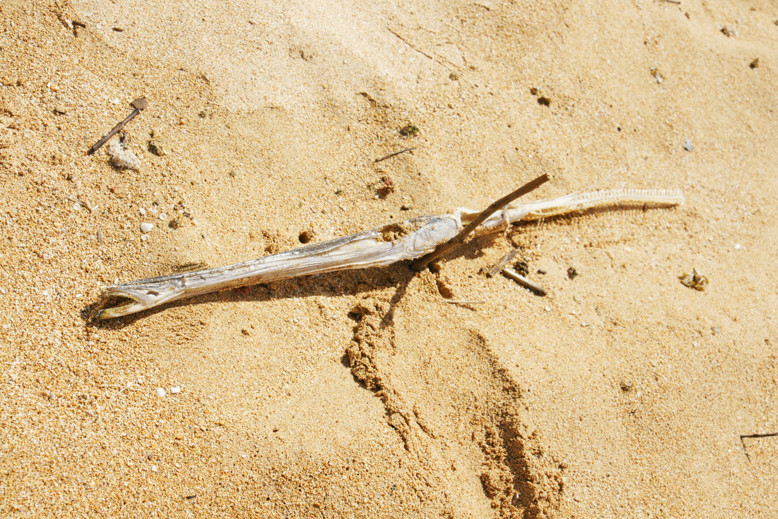 This appears to be the earthly remains of a Trumpetfish, which, surprisingly, is not an invasive species! The part to the left of the stick is (was) its head.