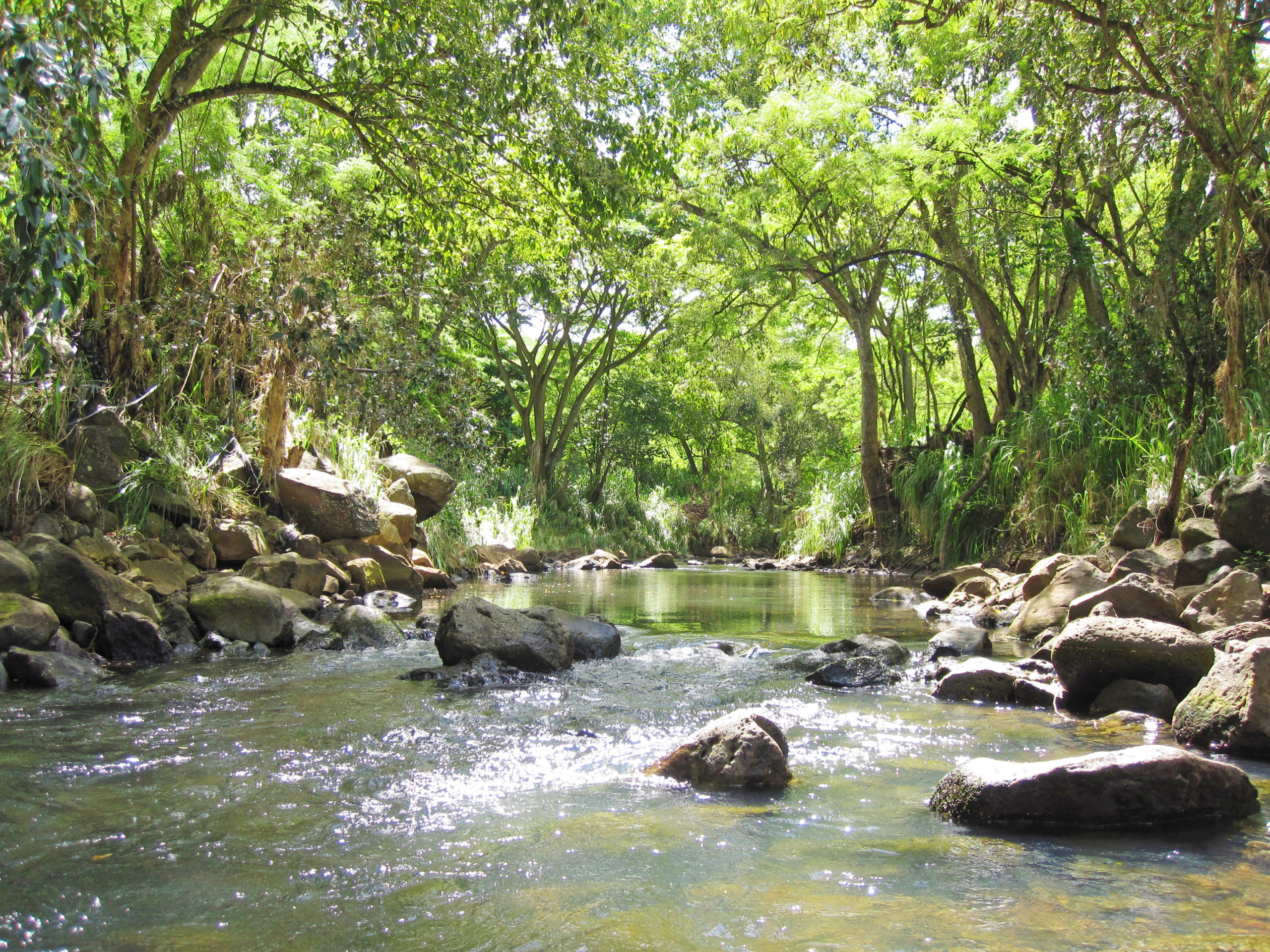 We rent kayaks to take a voyage up Turtle River, also known as Anahulu River. Most of the other voyagers are standing on boards, but that smacks of effort. Besides, we can both travel in the same kayak!