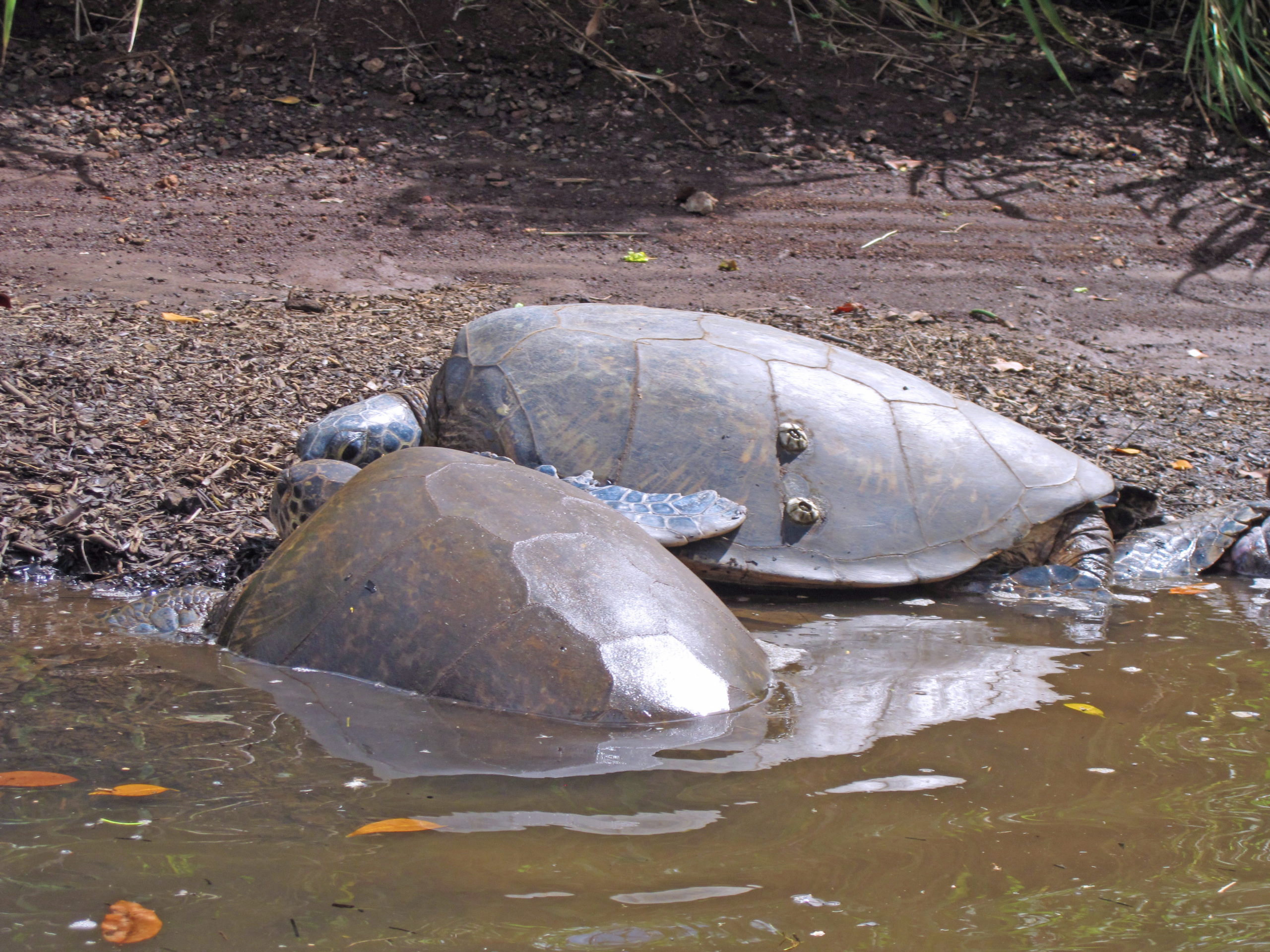 These fellows have a number of barnacles attached to their shells. If you search the Internet, you’ll find opinions stating that barnacles do not harm the turtles. You’ll also find that none of those opinions are from turtles.