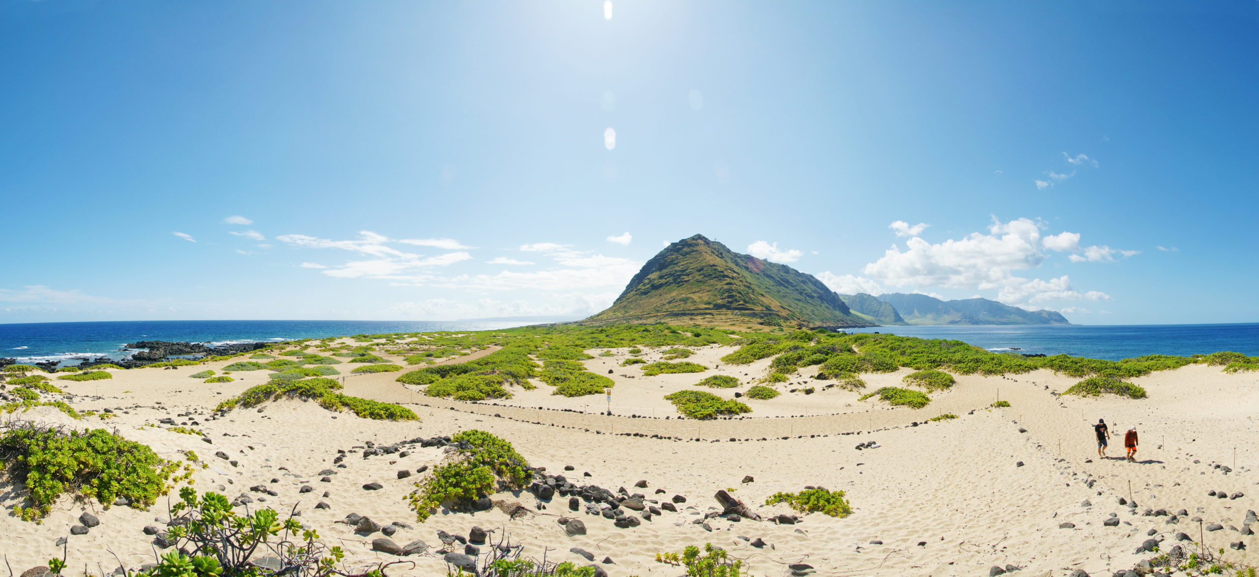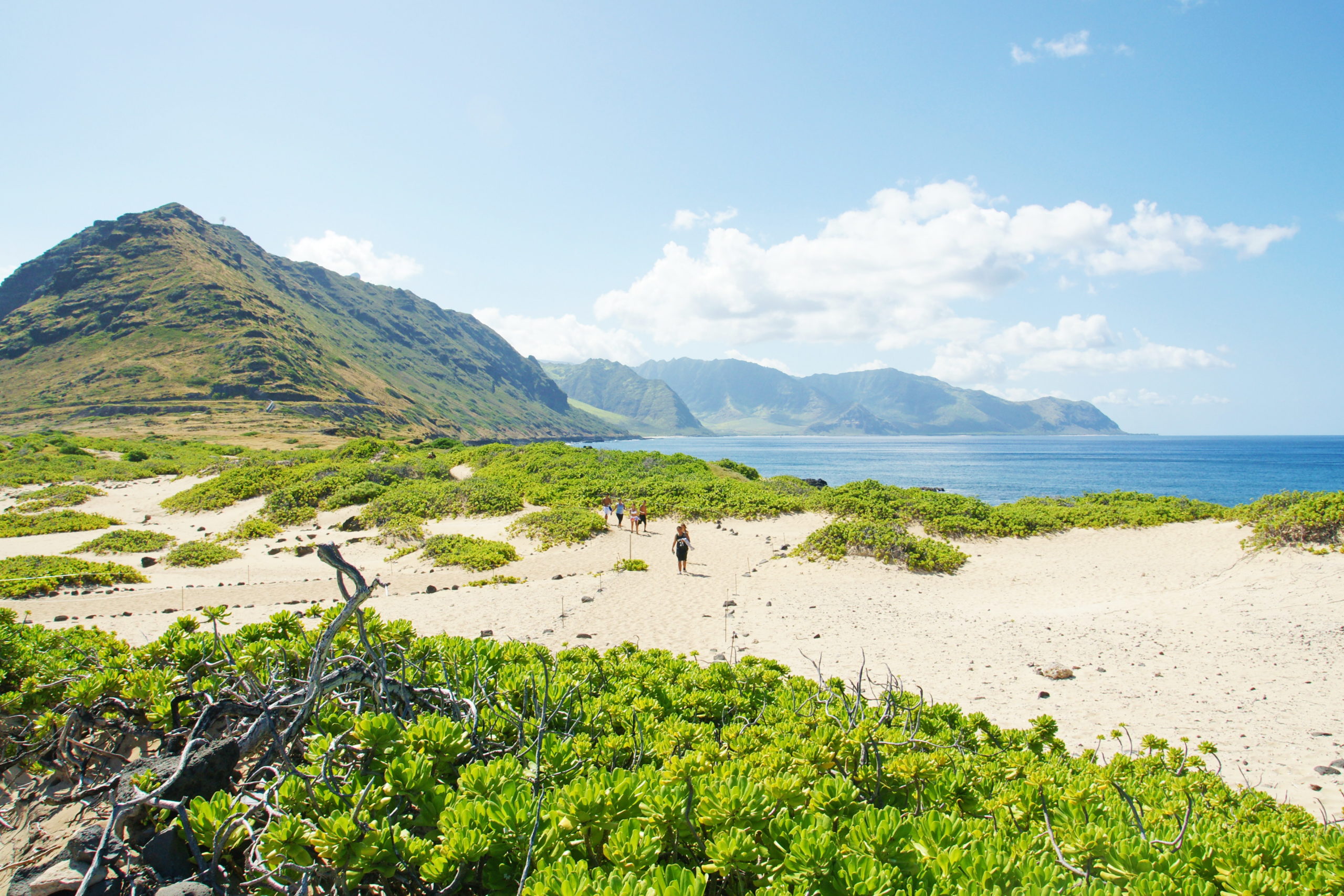 “The only way to get to Ka’ena Point is by hiking. There are two trailheads: From the north side, or Mokulēia side, drive to the very end of Farrington Highway and park at the trailhead. This is a long and notoriously hot hike, so bring plenty of sunscreen and water. Hazardous conditions make any water activities extremely dangerous and are highly discouraged. From the south side, or Leeward Coast side, the trail starts at the end of the road past Yokohama Beach and its three “dips,” or breaks. This west side O’ahu icon offers white sand beaches, diving, and the possible sight of dolphins.”
