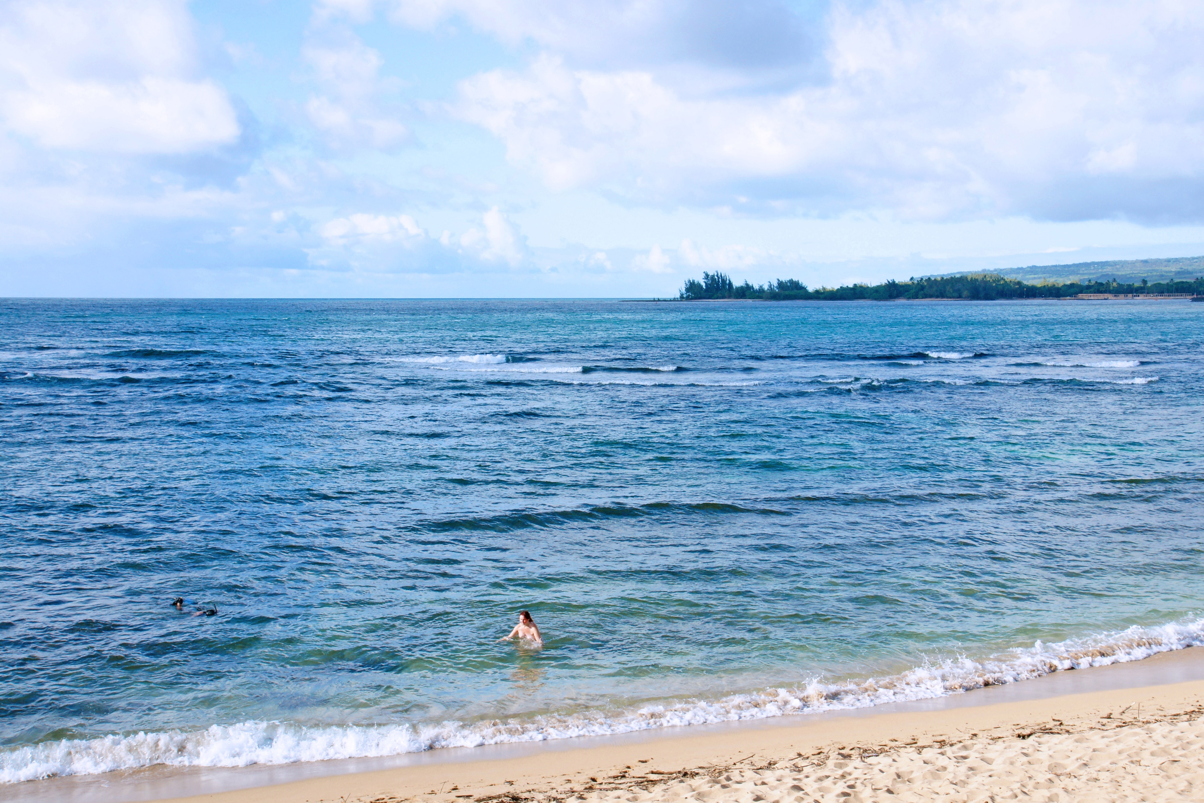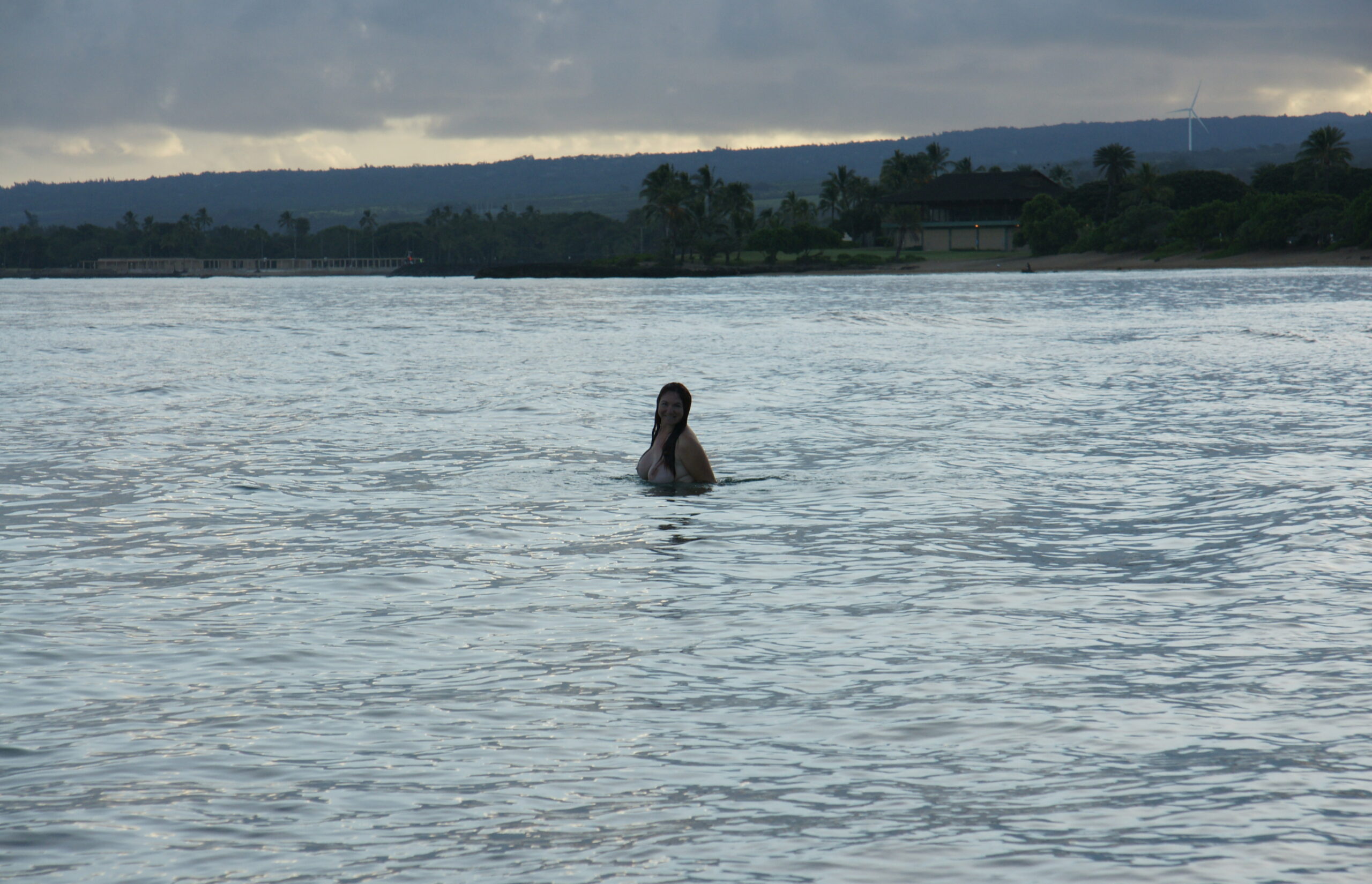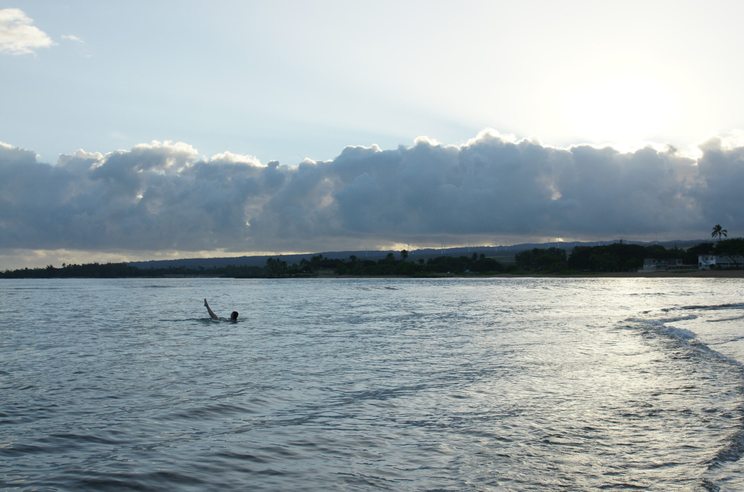 After a long flight from San Diego and a drive across the island from Honolulu, the first thing we do is head out for a swim.