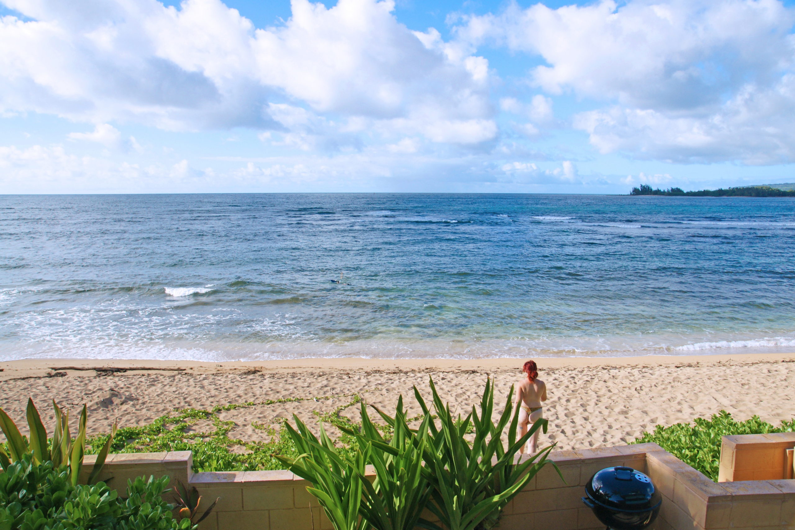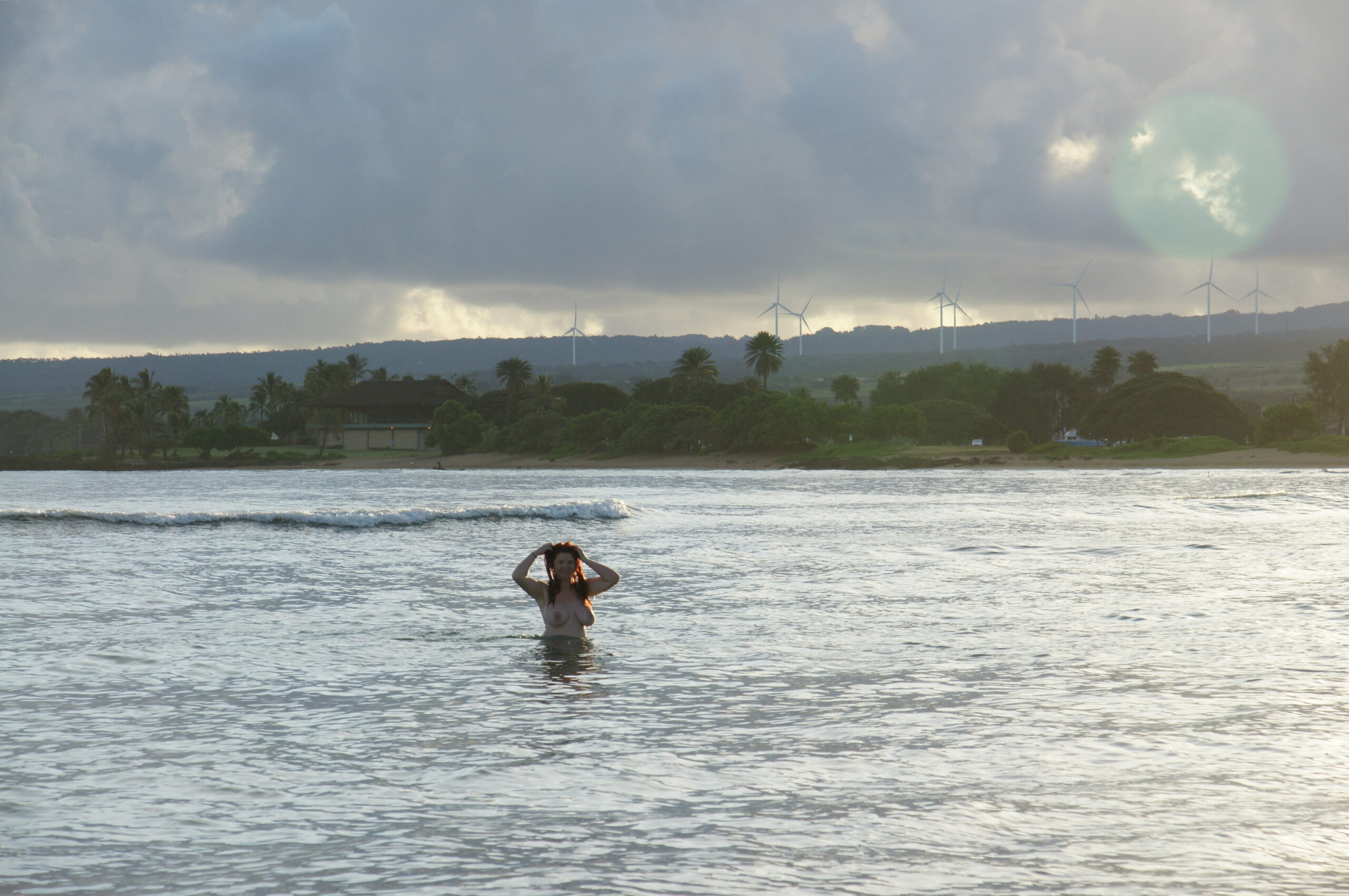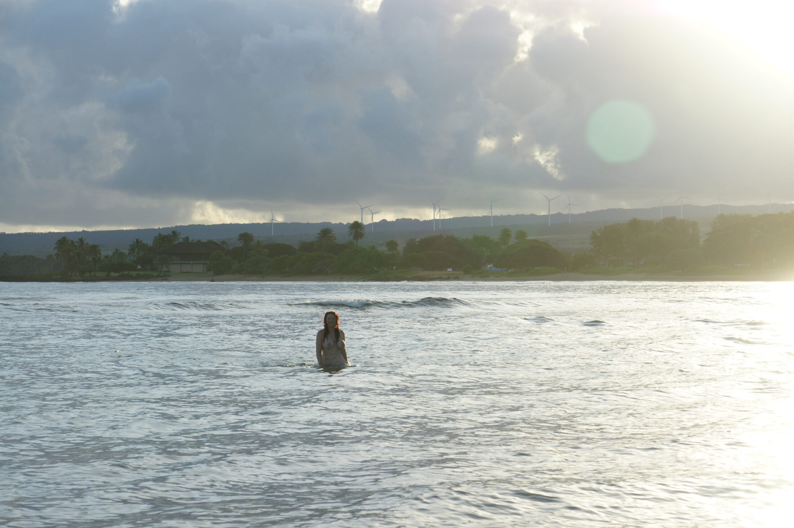 After a long flight from San Diego and a drive across the island from Honolulu, the first thing we do is head out for a swim.