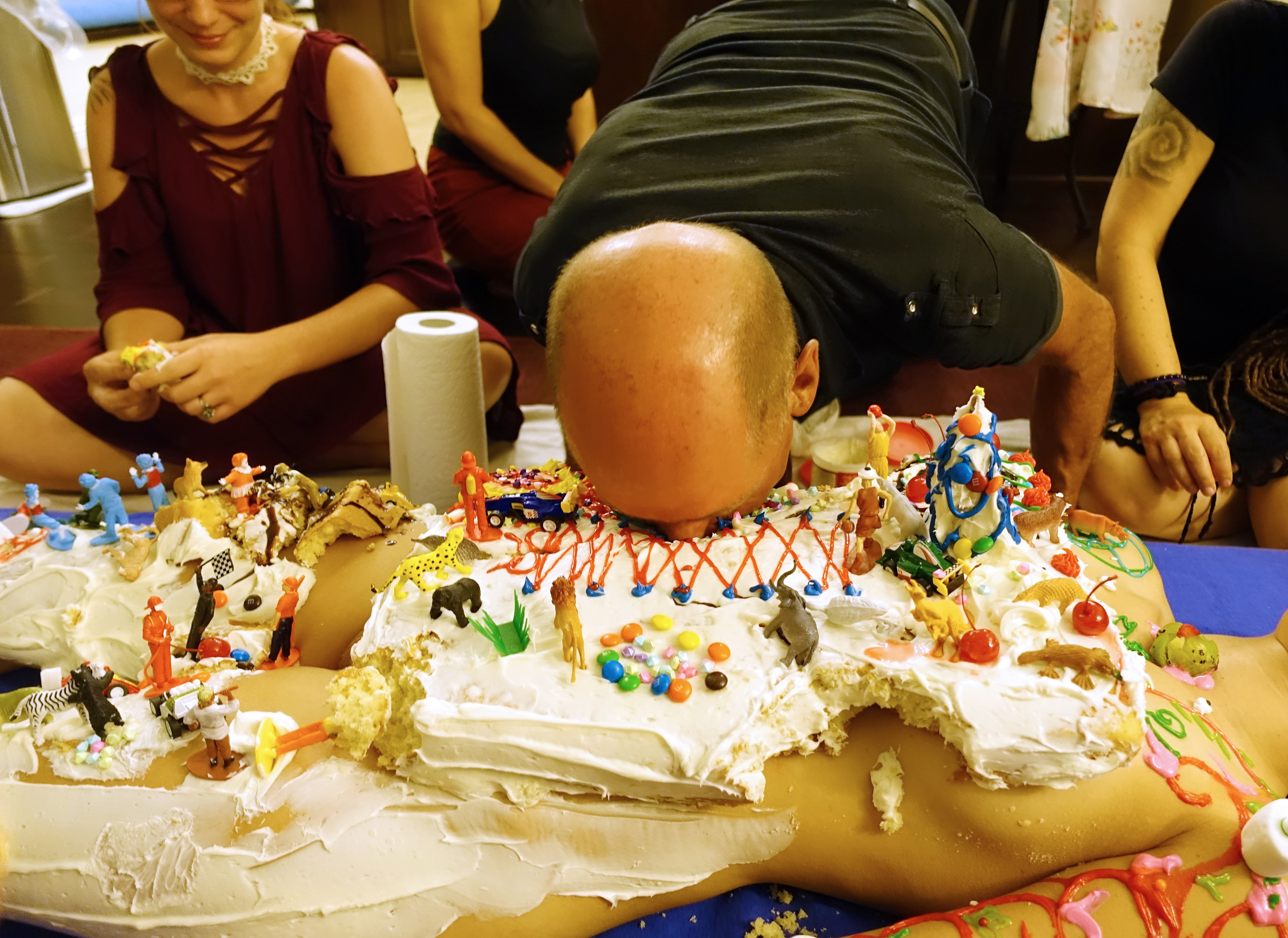 When eating a nyotaimori cake, you will end up with cake on your face.  And frosting, little bits of candy and chocolate, and perhaps a toy.