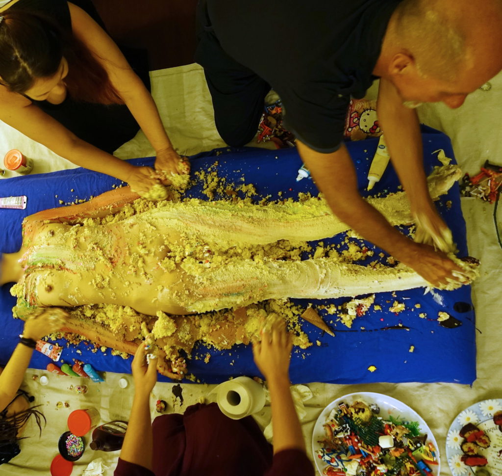 Please take a moment to enjoy our slide show of the decoration of the nyotaimori cake.
