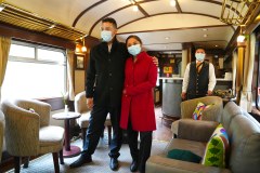 On this train, the train staff are not enforcing mask wearing. There are colorful tablecloths. It has a different feel to it.