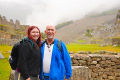 We came all the way to Peru to right the rail from Cusco to Machu Picchu. Damn right we are going to take a real photograph of ourselves. Notice that our faces are slightly red? Get yourself more than two miles up and walk around in 50 degree weather, and you’ll have a red face, too. ?