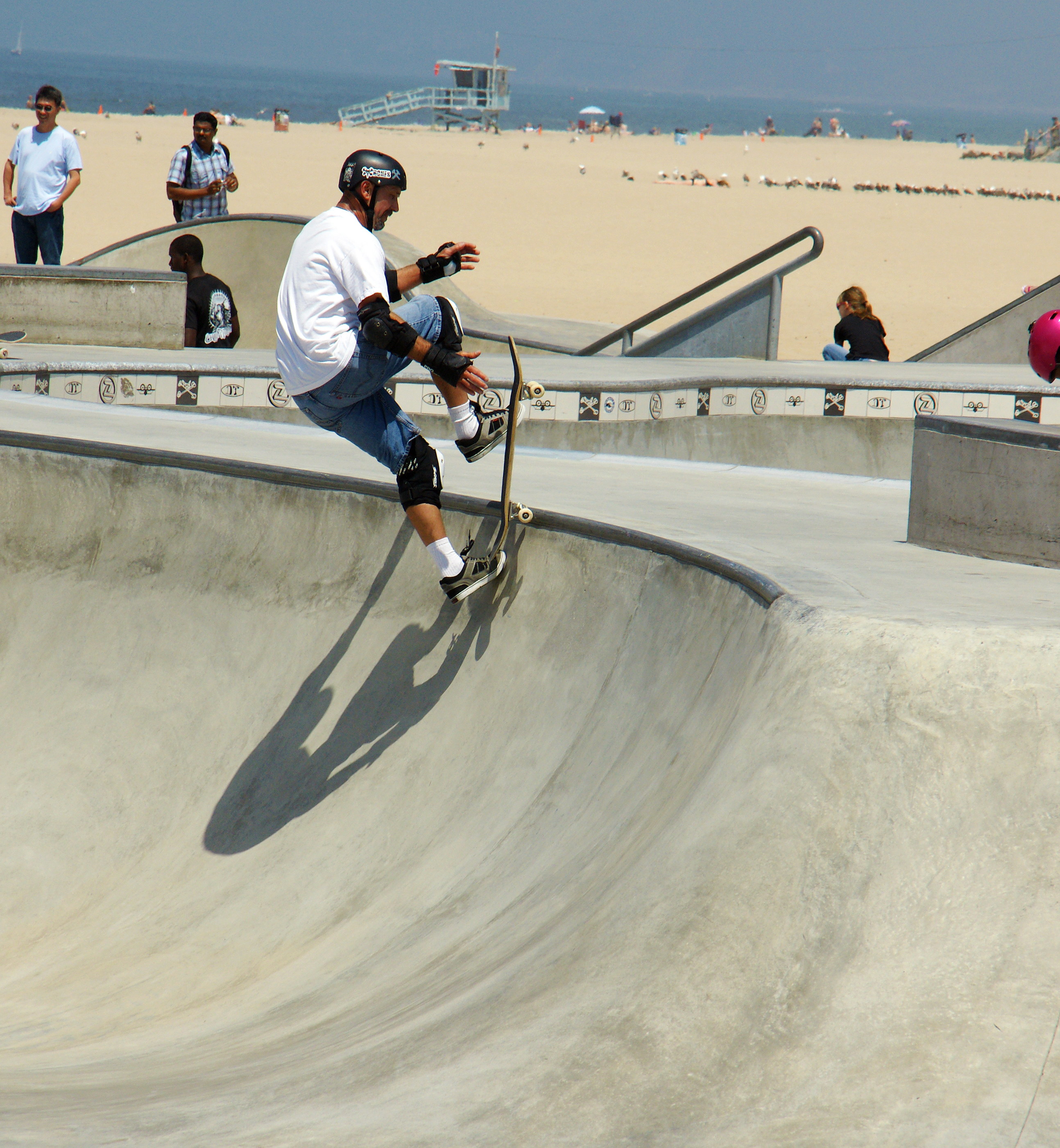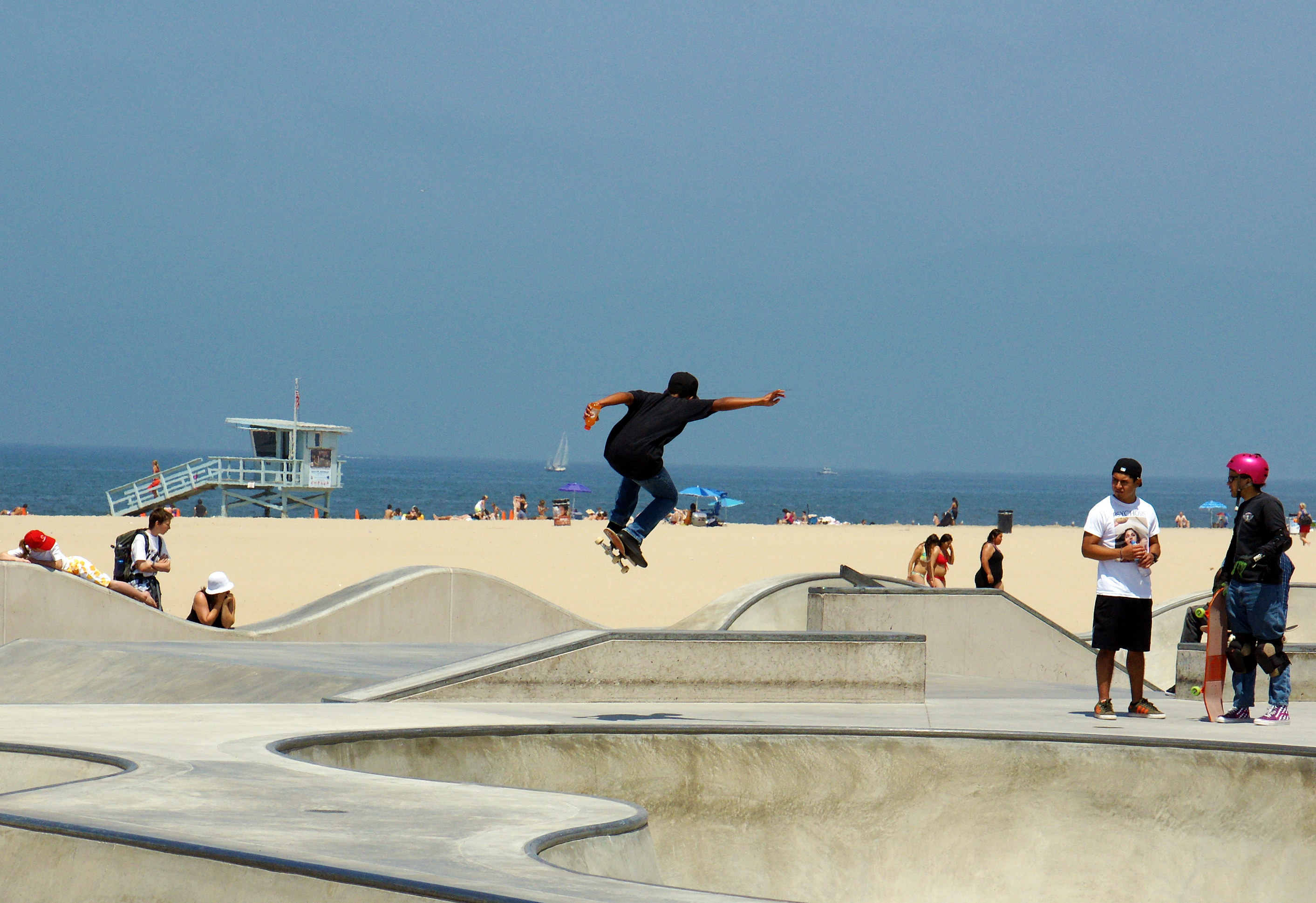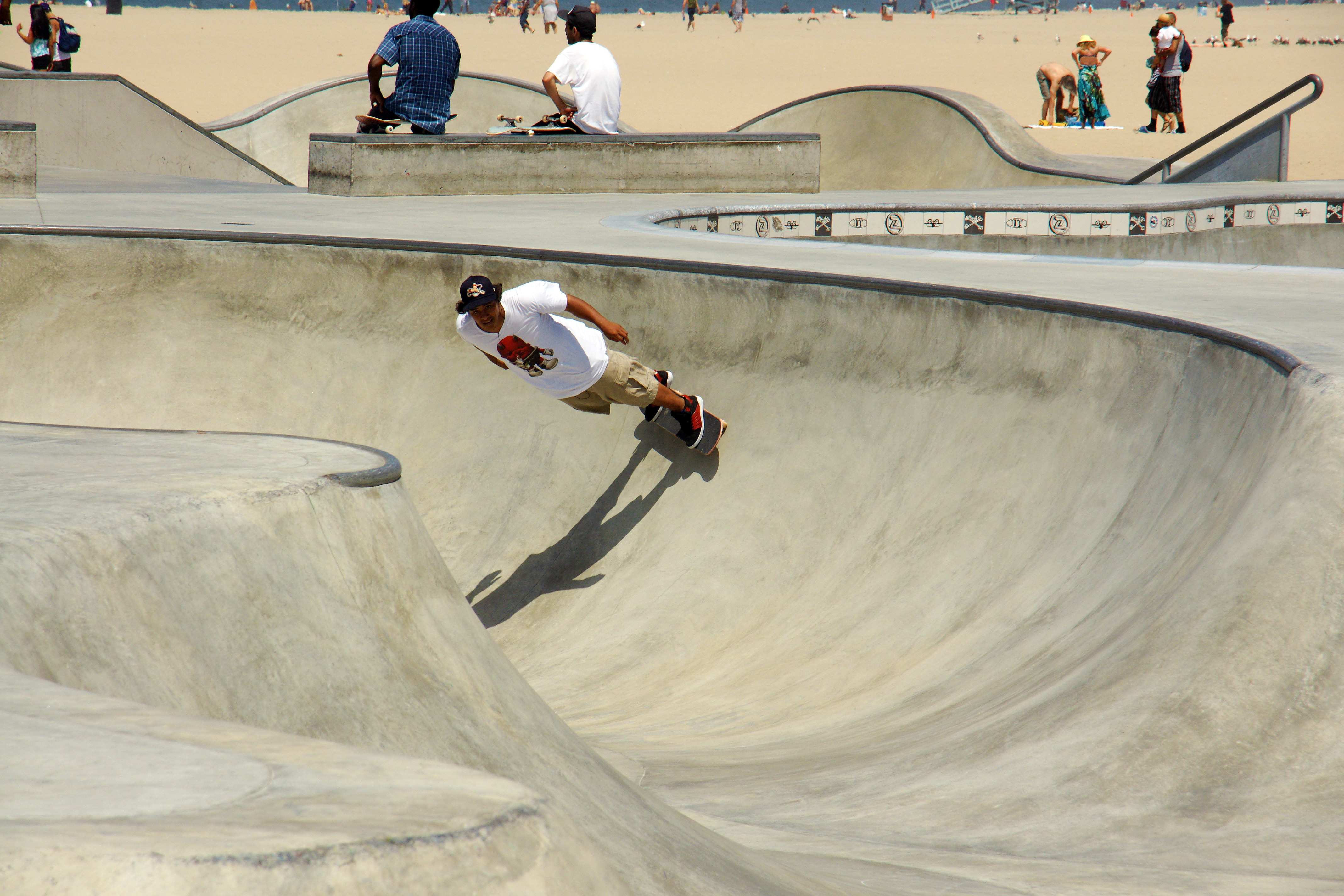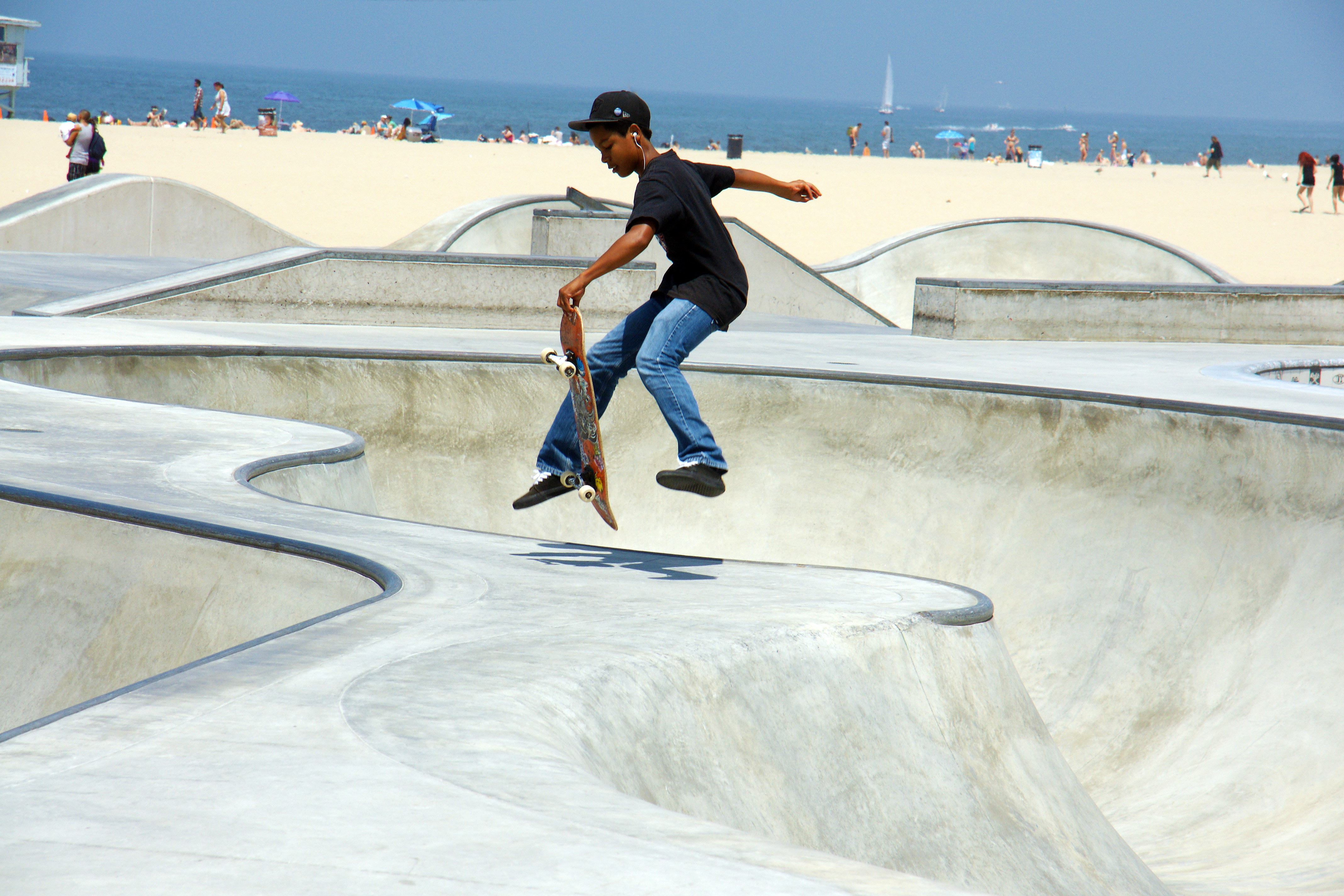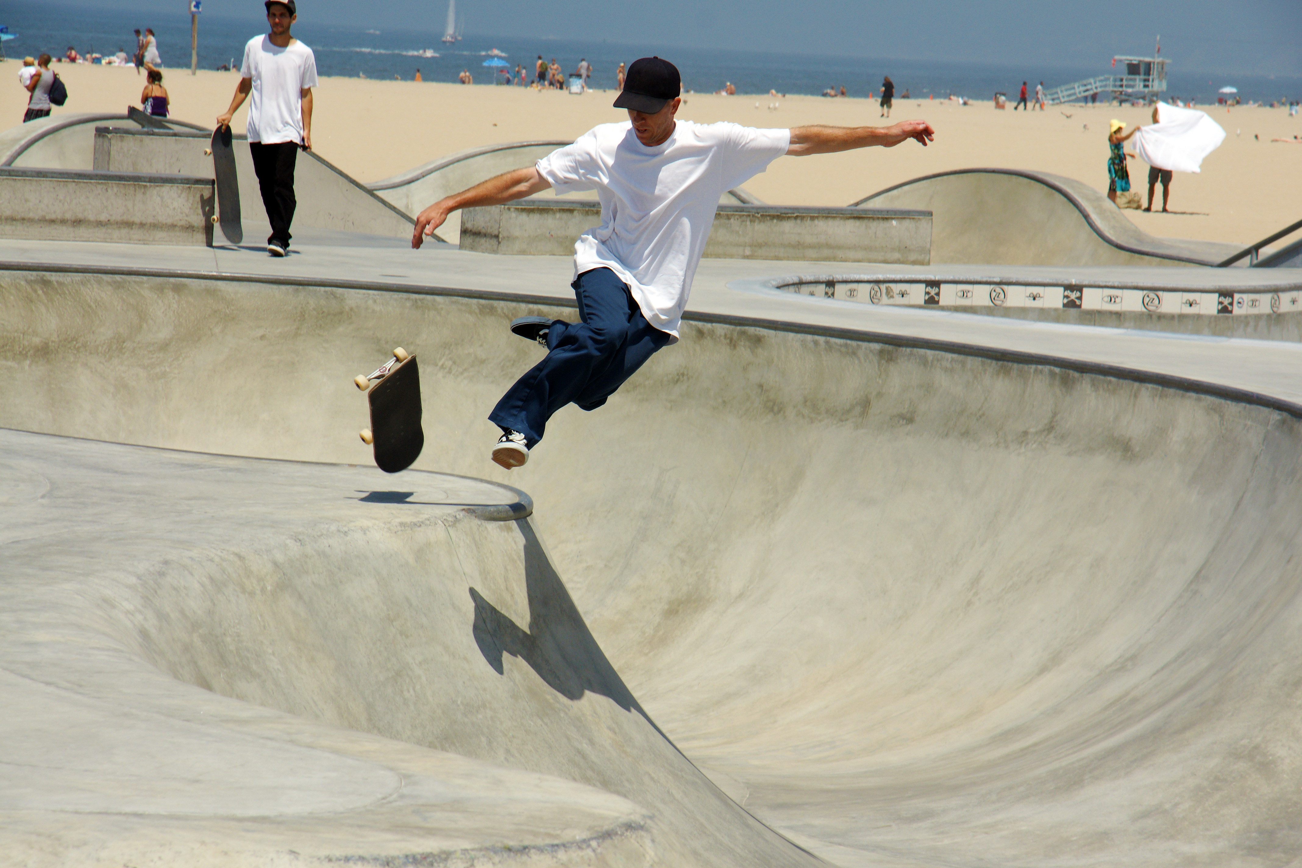 Venice Beach is home to a 18,000 square foot skateboard park, open to the public. The park was designed by Zach Wormhoudt, a world-class skatepark designer and renowned big wave surfer.