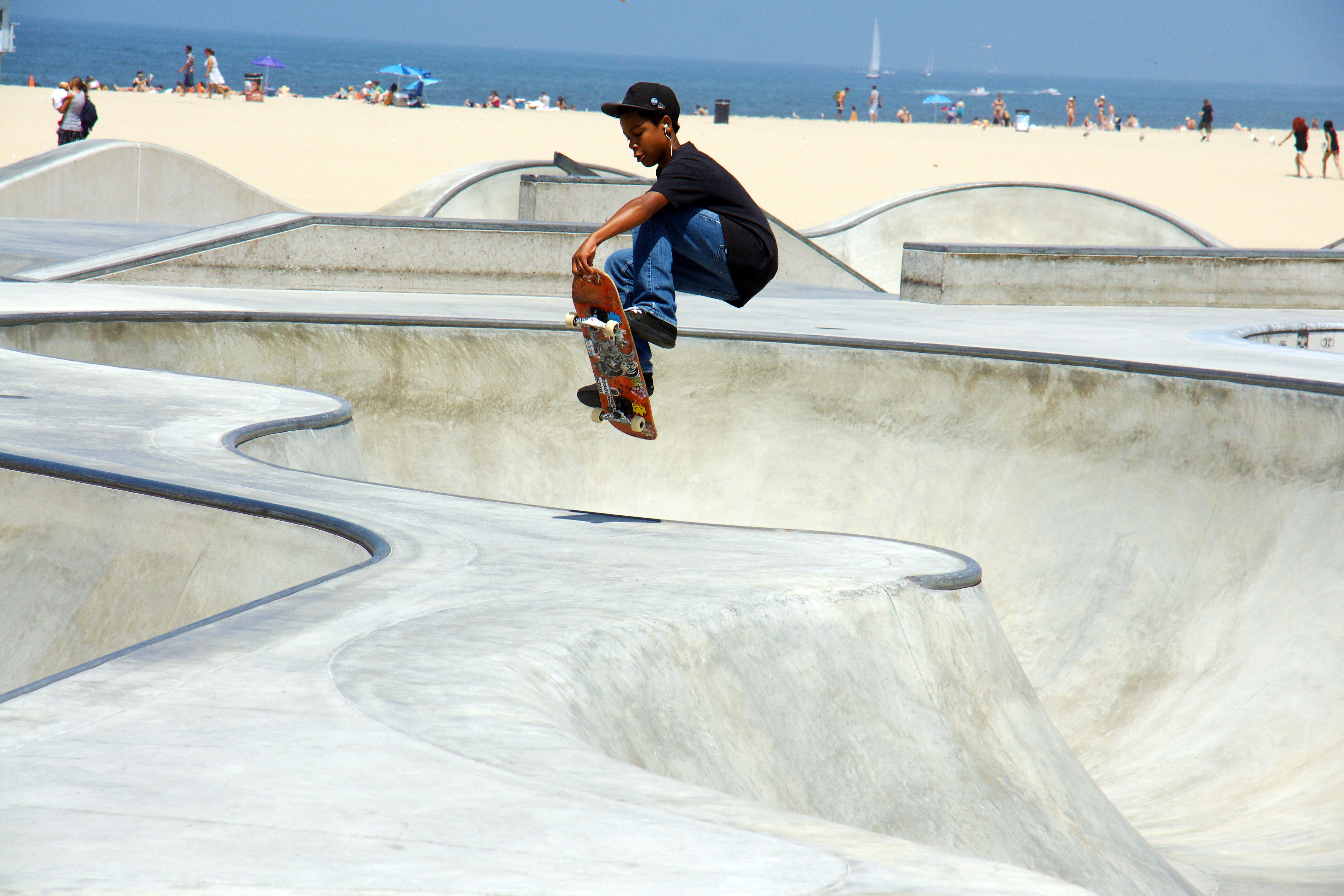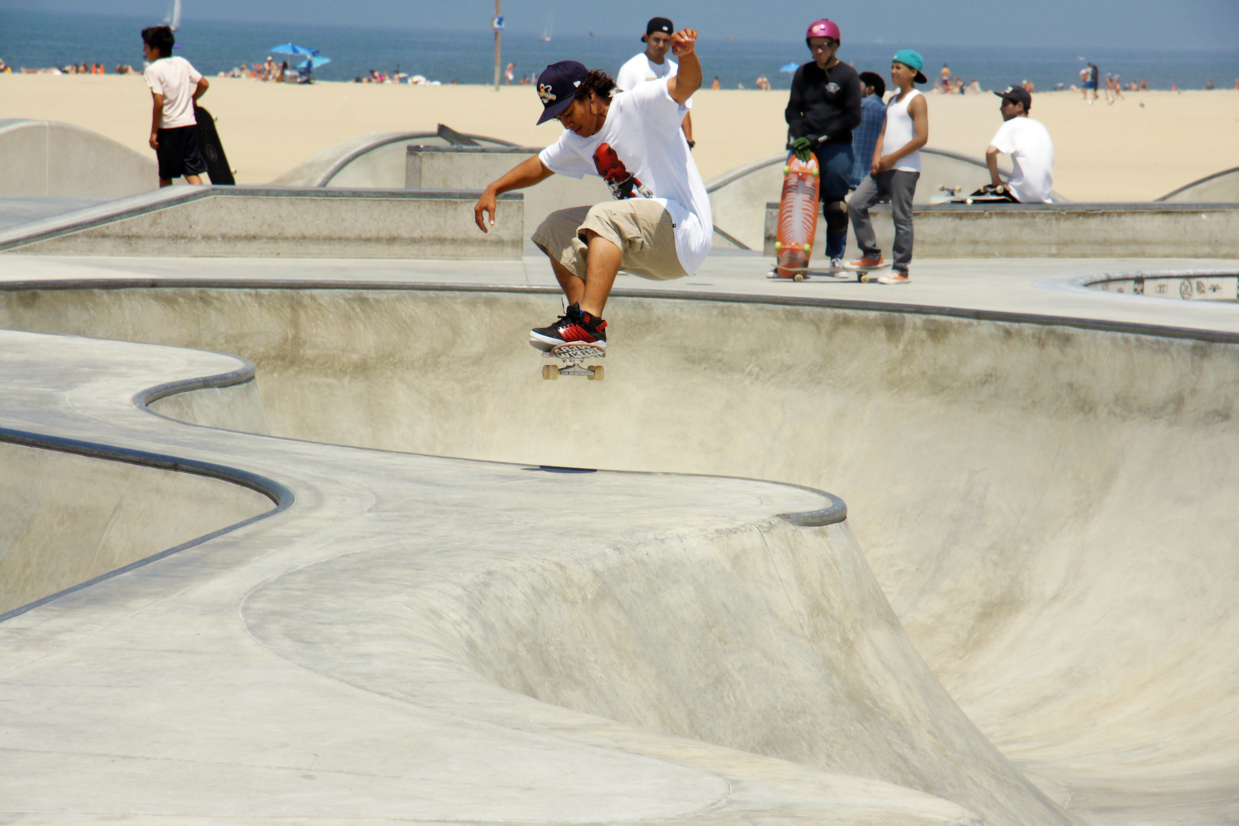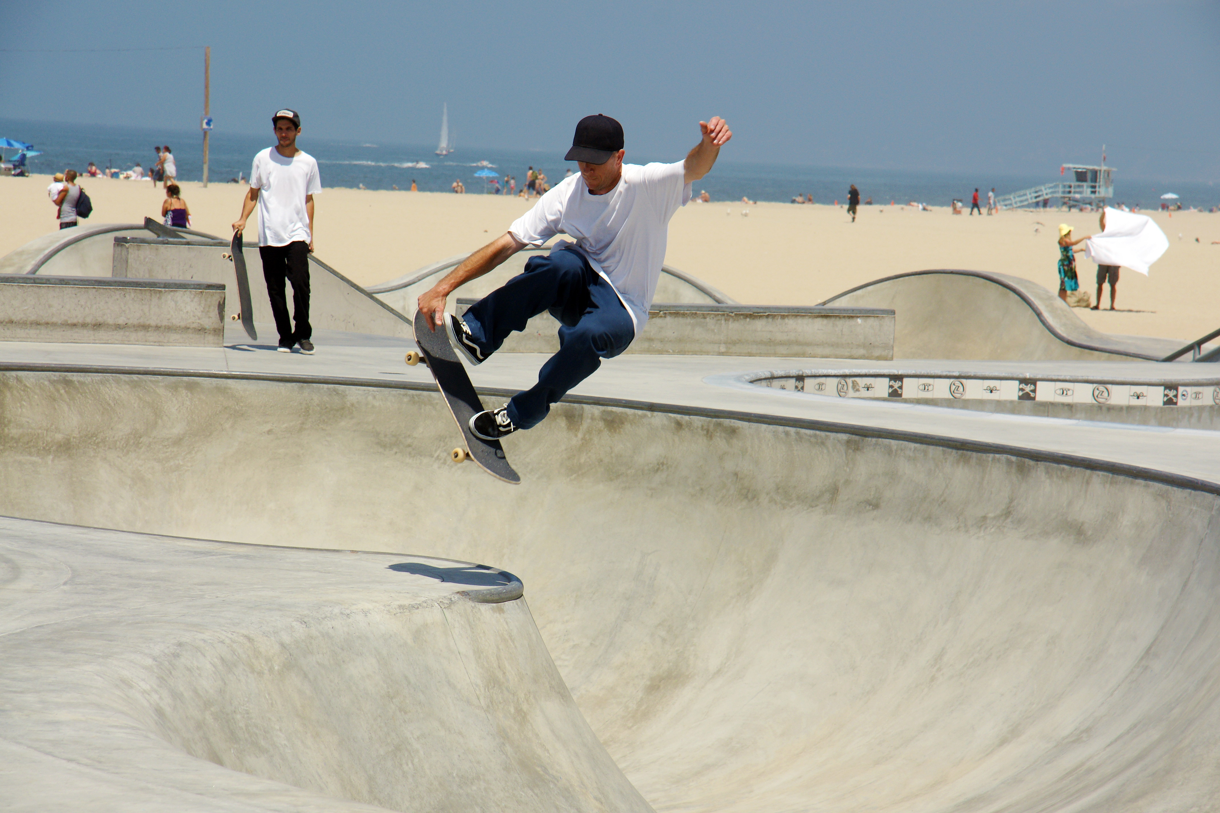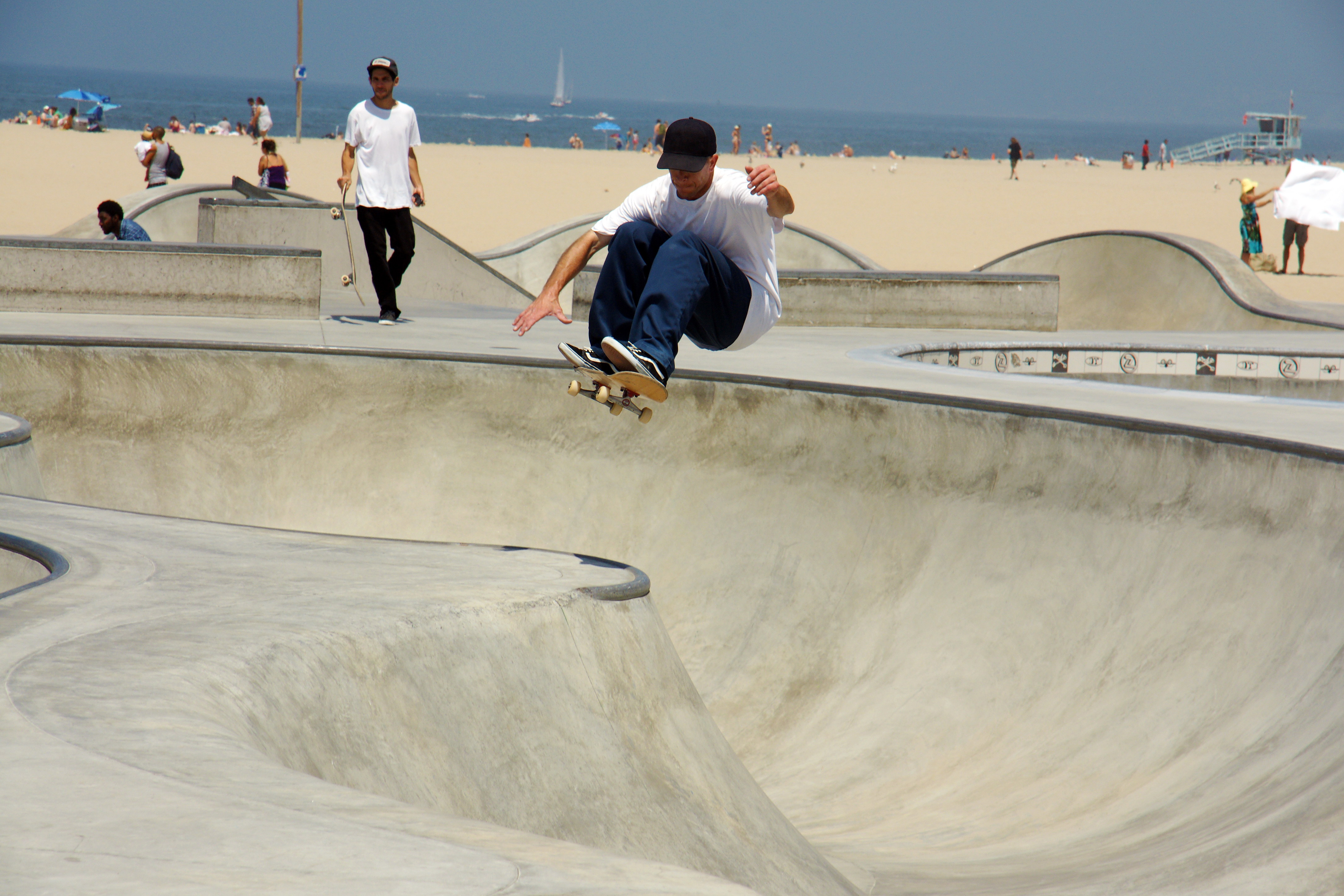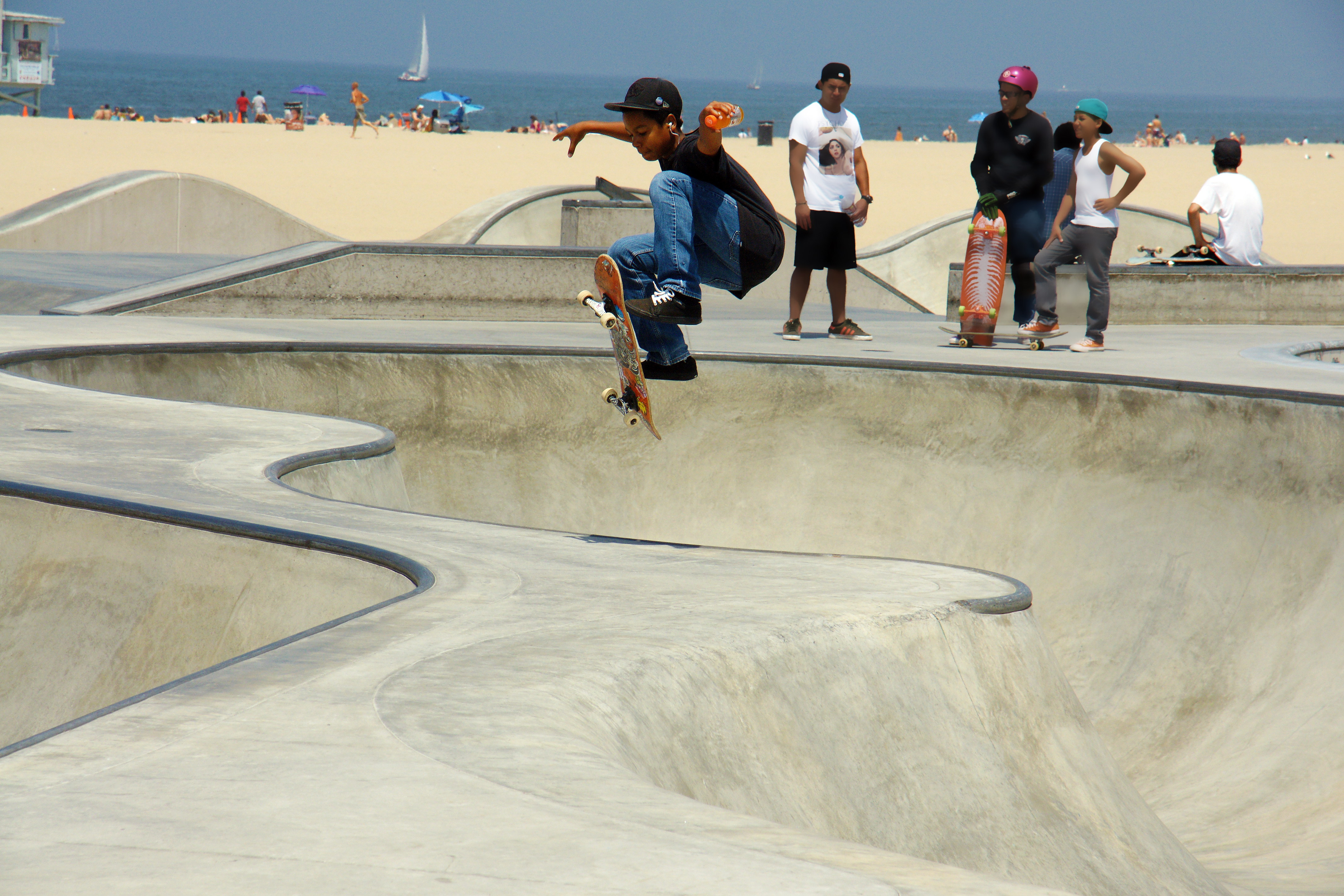 Venice Beach is home to a 18,000 square foot skateboard park, open to the public. The park was designed by Zach Wormhoudt, a world-class skatepark designer and renowned big wave surfer.
