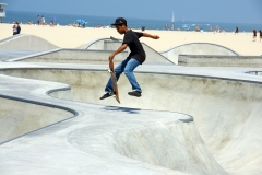 Venice Beach is home to a 18,000 square foot skateboard park, open to the public.  The park was designed by Zach Wormhoudt, a world-class skatepark designer and renowned big wave surfer.