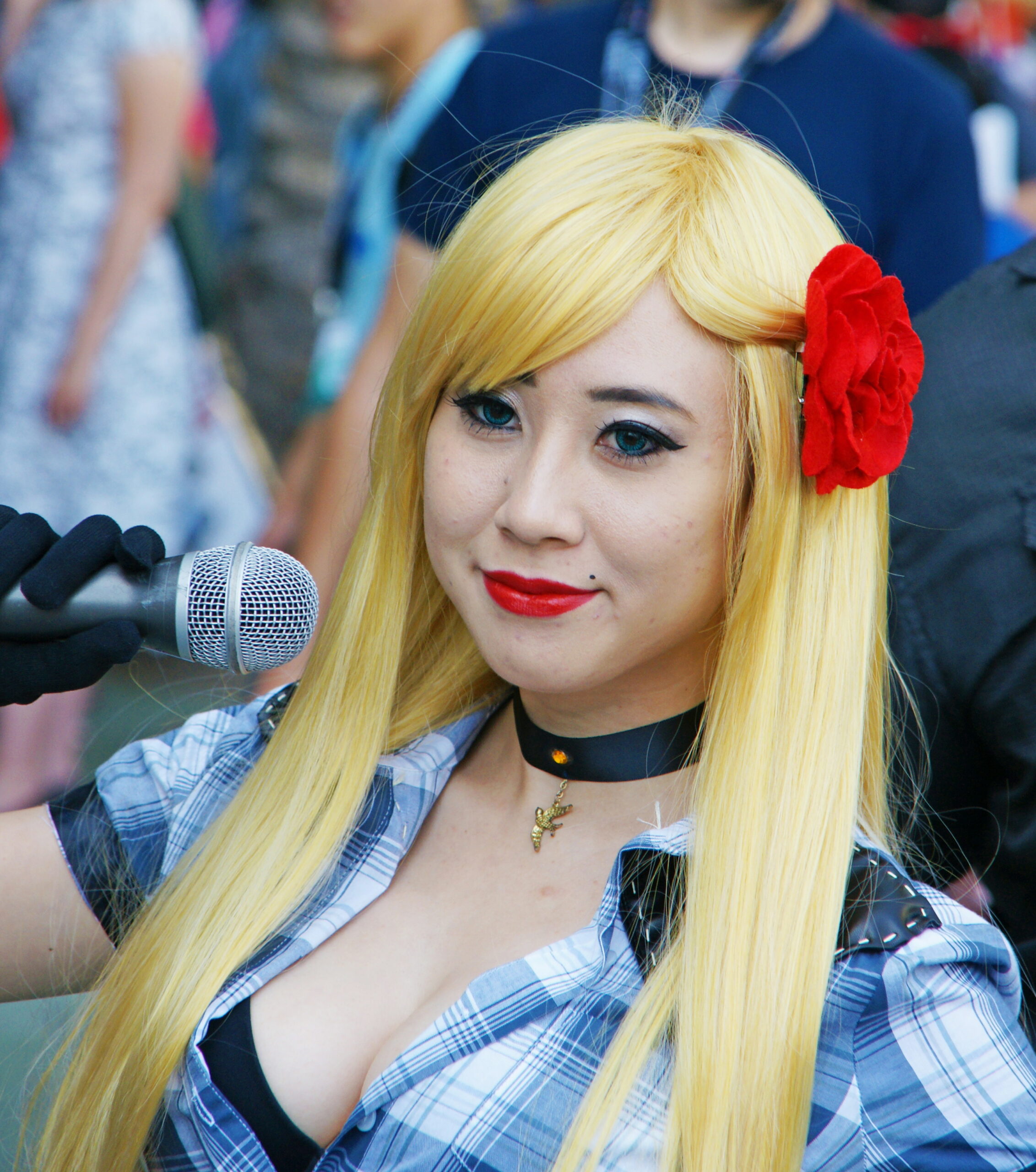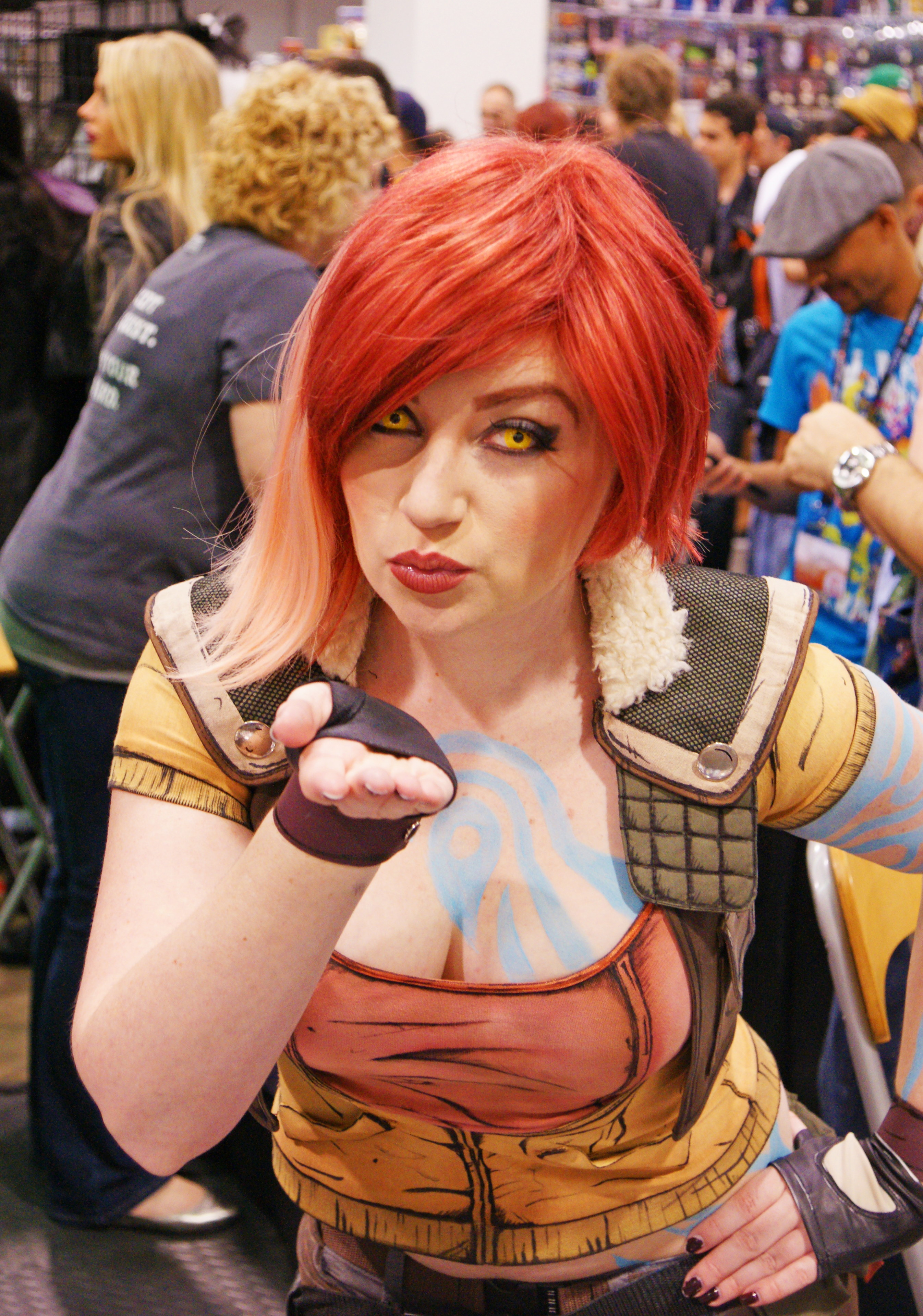 If you look just slightly up from her cleavage, you will see that this creature has yellow hair. Not that you care.