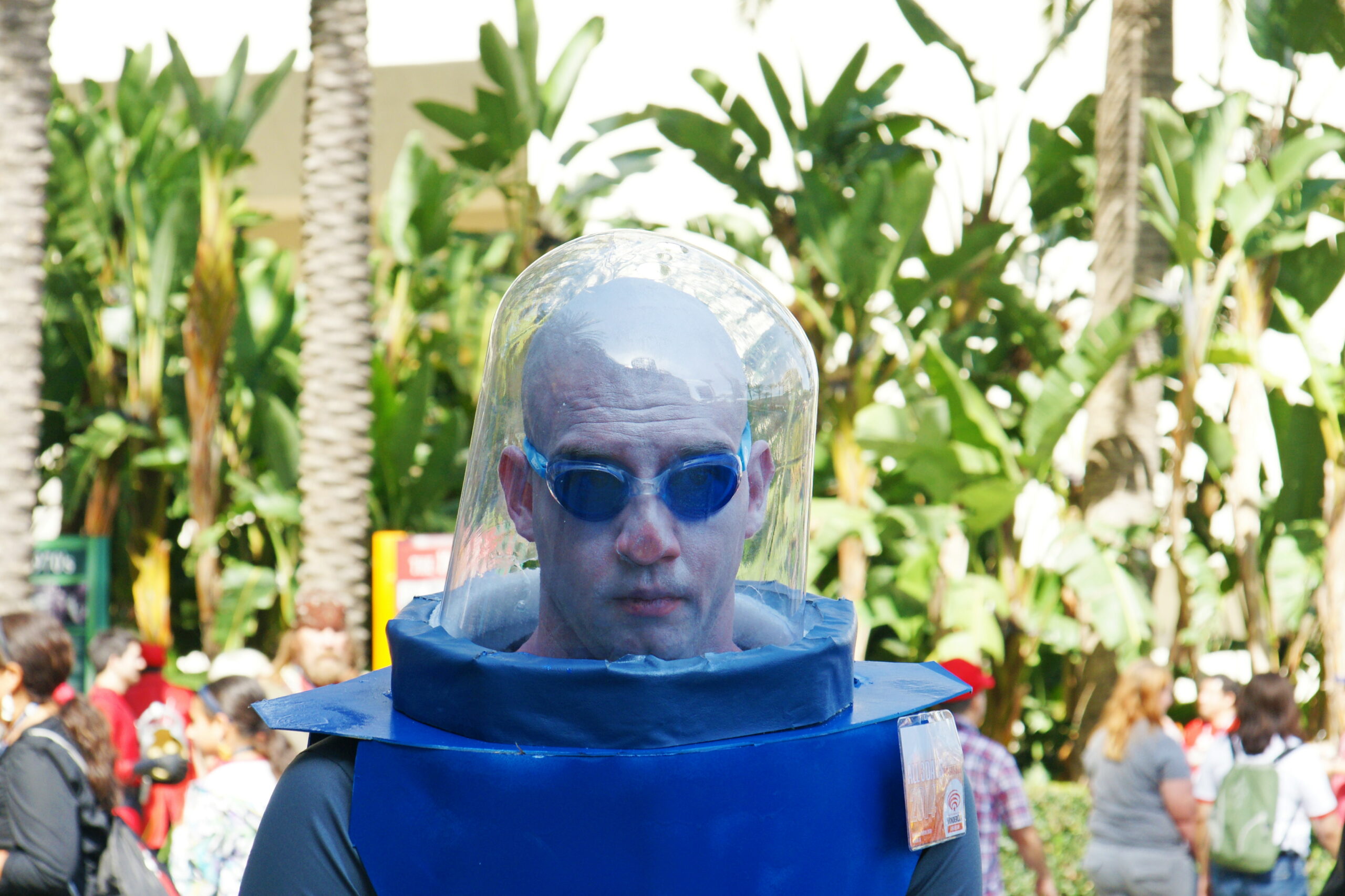 The glass helmet protects this Blue Thing from the harmful effects of our atmosphere. Seriously, I hope he can breathe in there.