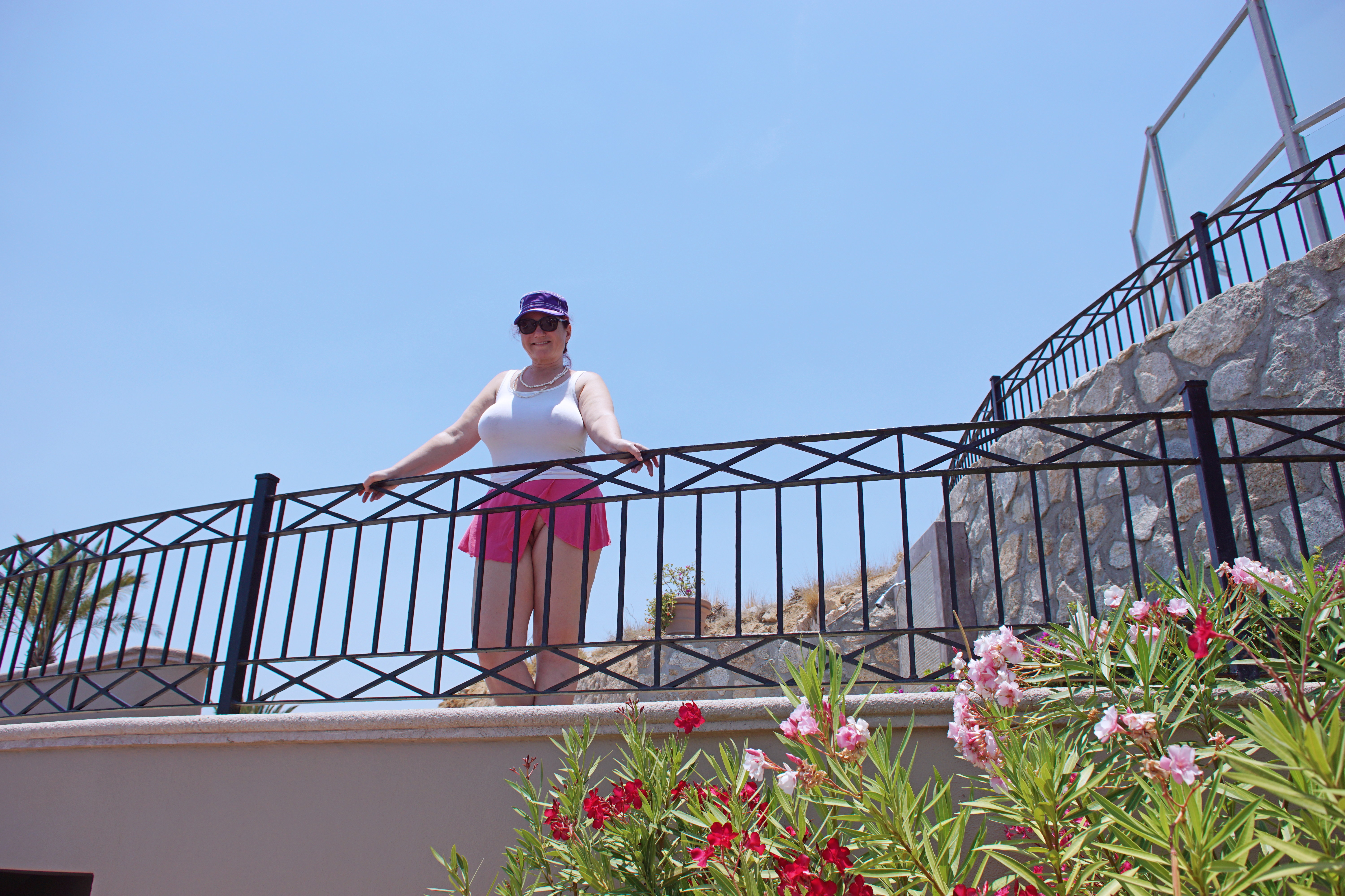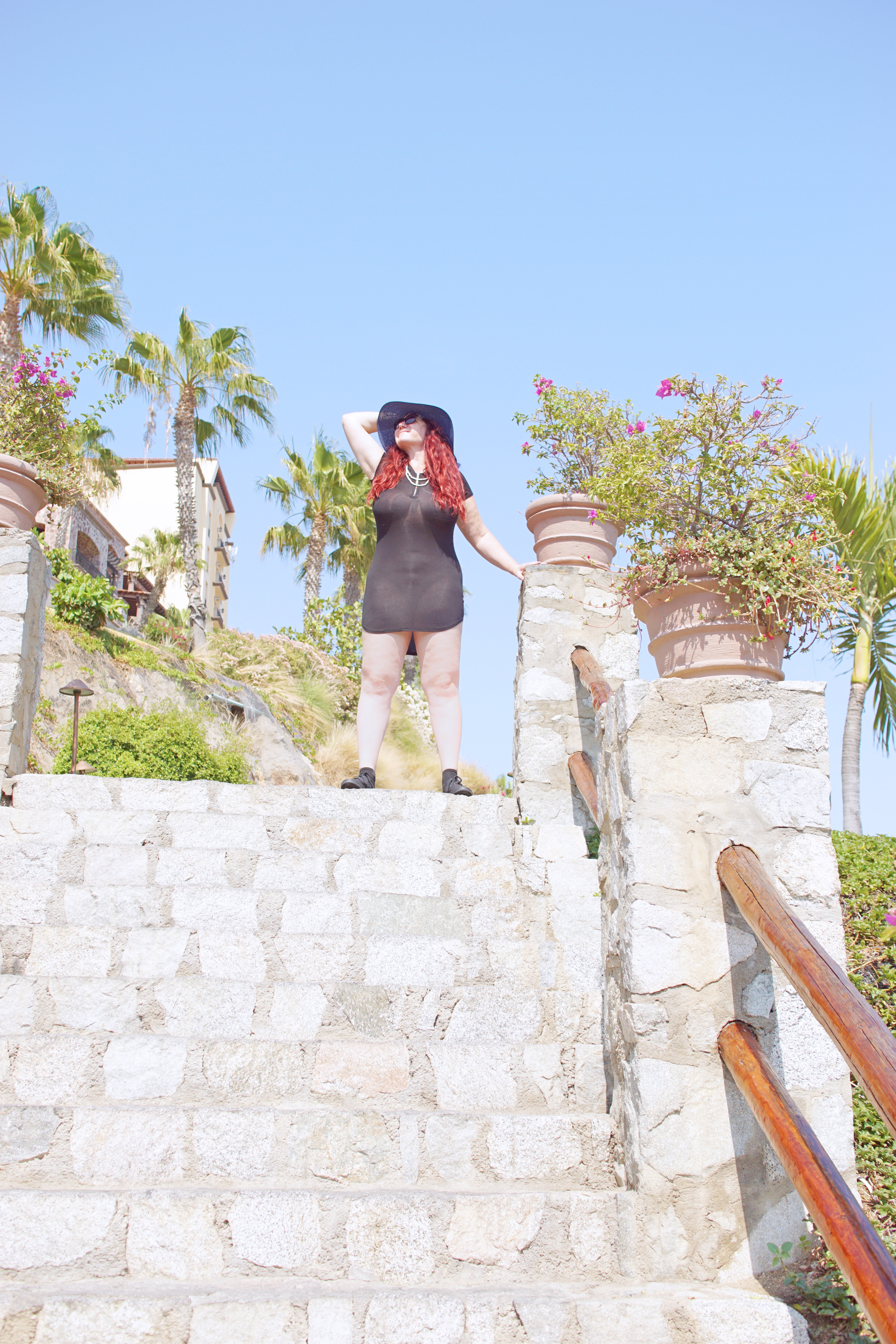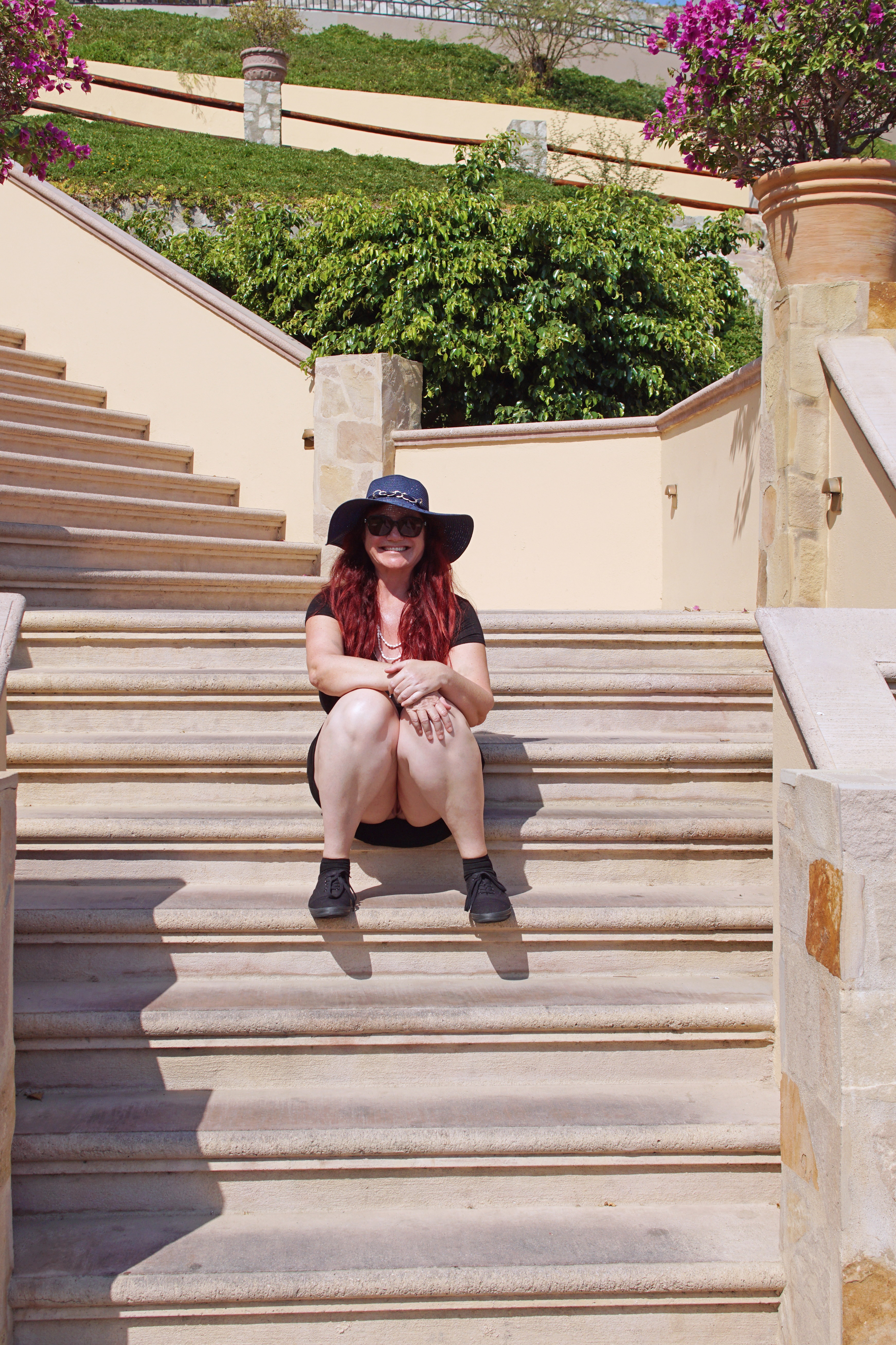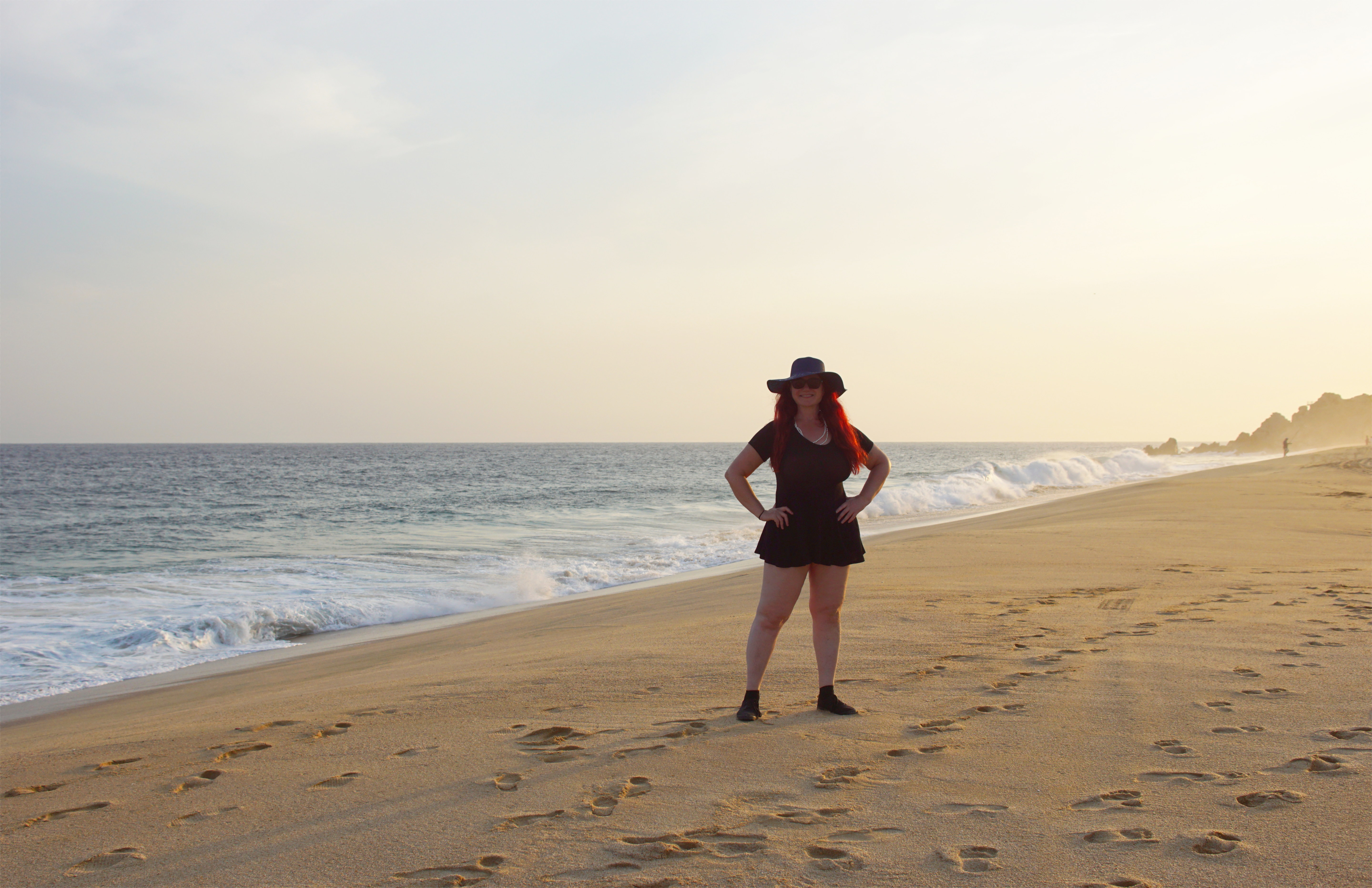 Two hours later we arrive, and the moment we leave the airport terminal we are happy to see bright blue skies and feel the warm sunlight on our skin. There is a sign that says “Cabo” right where the hotel shuttles are, so we take the gratuitous “Wooo Cabo!” photos. Our vacation has officially begun!